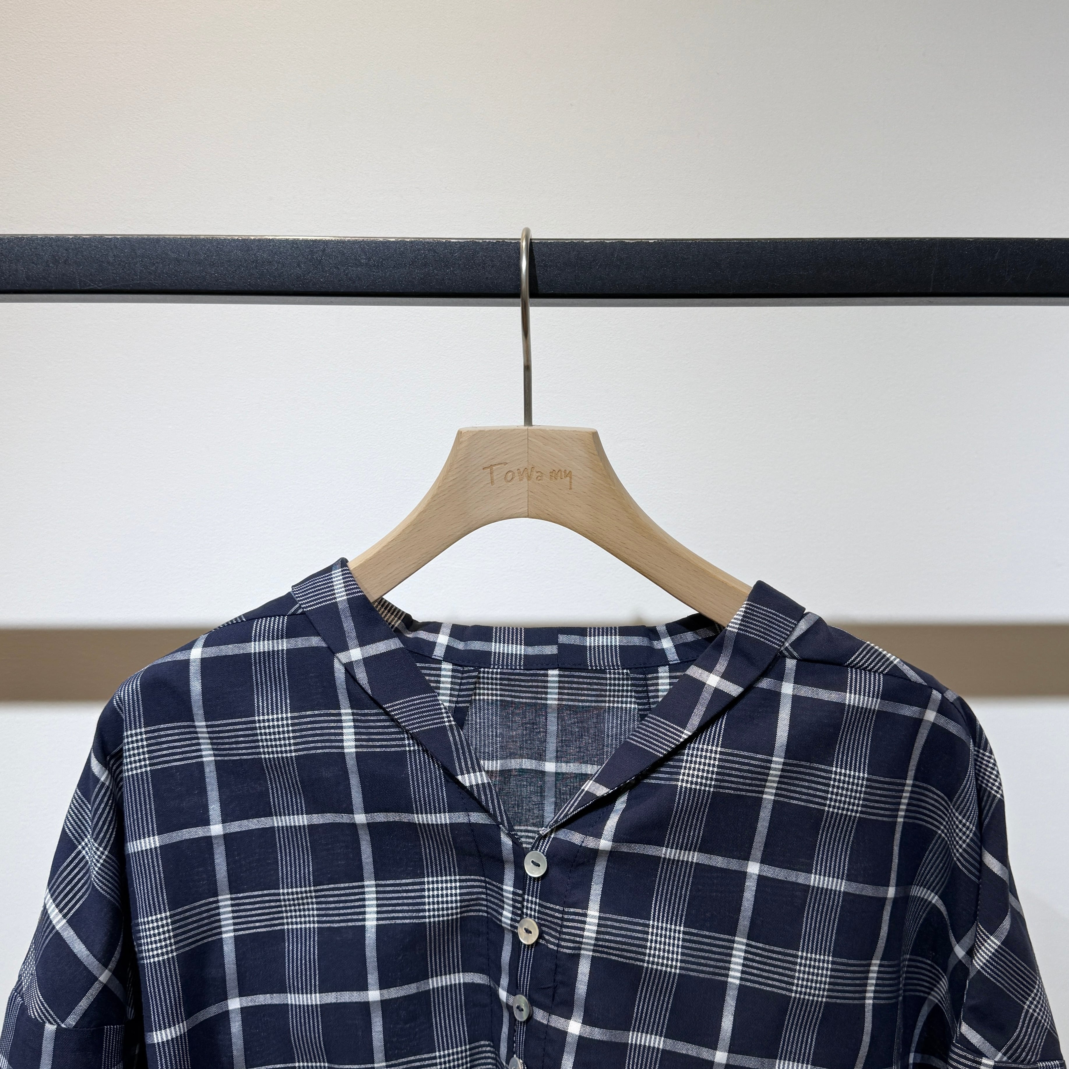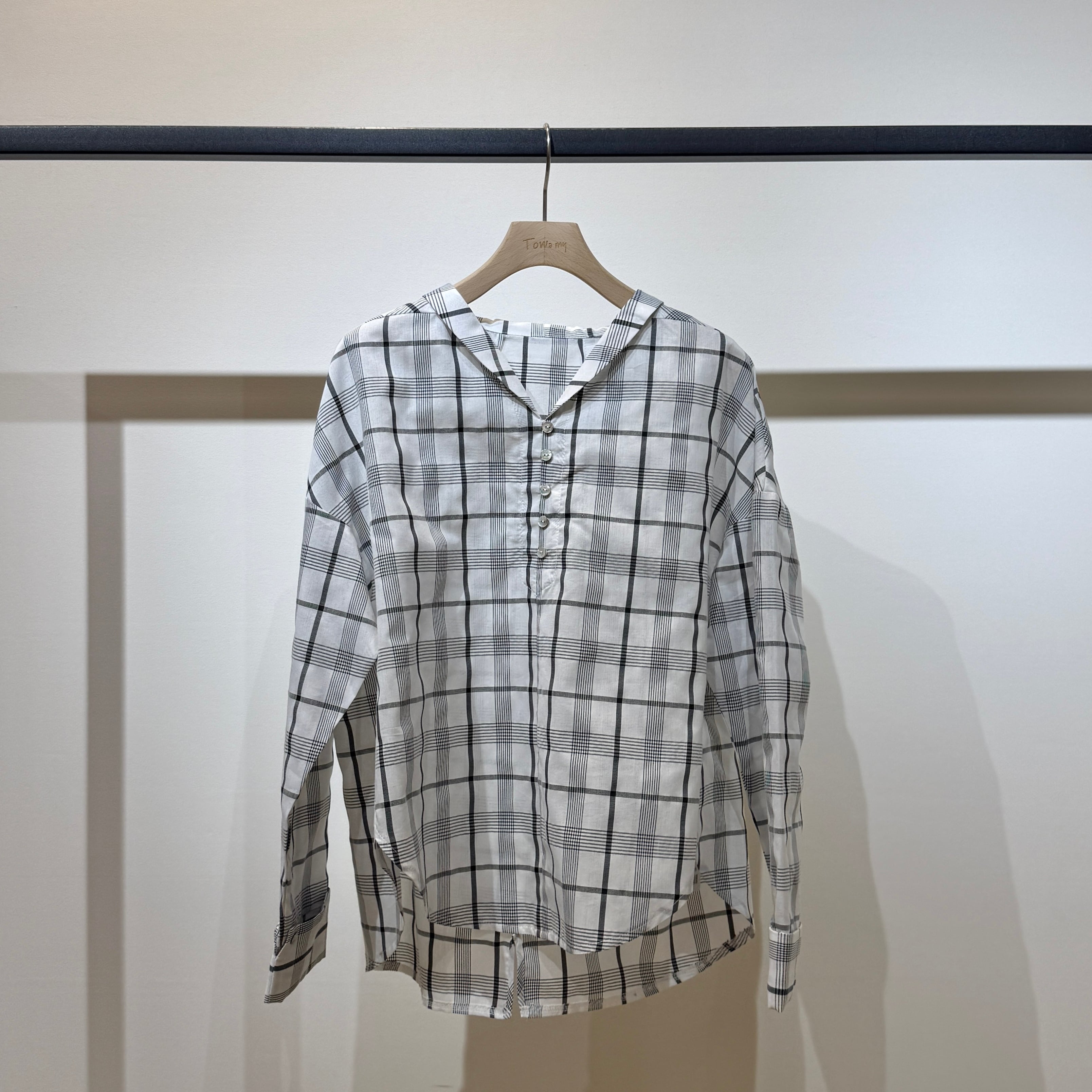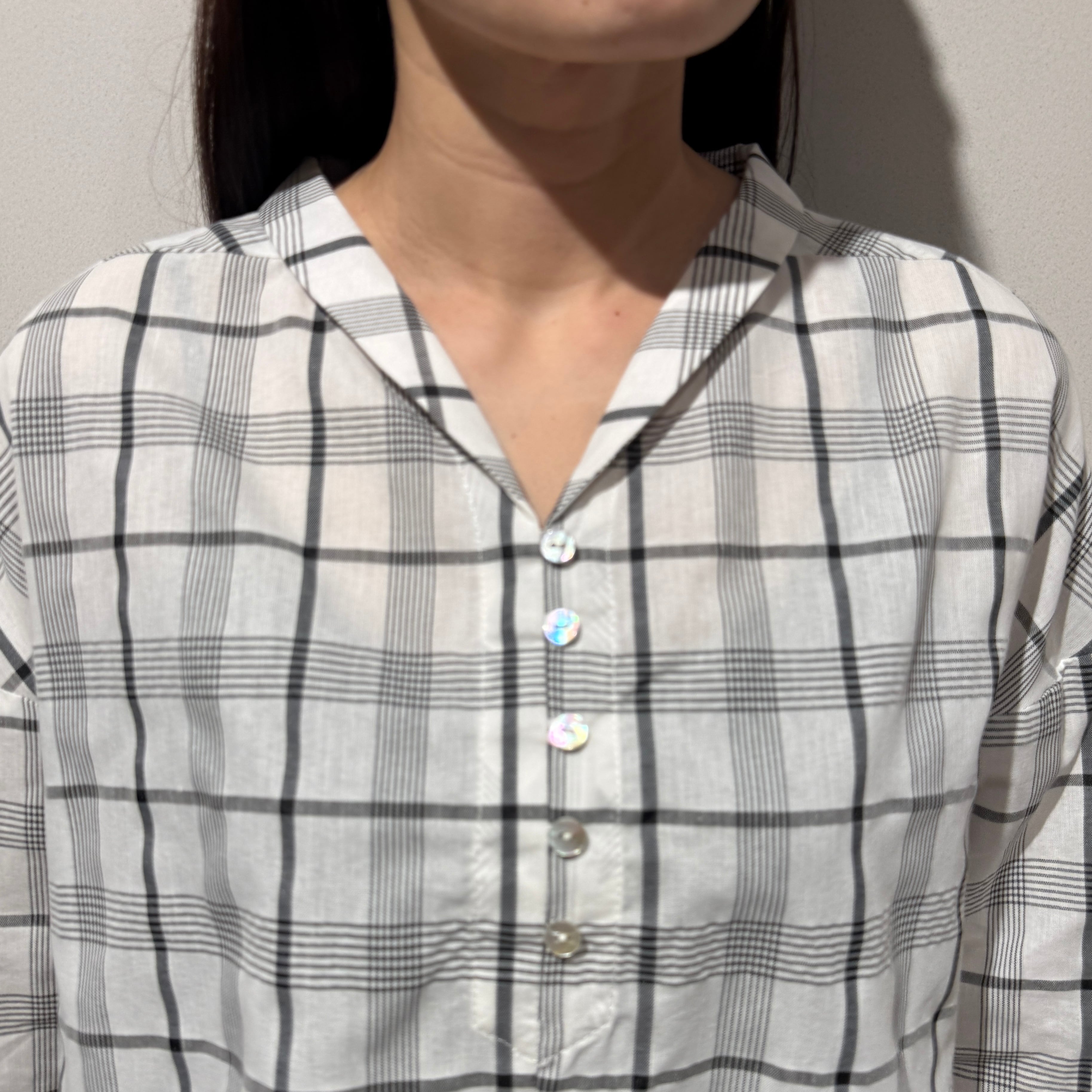 【限定店舗】ボイルチェックちび衿ブラウス