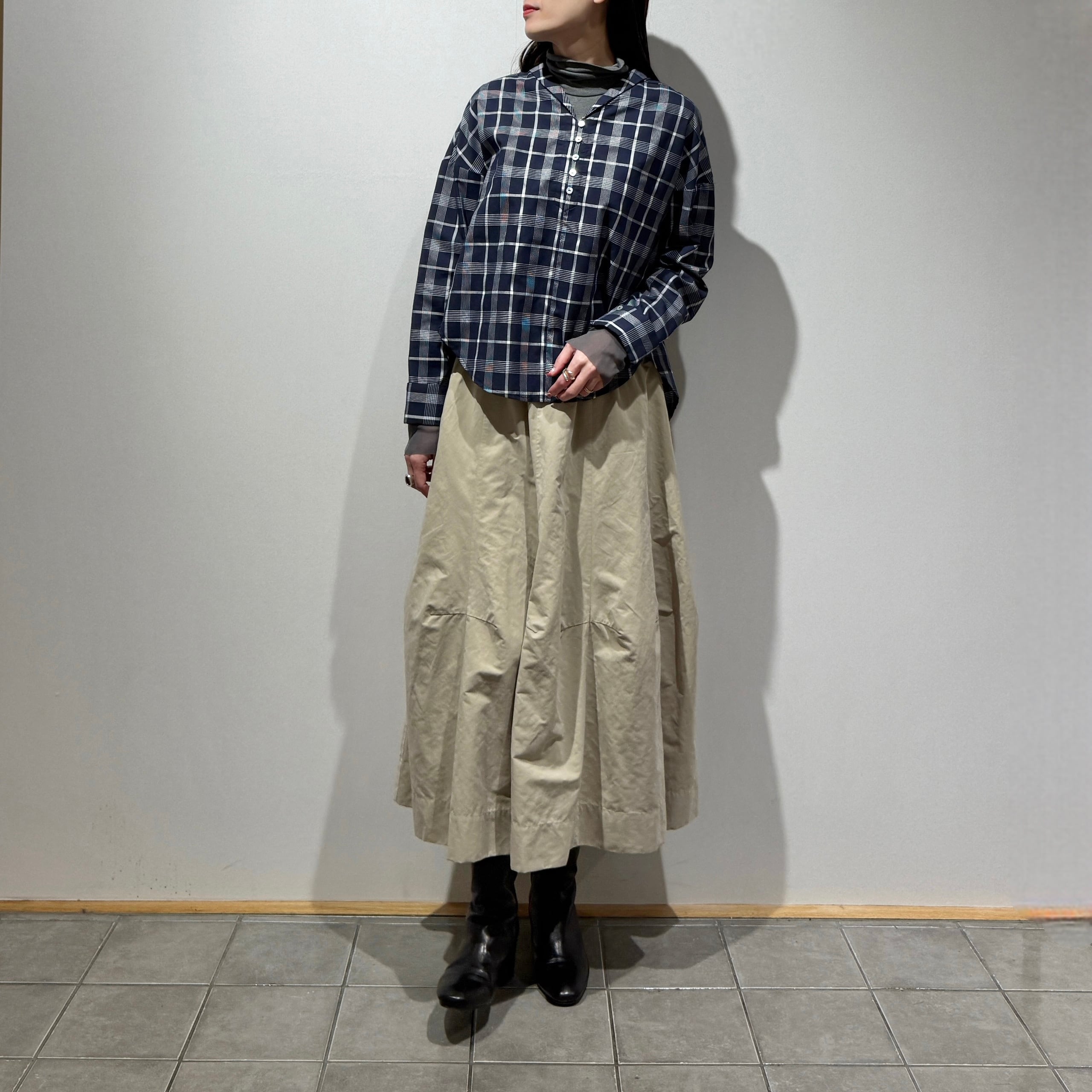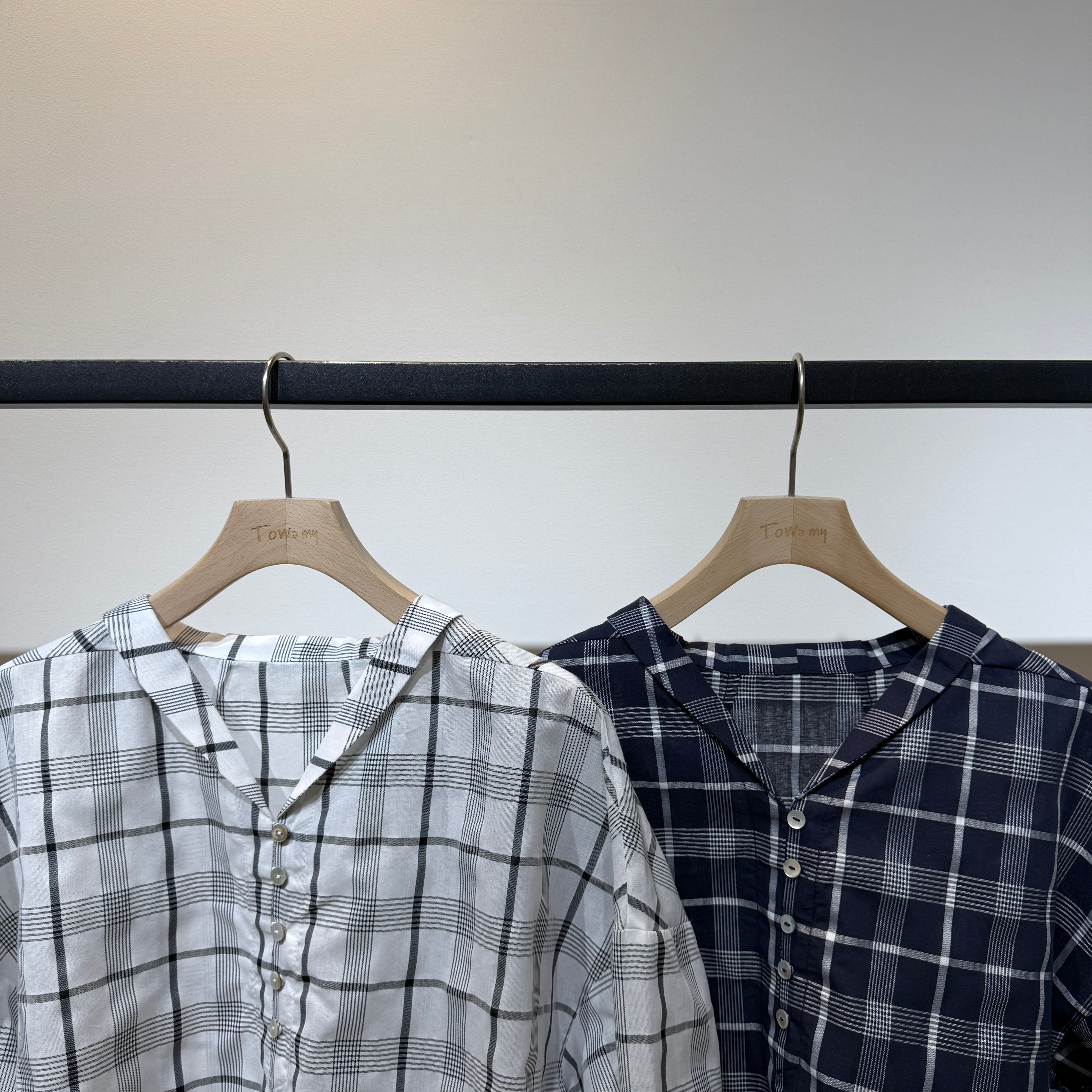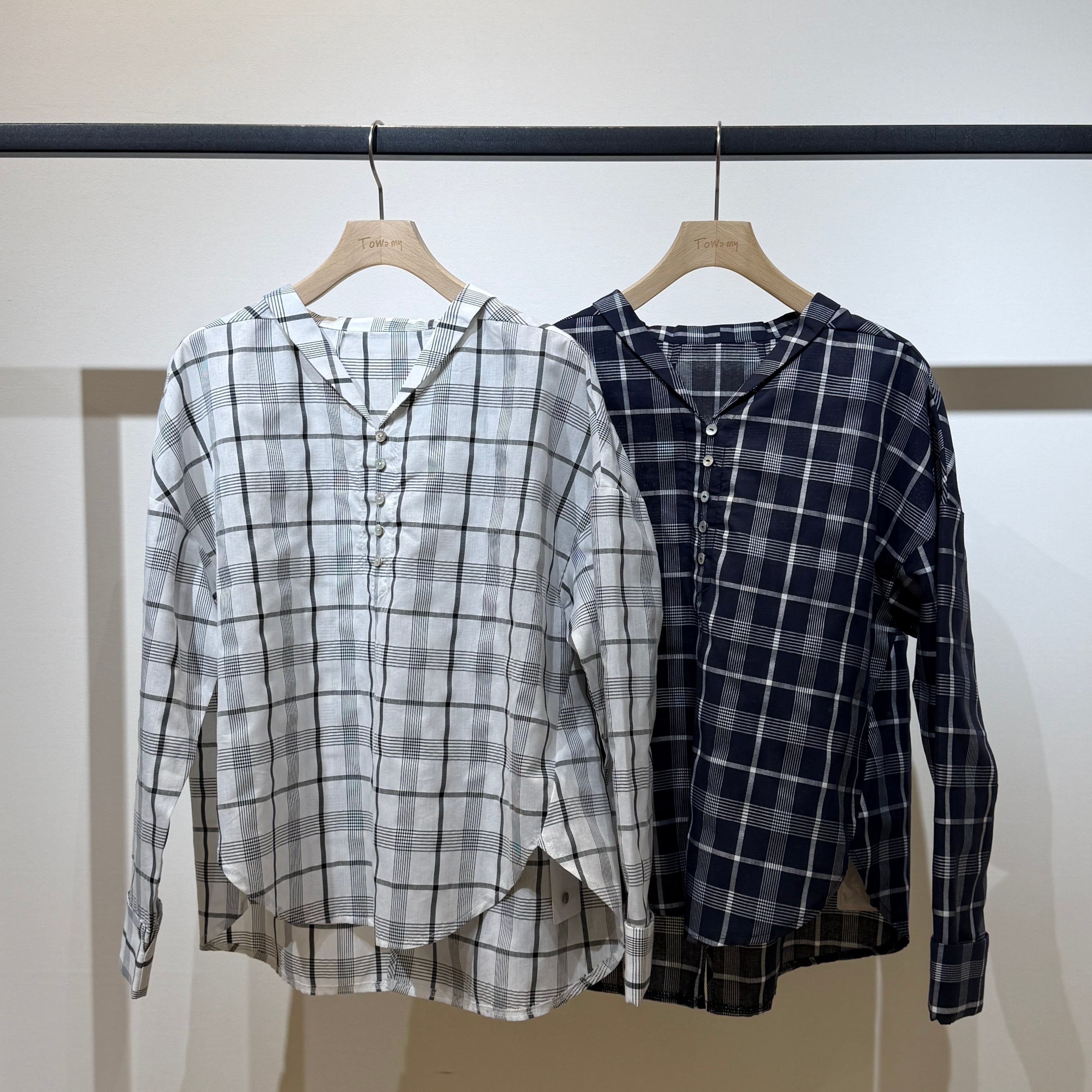 【限定店舗】ボイルチェックちび衿ブラウス