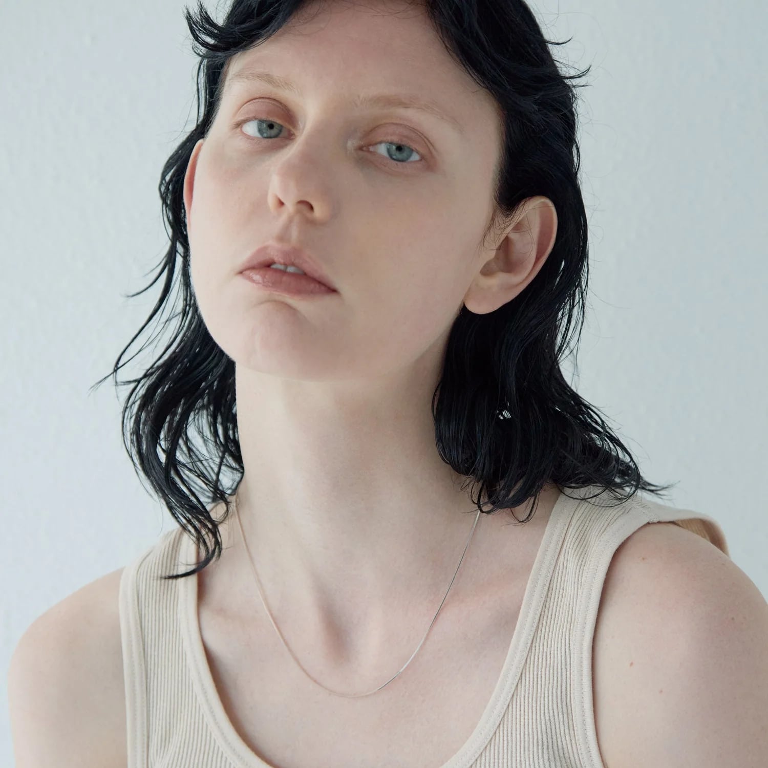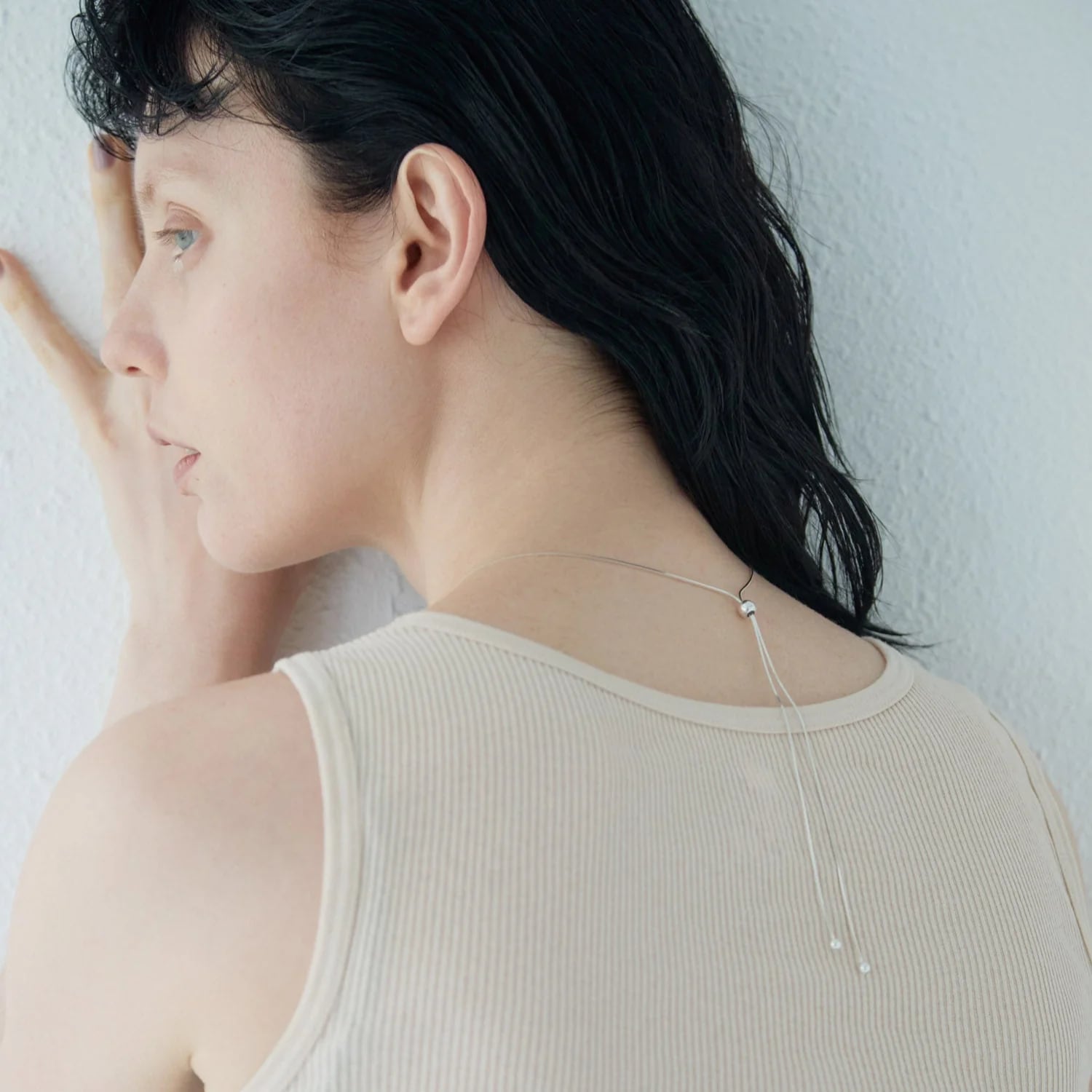 首元が詰まったトップスには短めに、Vネックやワンピースにはロングにと、一つのネックレスで複数の表情を楽しめるのが大きな特長。