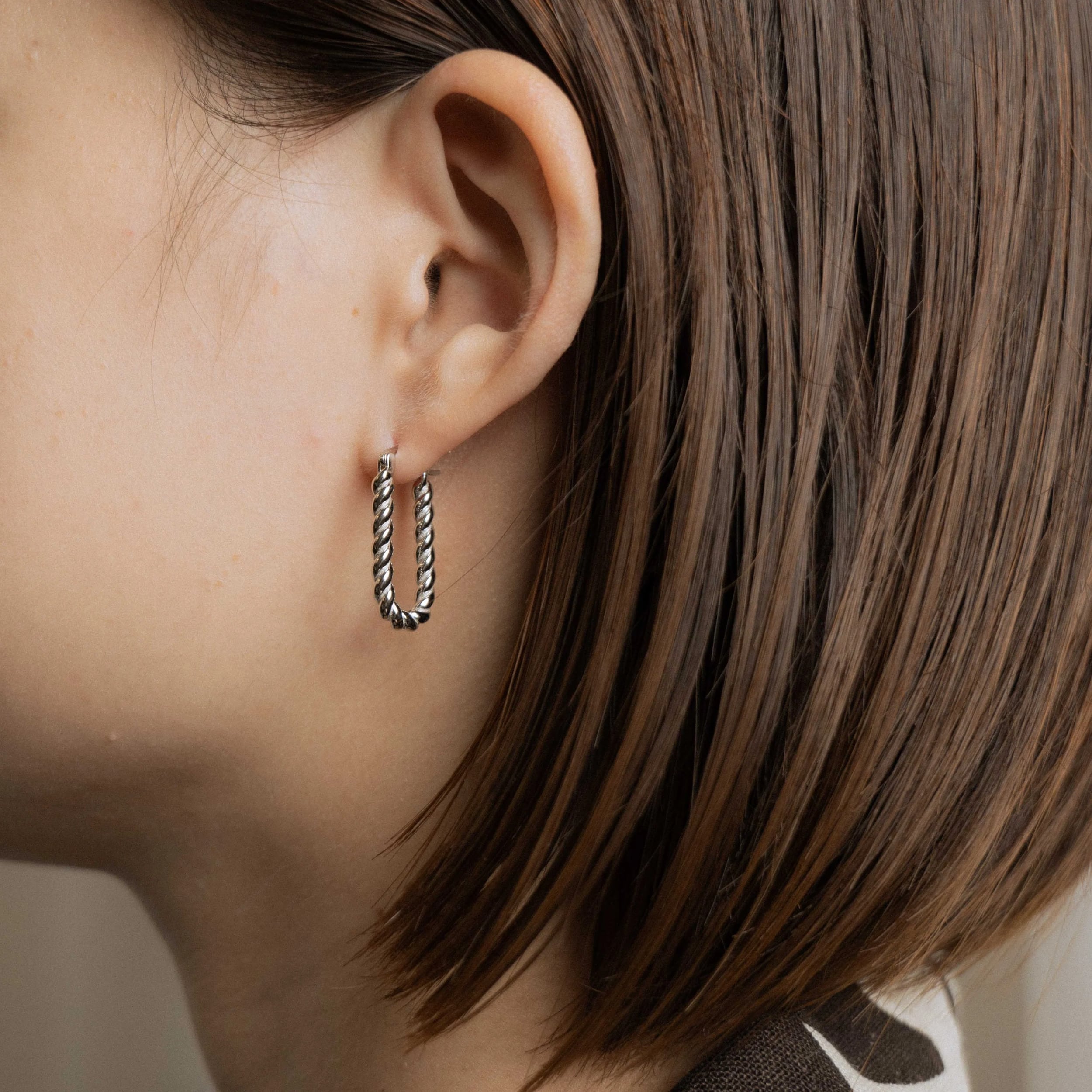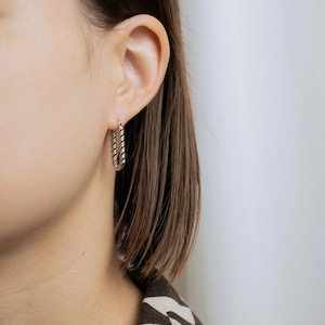 縦長のデザインなのでフープピアスでもスッキリつけて頂けます。