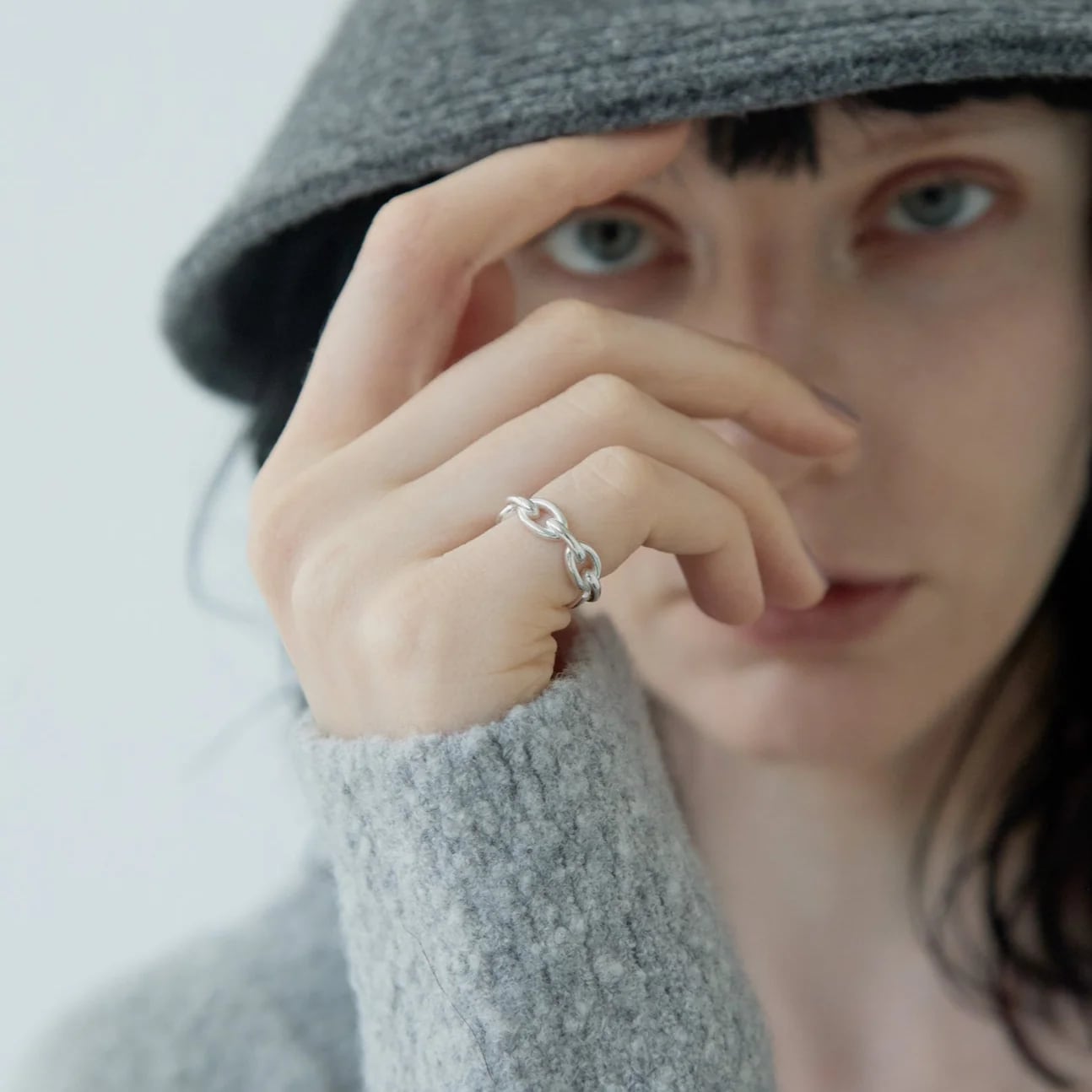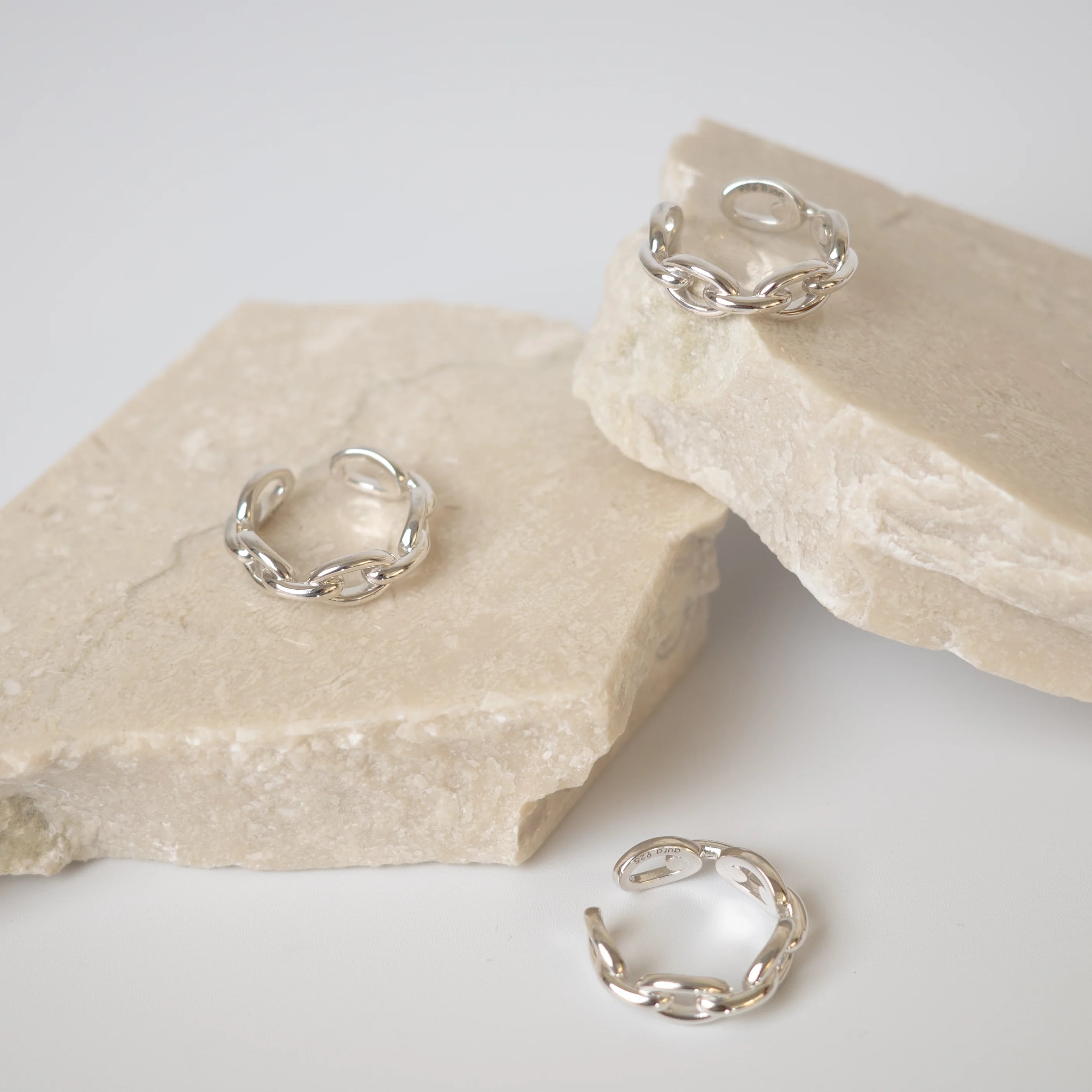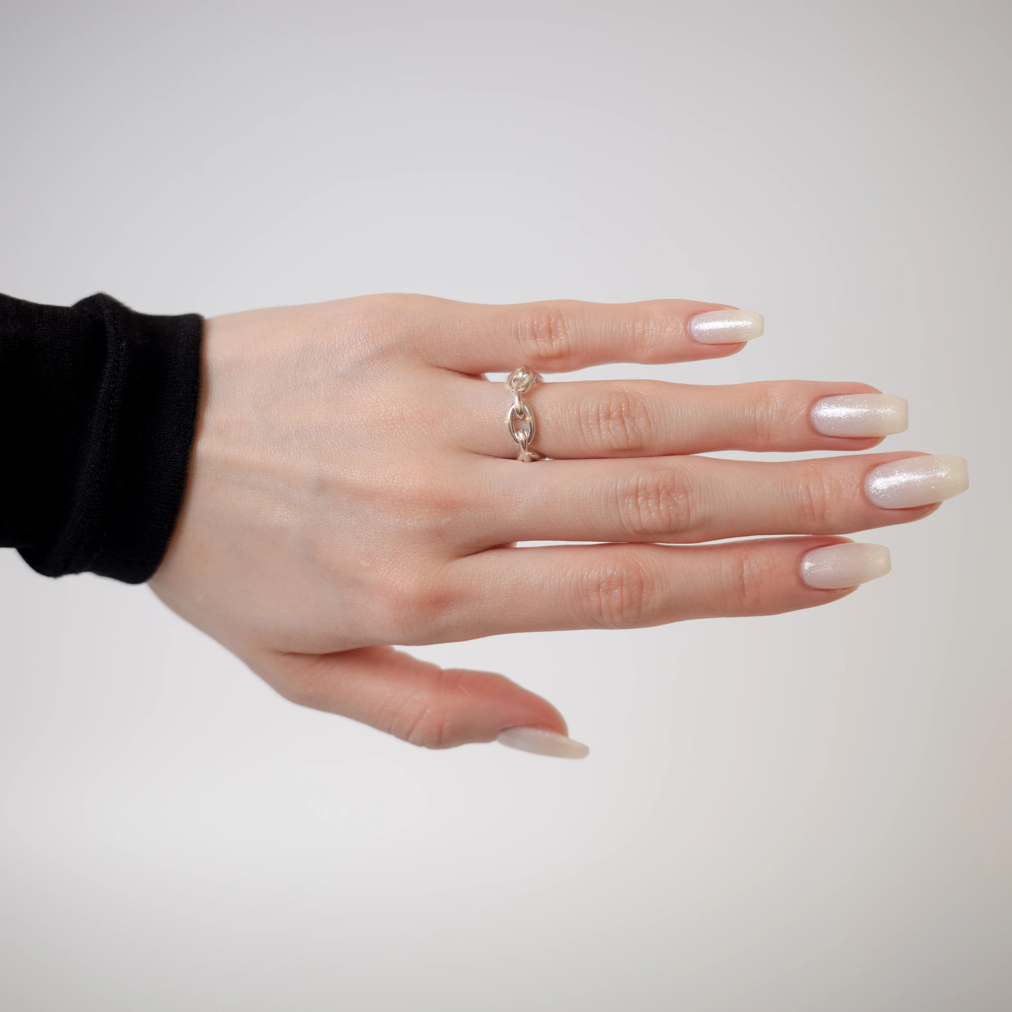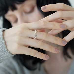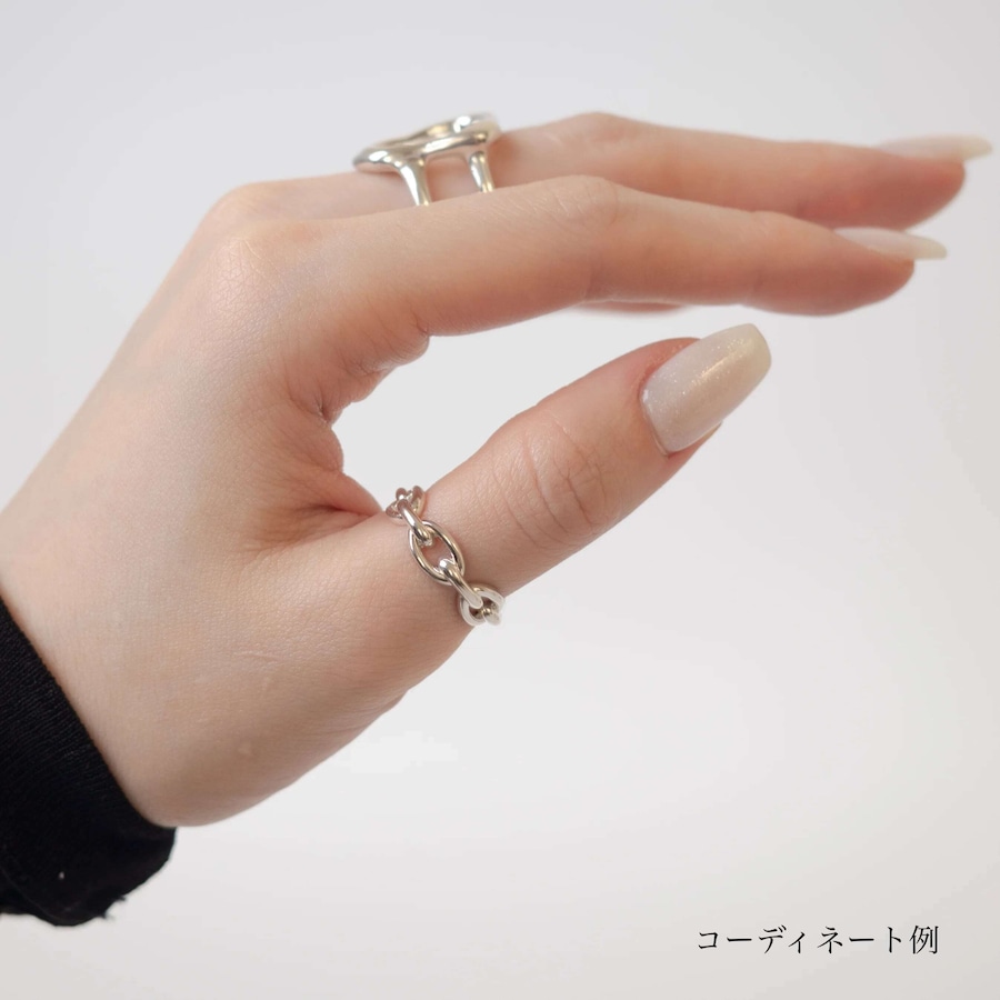 ゴツすぎず、華奢過ぎないチェーンモチーフのリング。