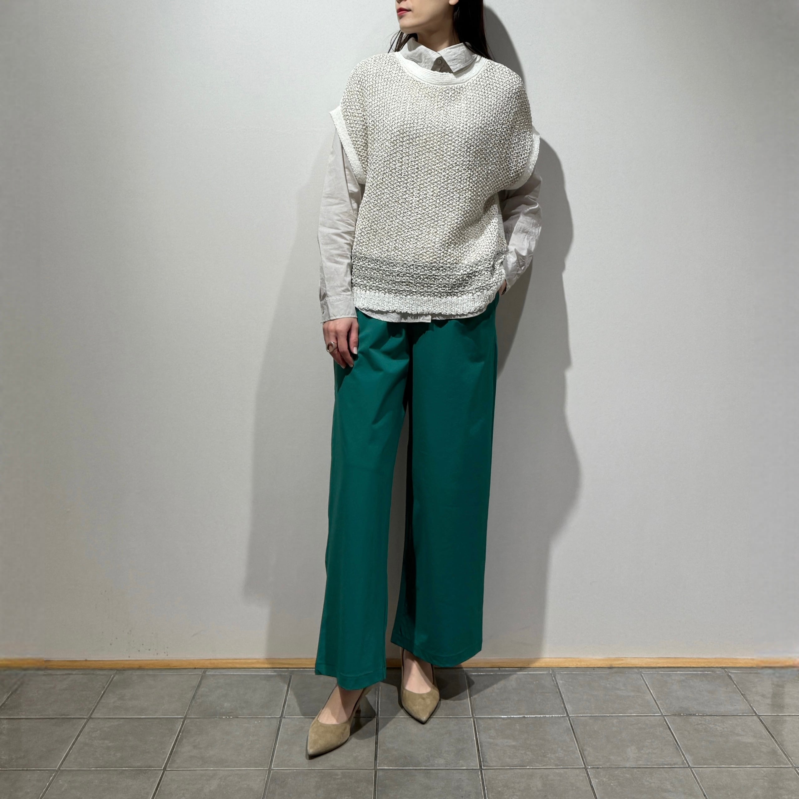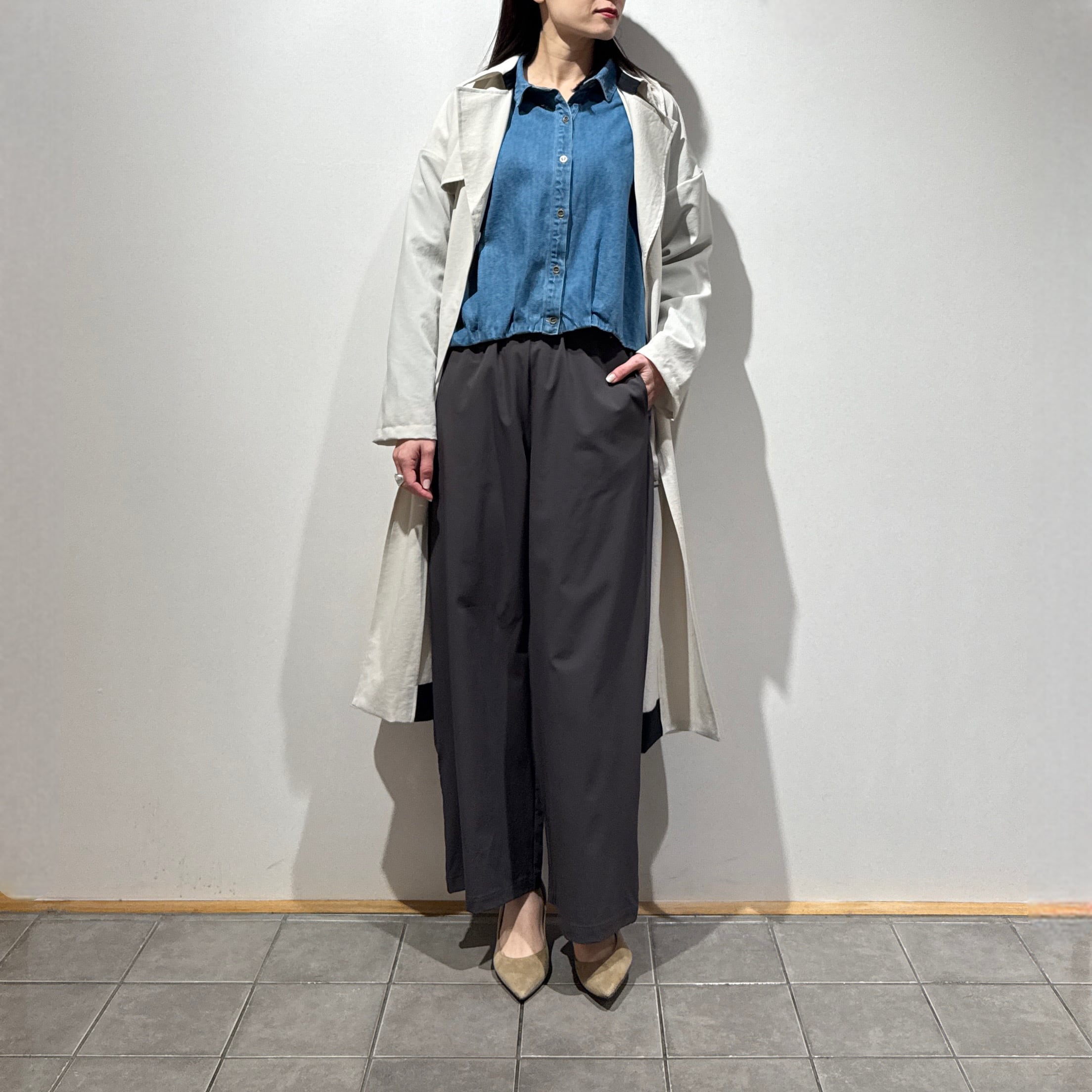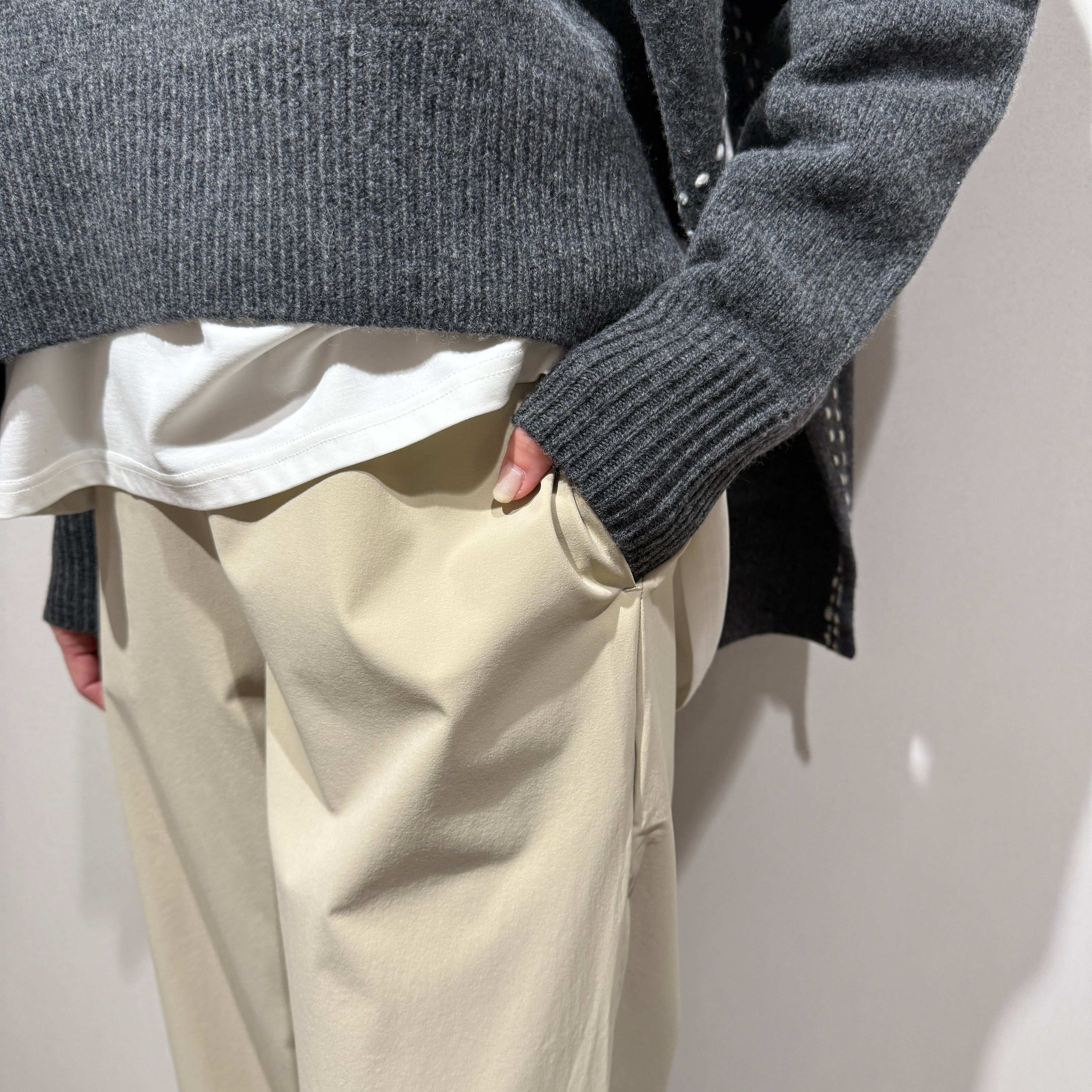 程よくゆとりのあるワイドシルエットで、動きやすさと上品さを両立。