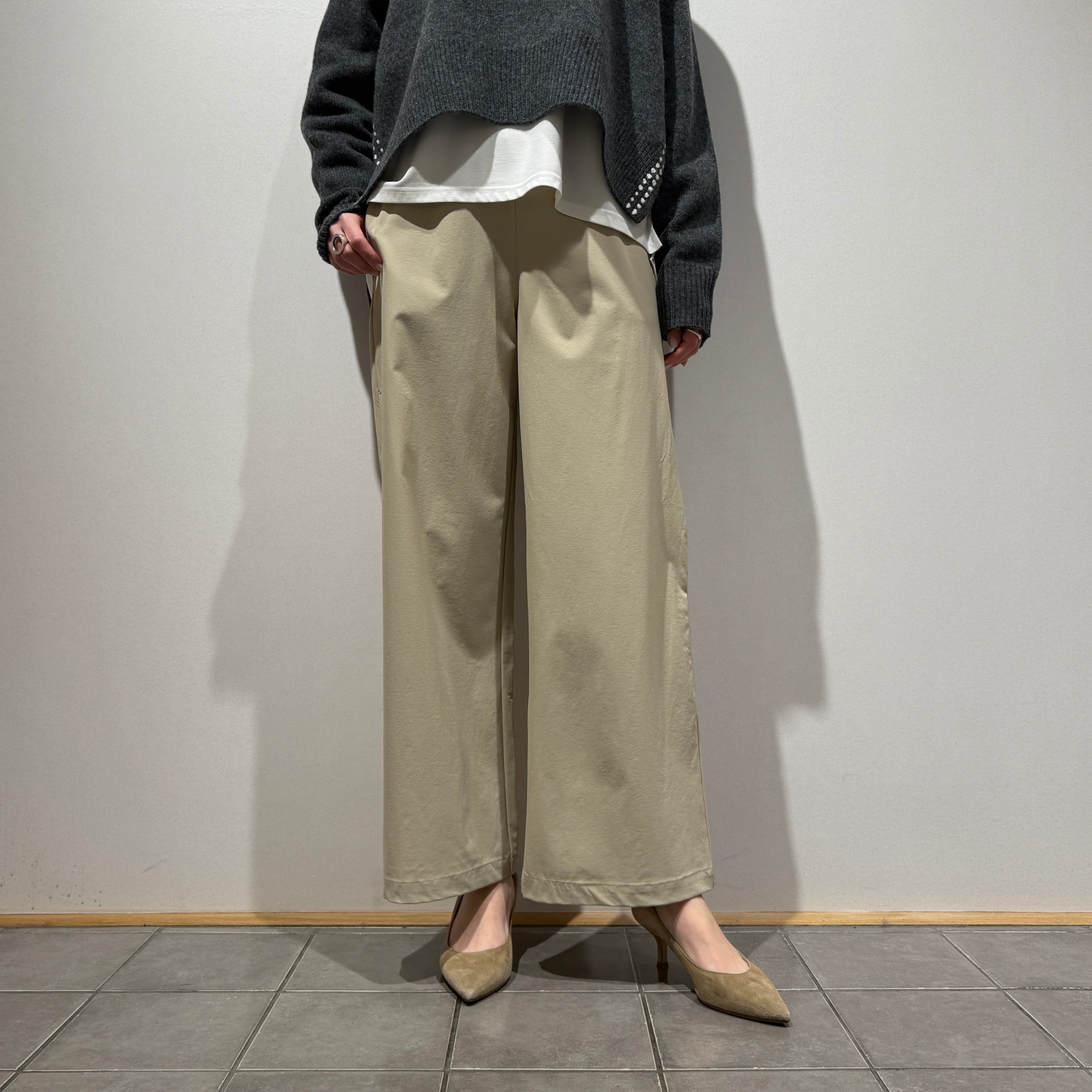 抜群の伸縮性と軽さを兼ね備えた、きれい見えするワイドパンツ。