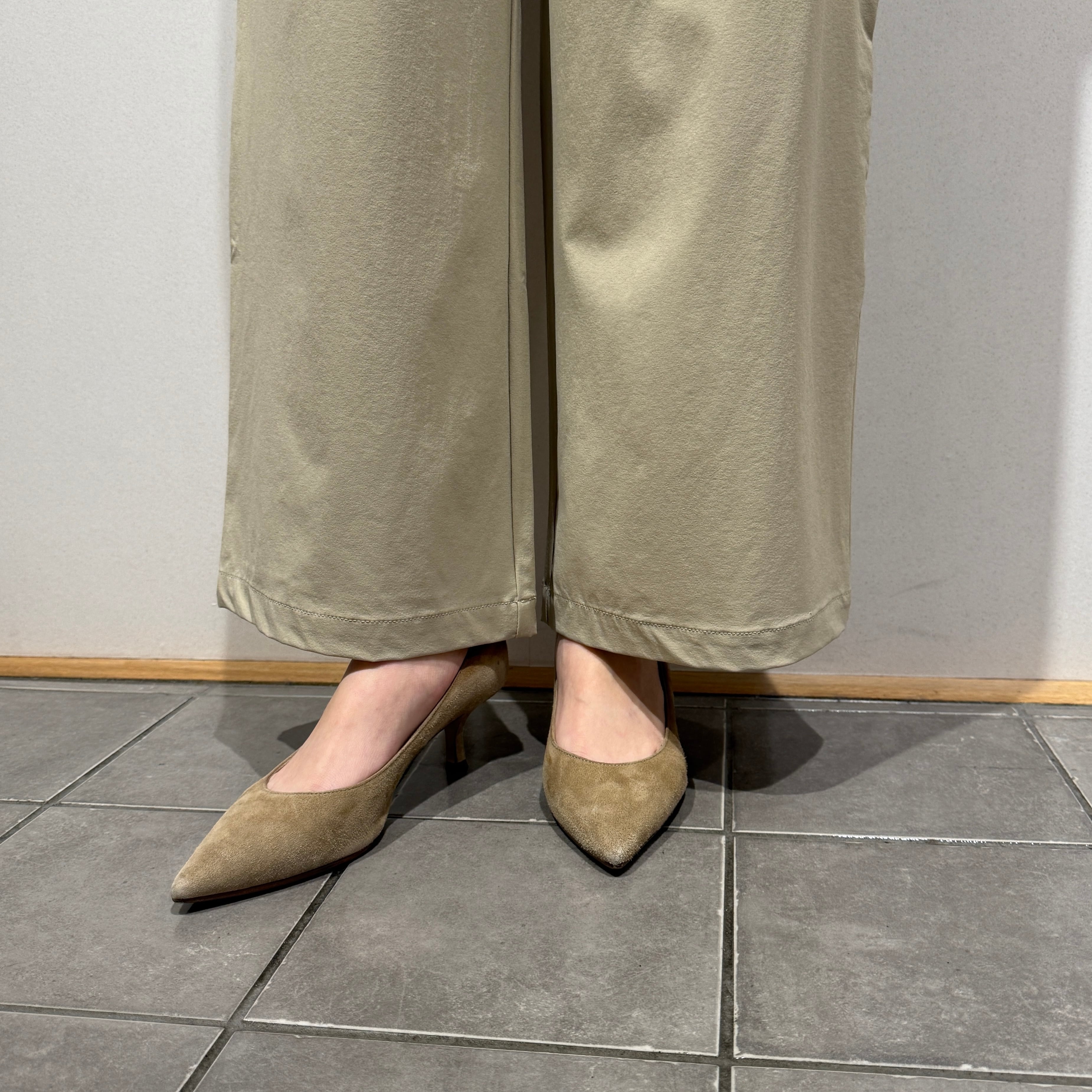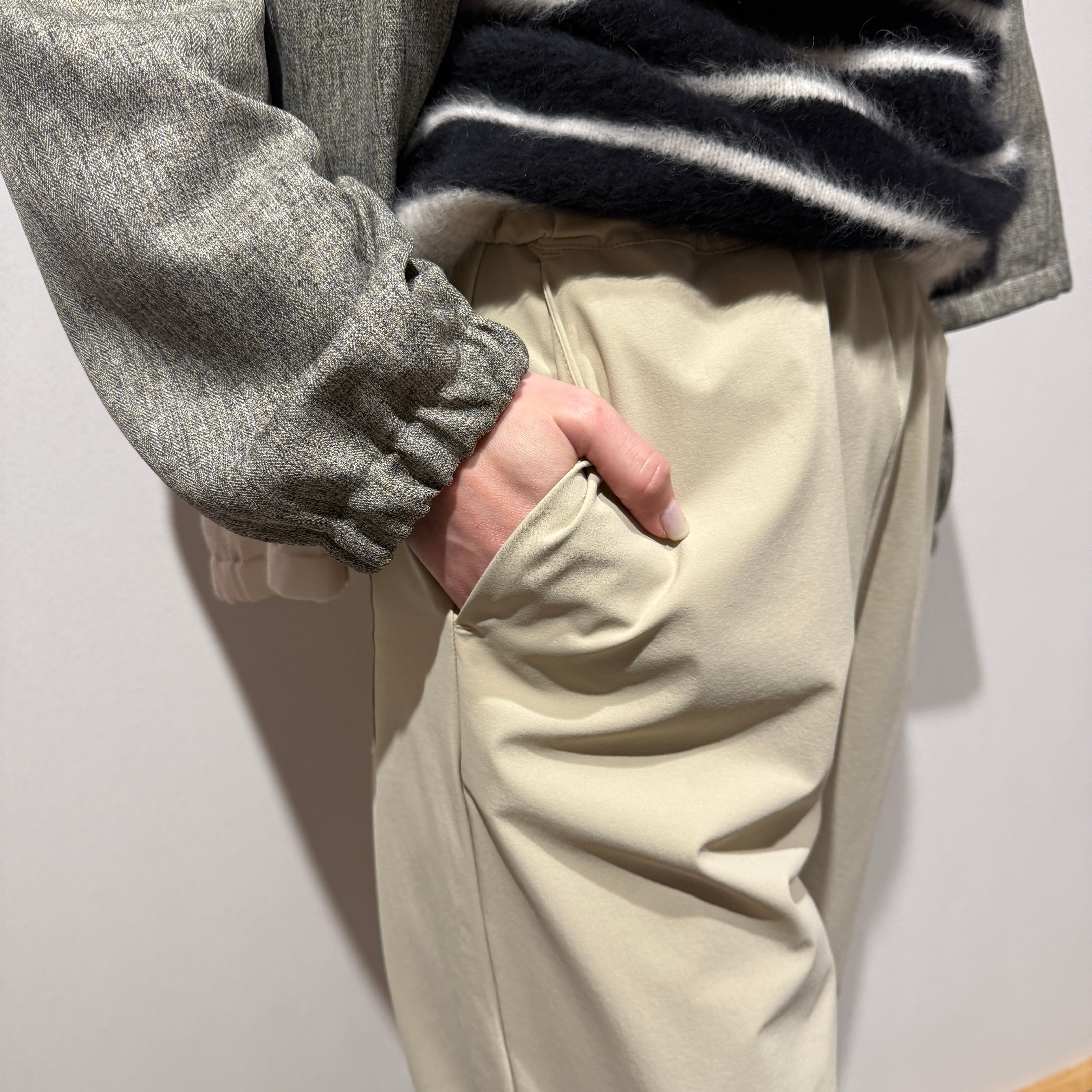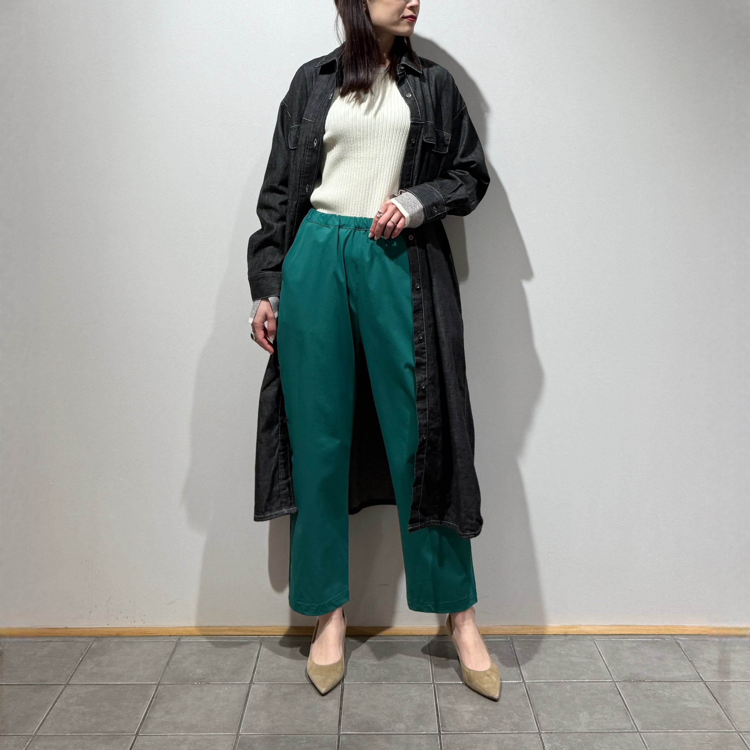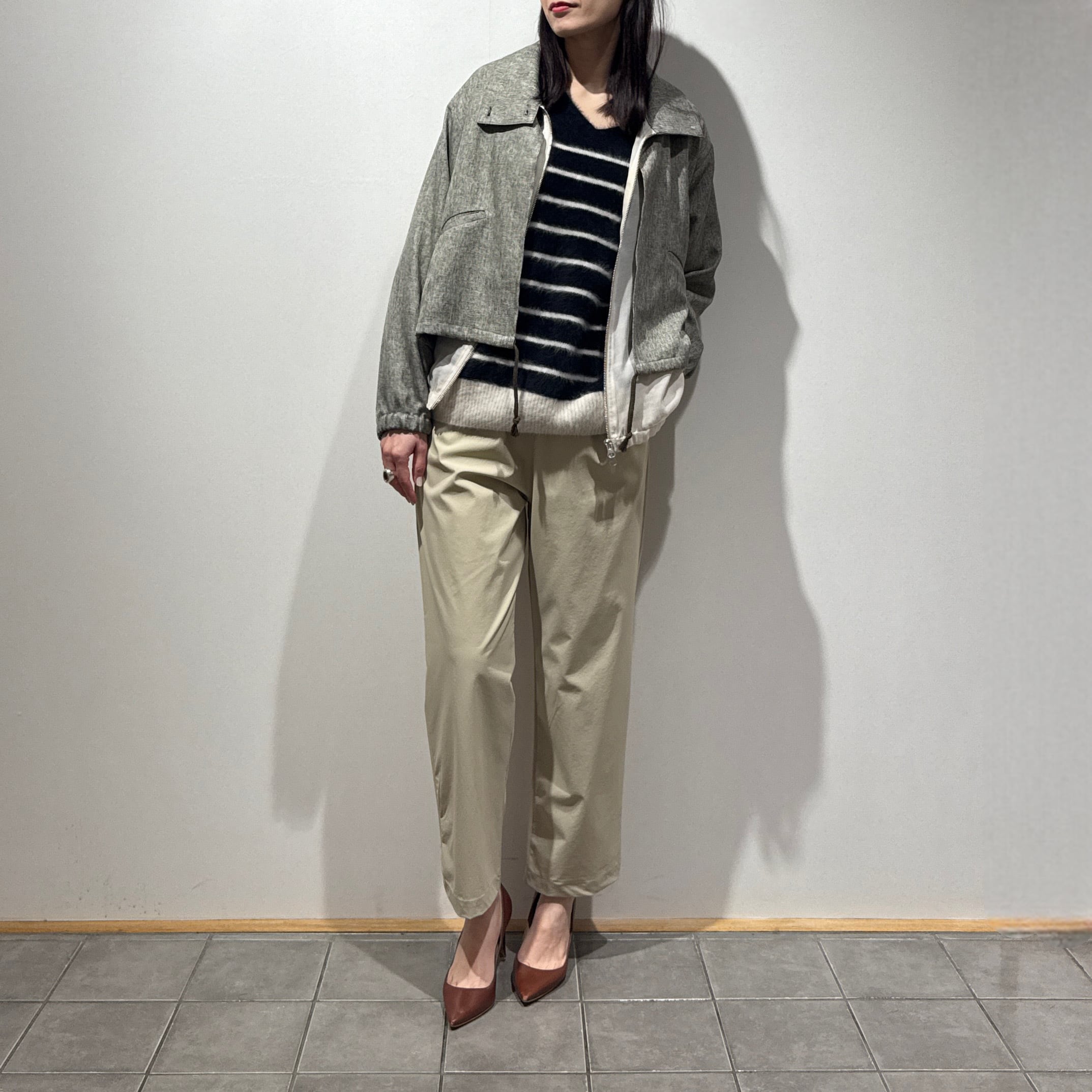 腰まわりは程よくゆとりがあり、裾に向かってすっきり細くなるテーパードシルエット。