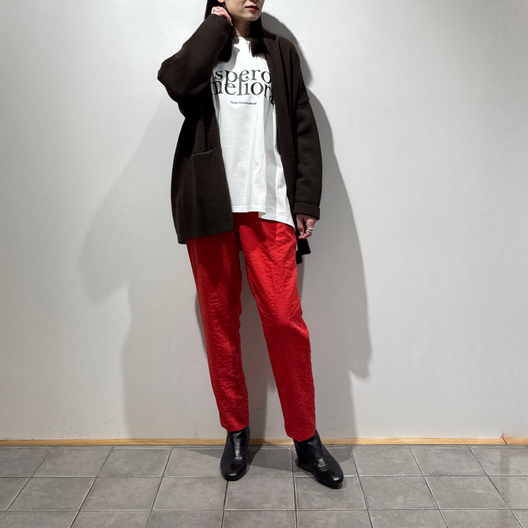 ワイドパンツや落ち感のあるボトムと合わせて、大人カジュアルに仕上げるのがおすすめです。