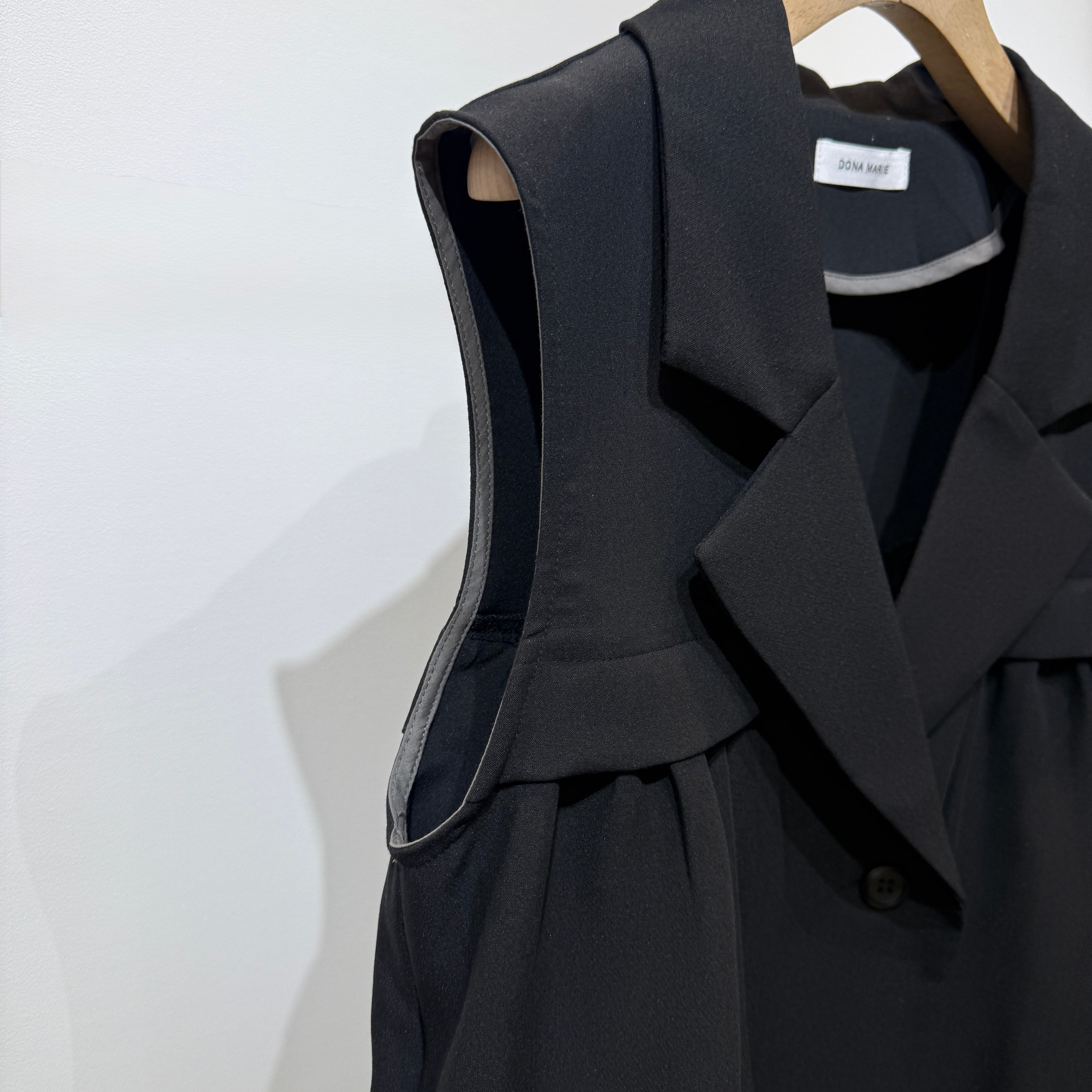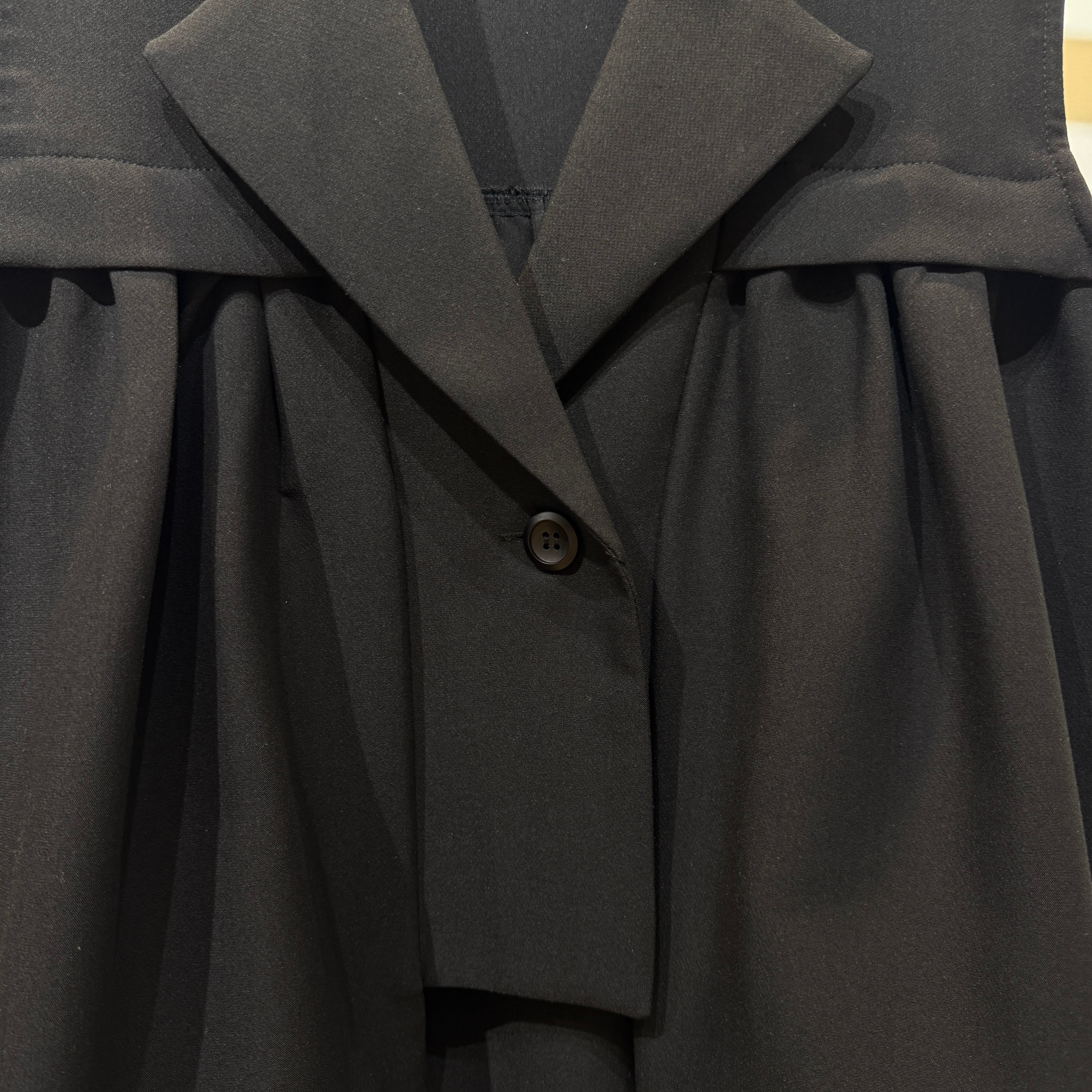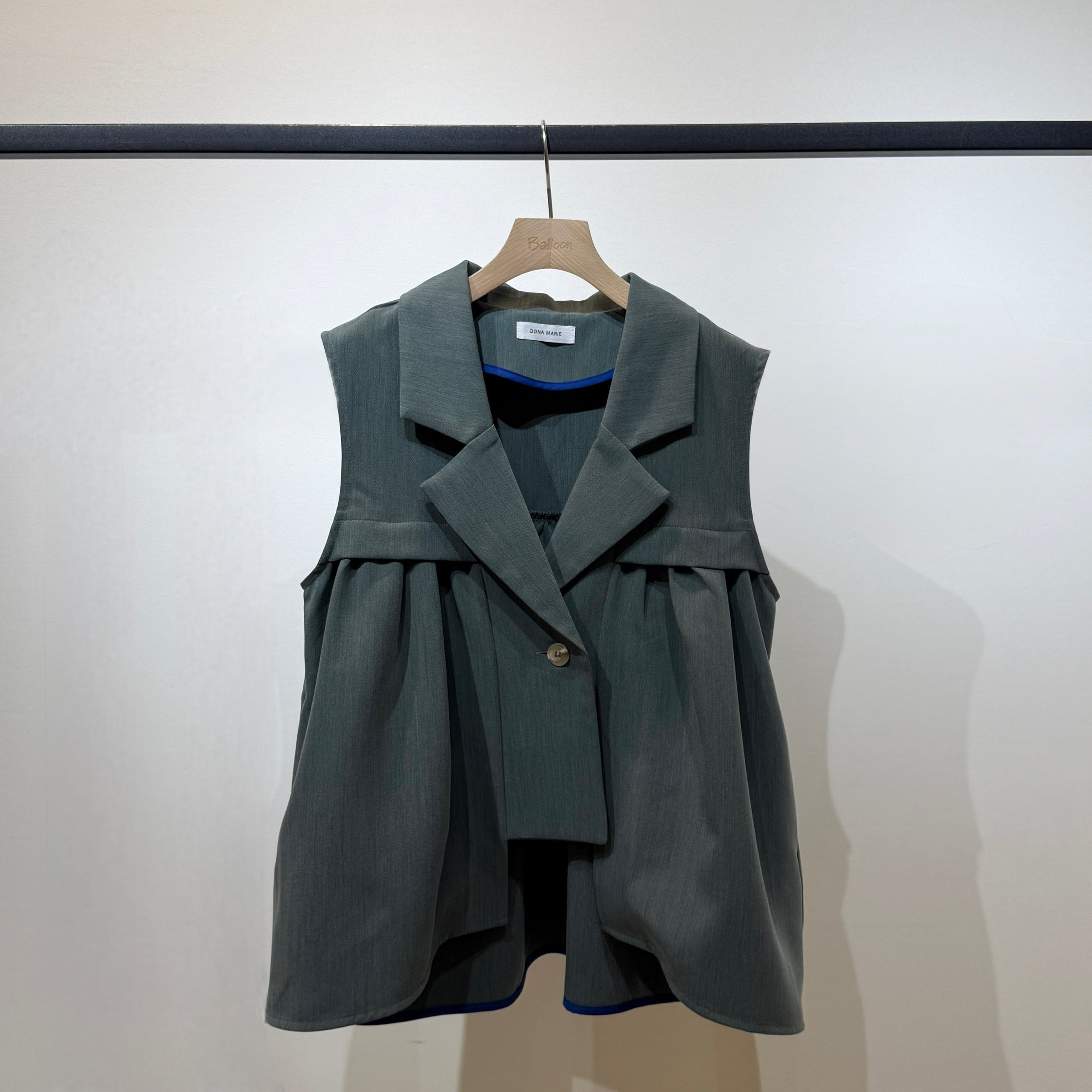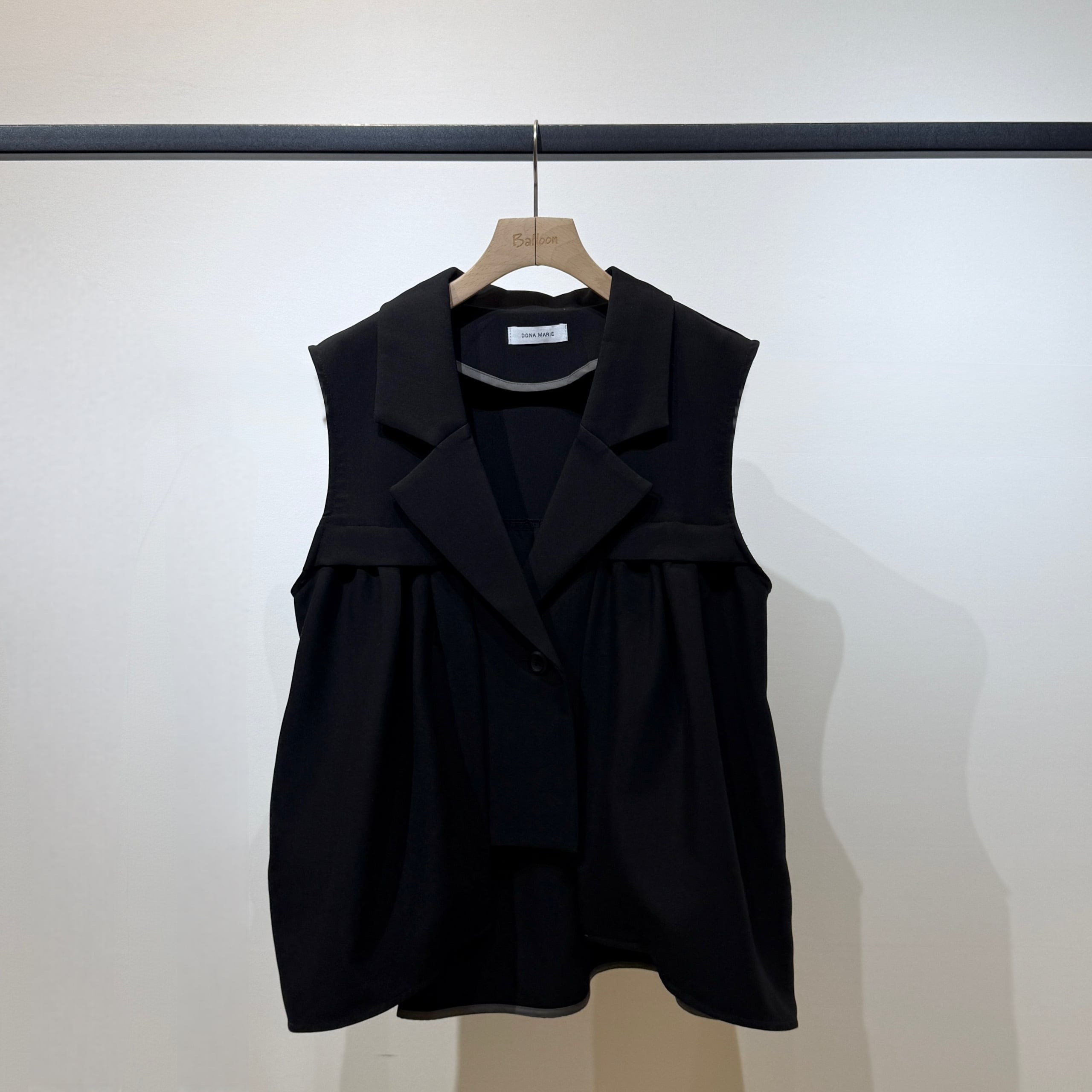 羽織るだけでスタイリングが決まる、軽やかで上品な印象のタックフレアジレ。