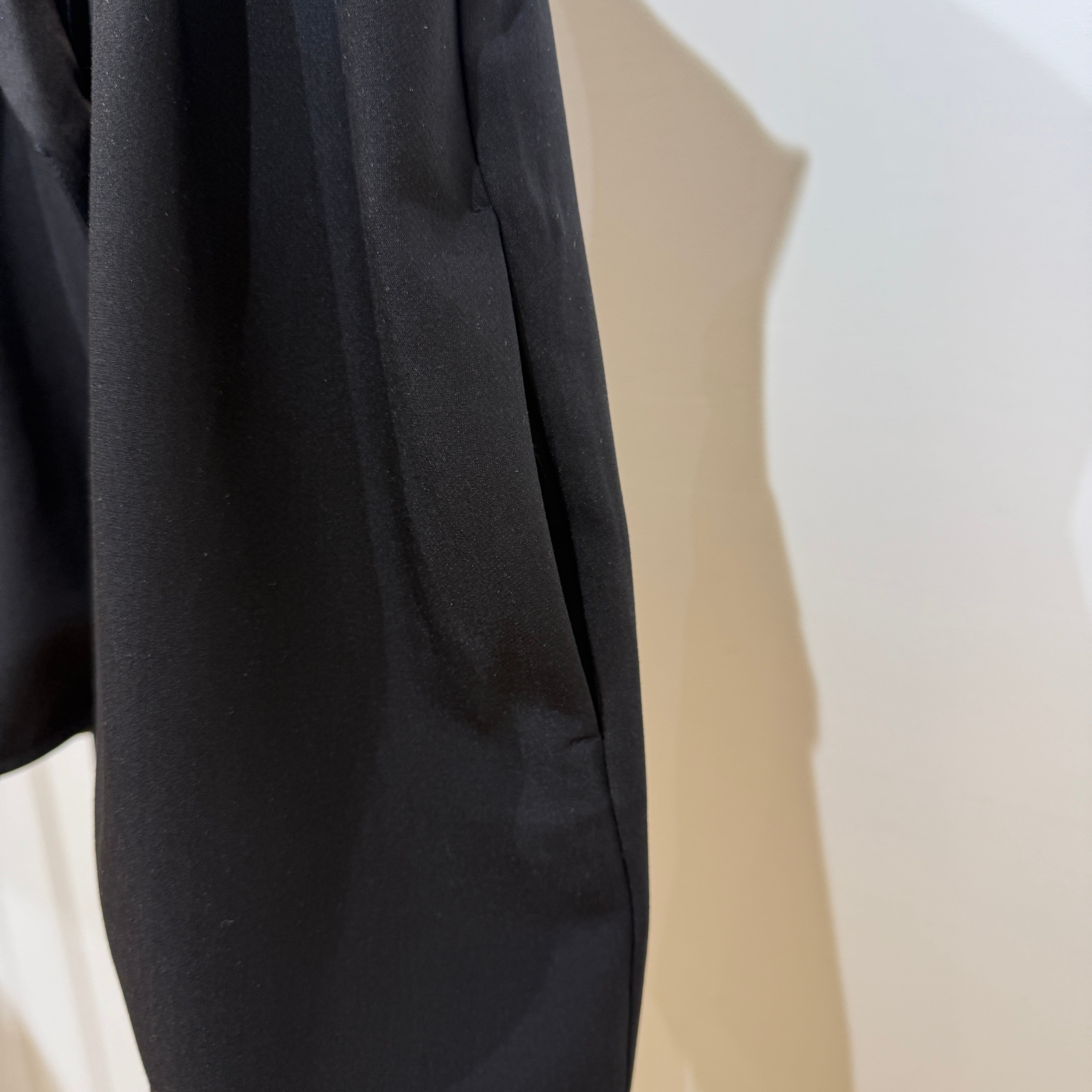 フロントはすっきり、バックにタックを入れたフレアシルエットで、動きのある立体的な後ろ姿が魅力です。