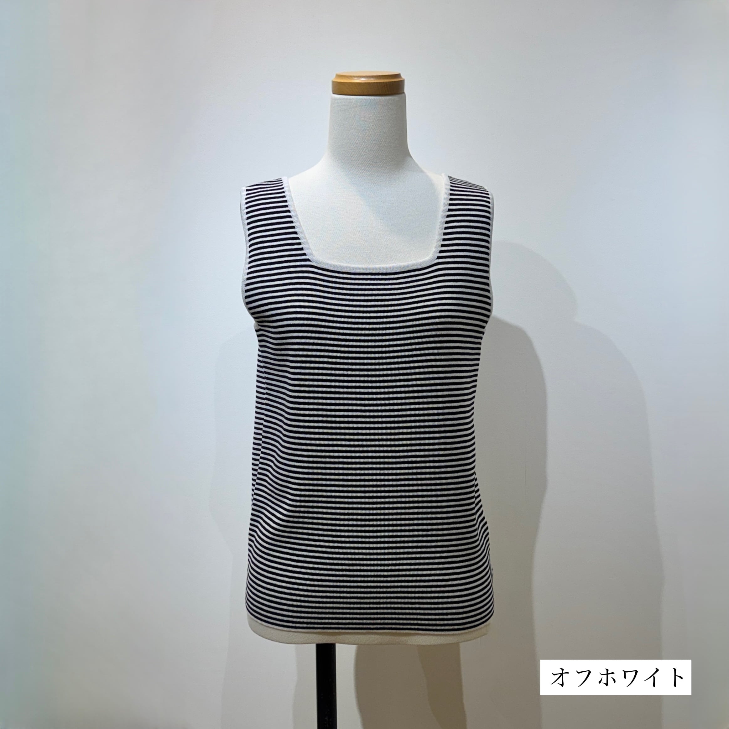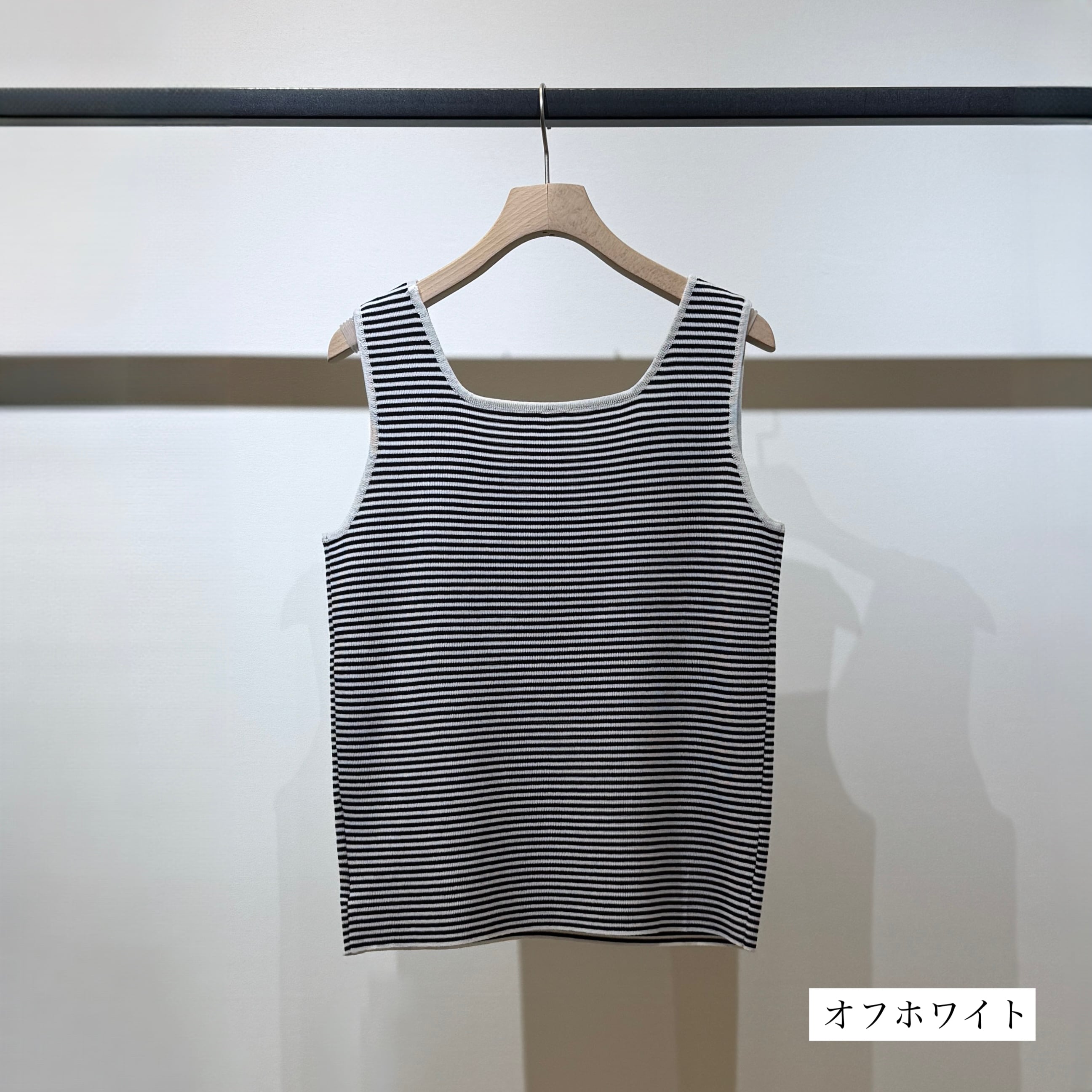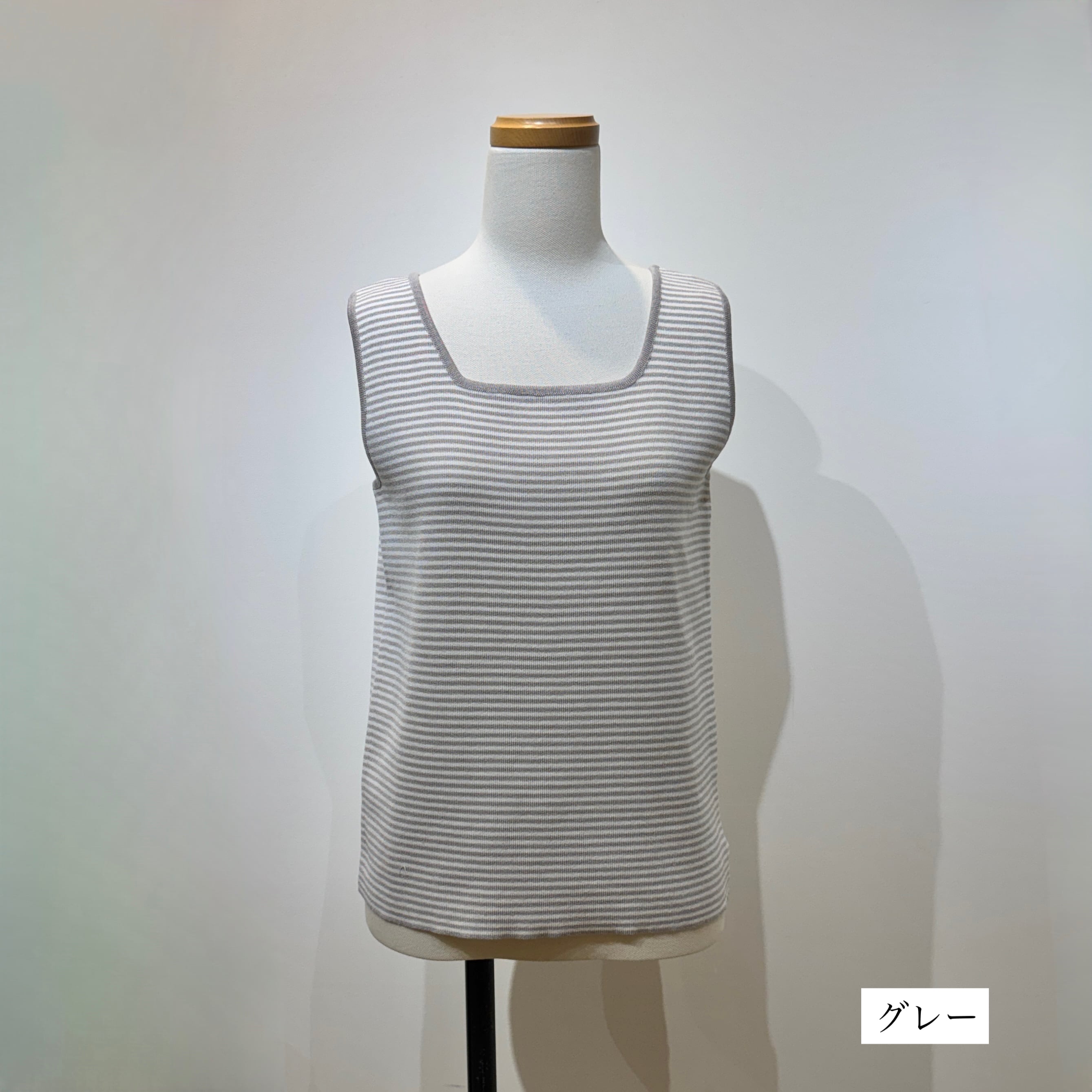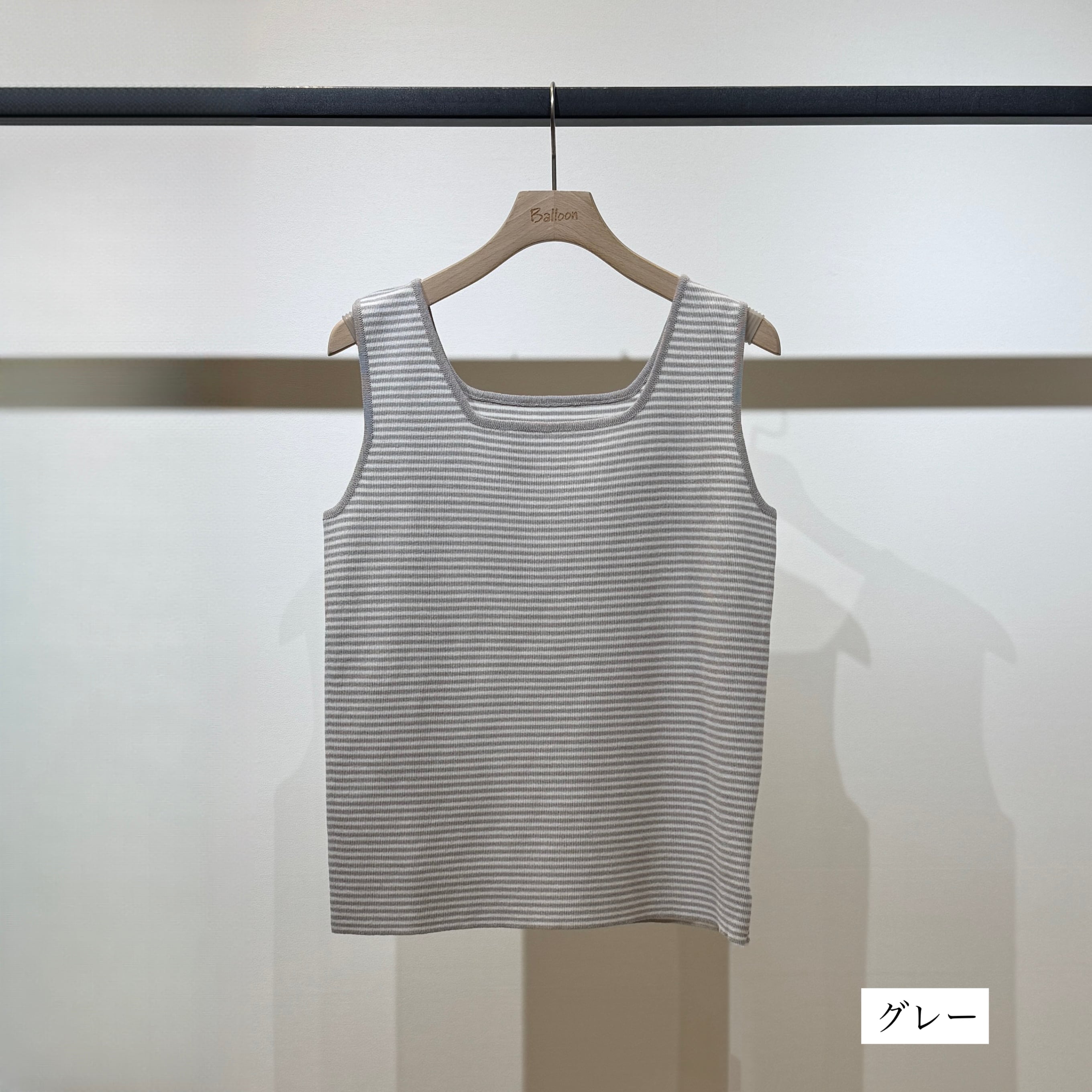 スクエアネックが女性らしいラインを引き出してくれるボーダータンクトップ。