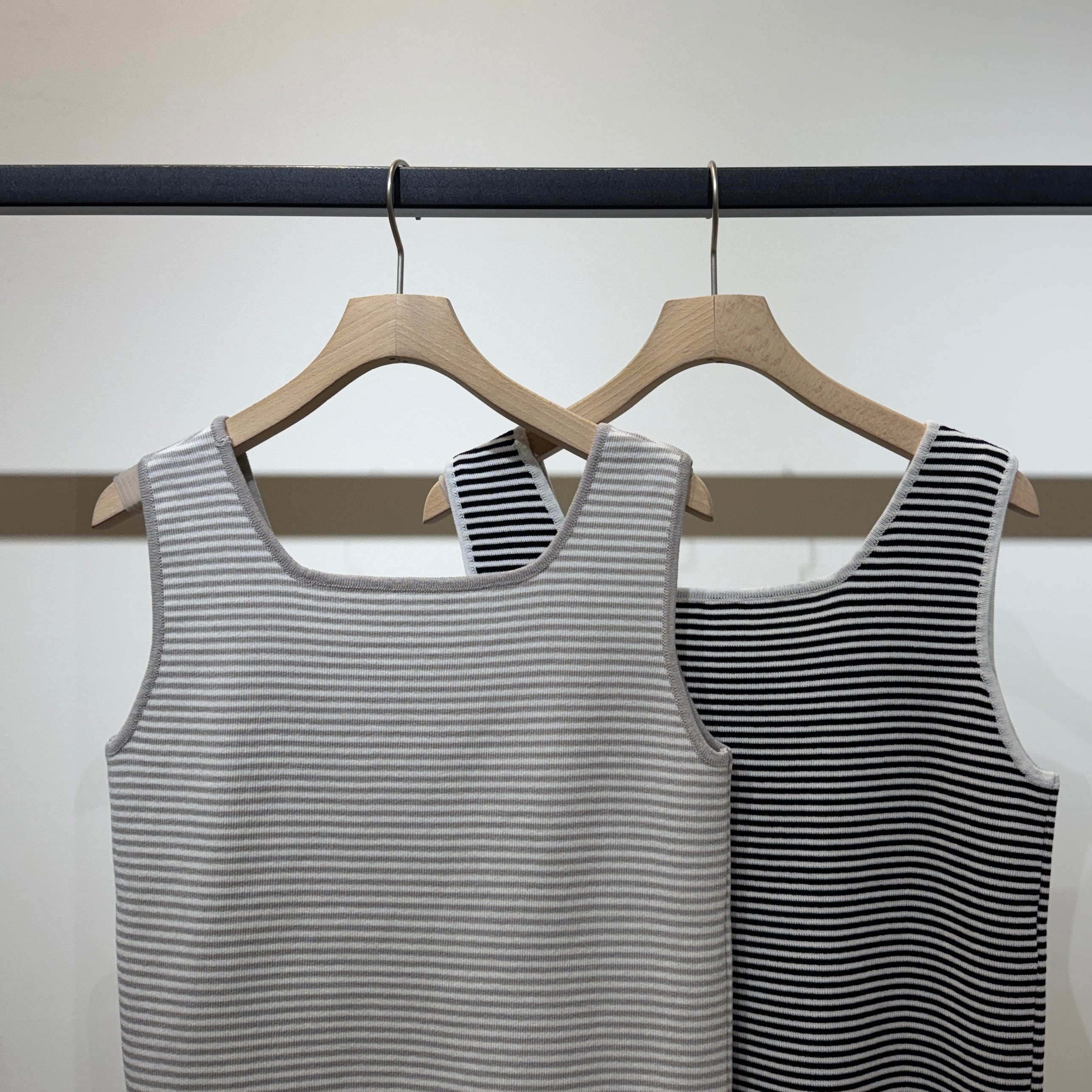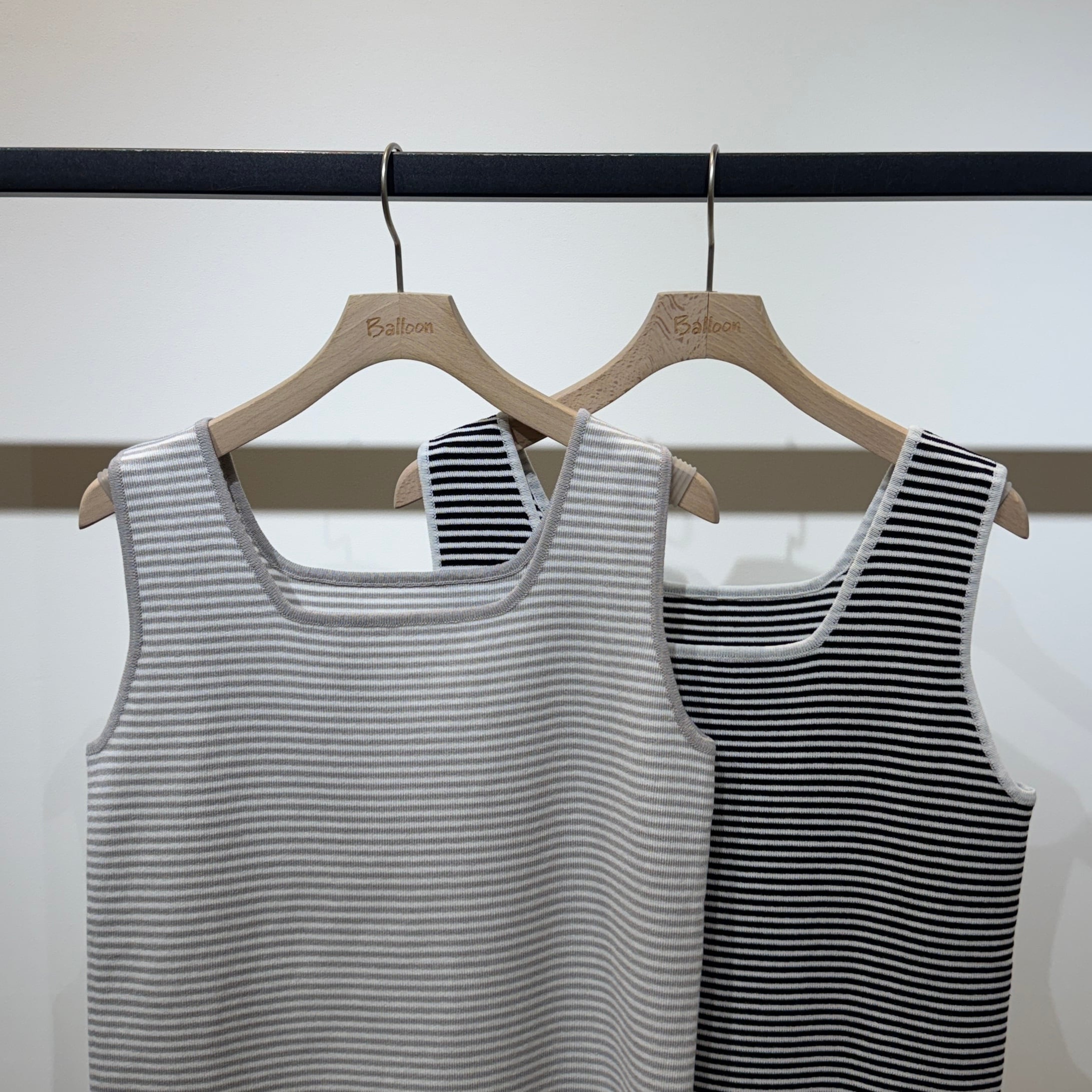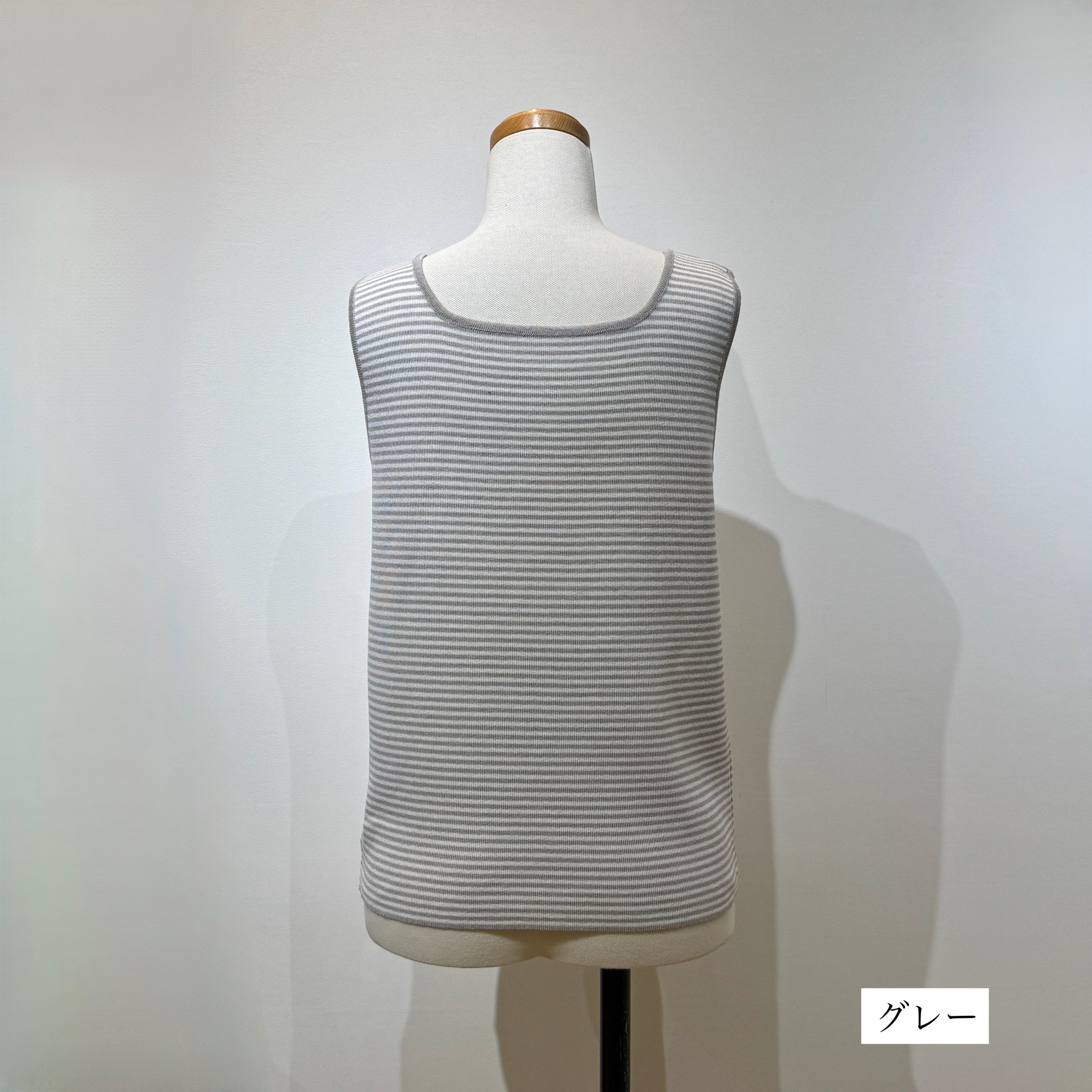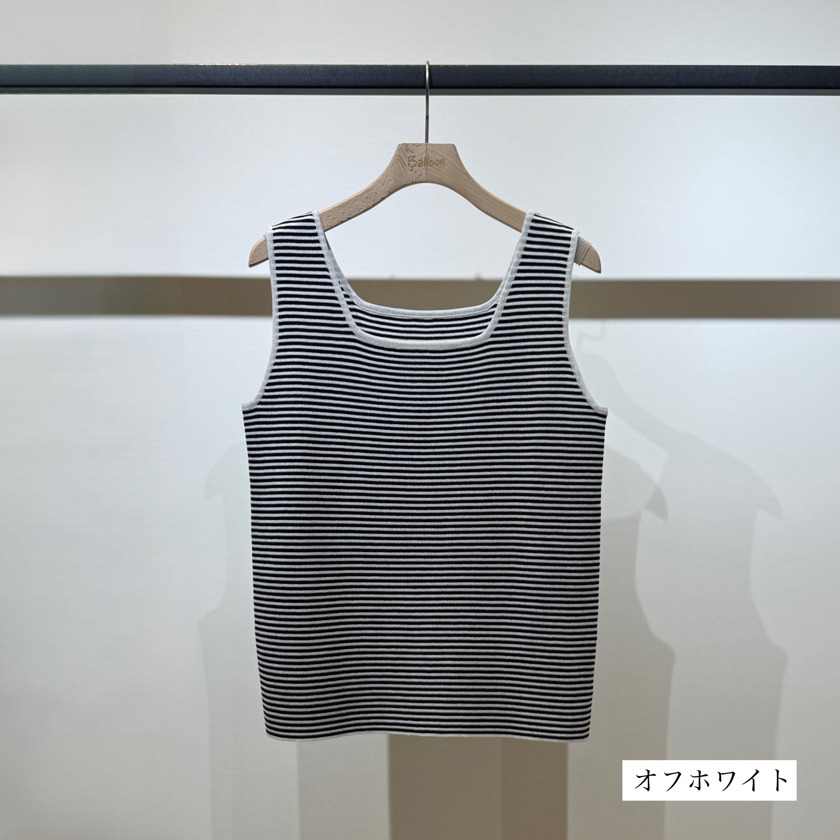 スクエアネックが女性らしいラインを引き出してくれるボーダータンクトップ。