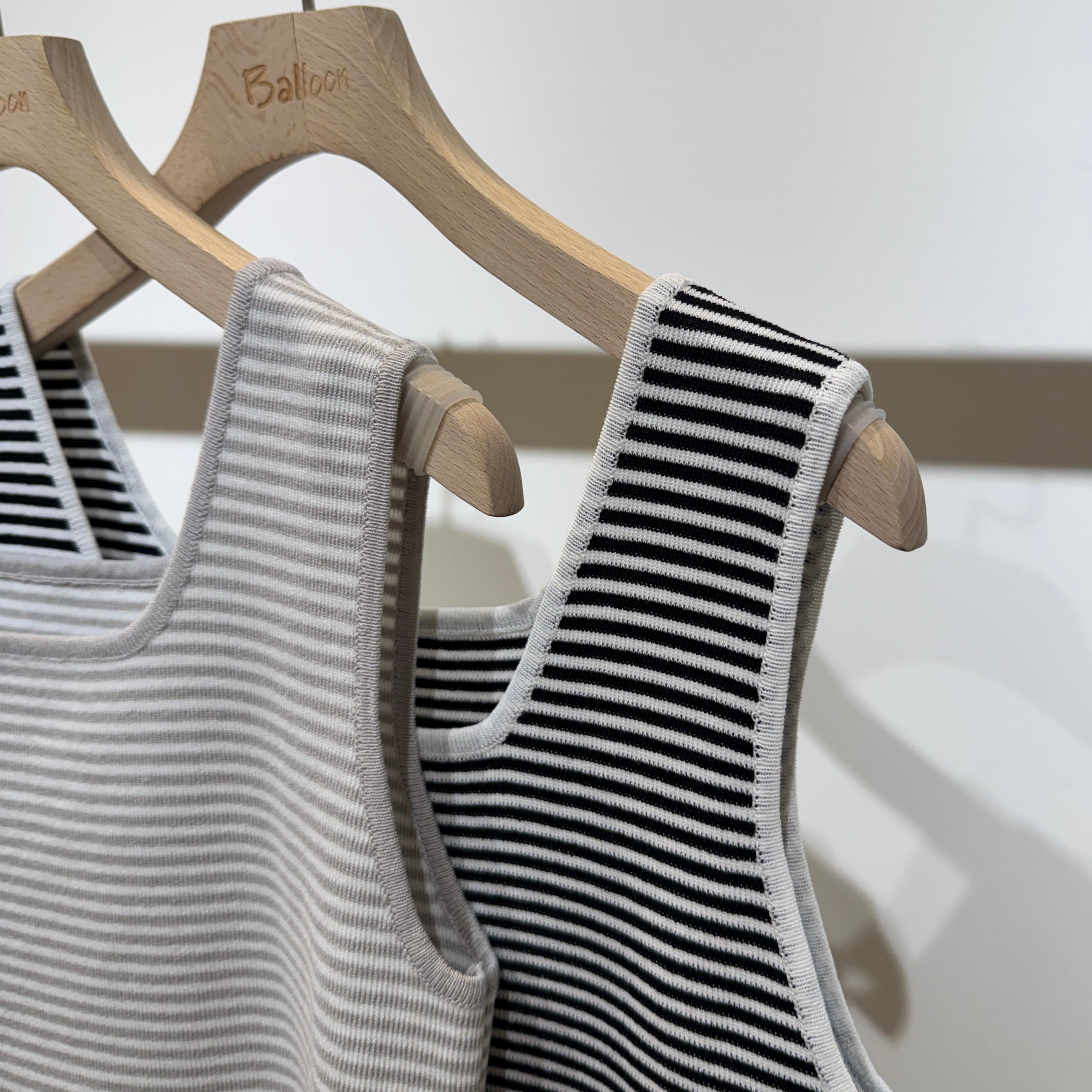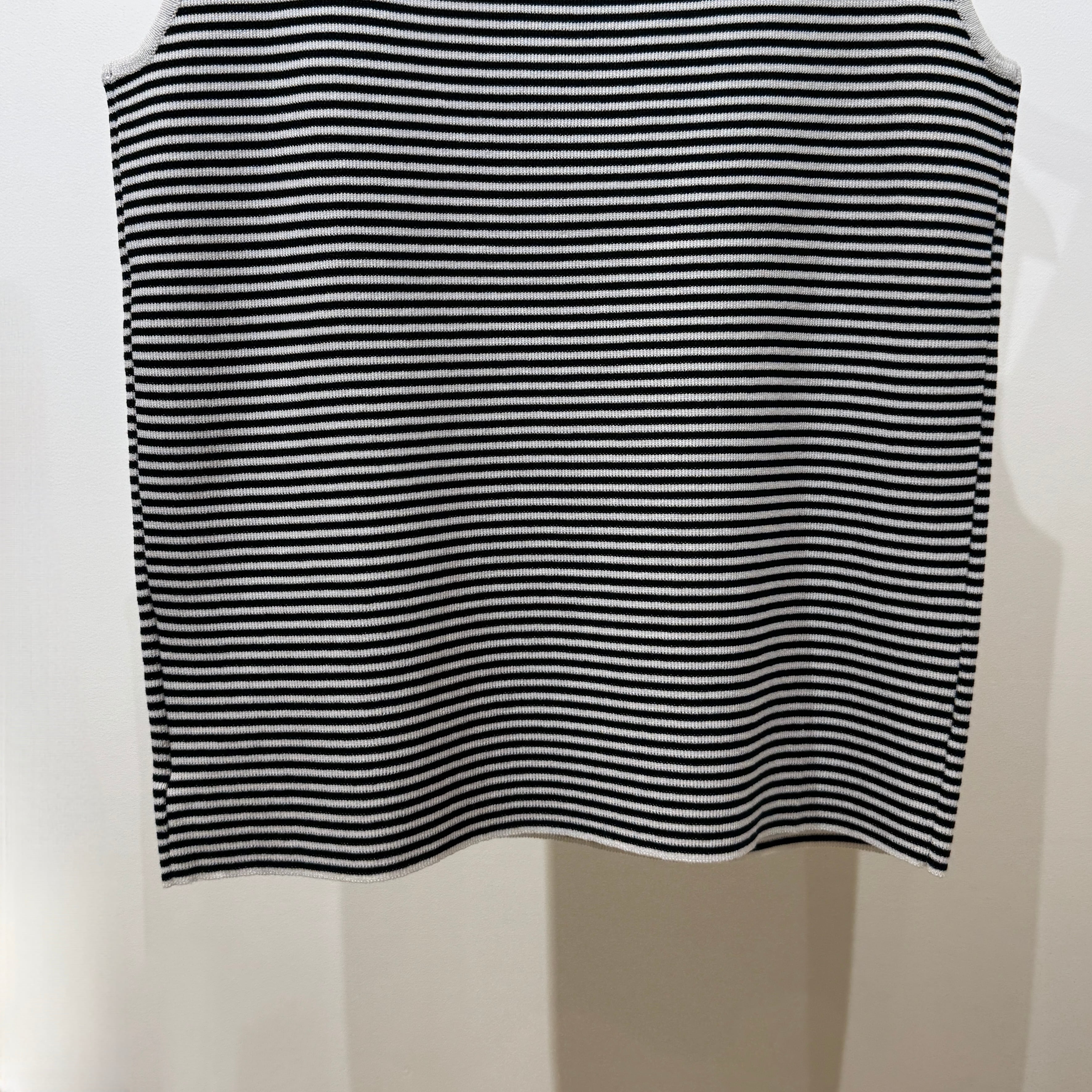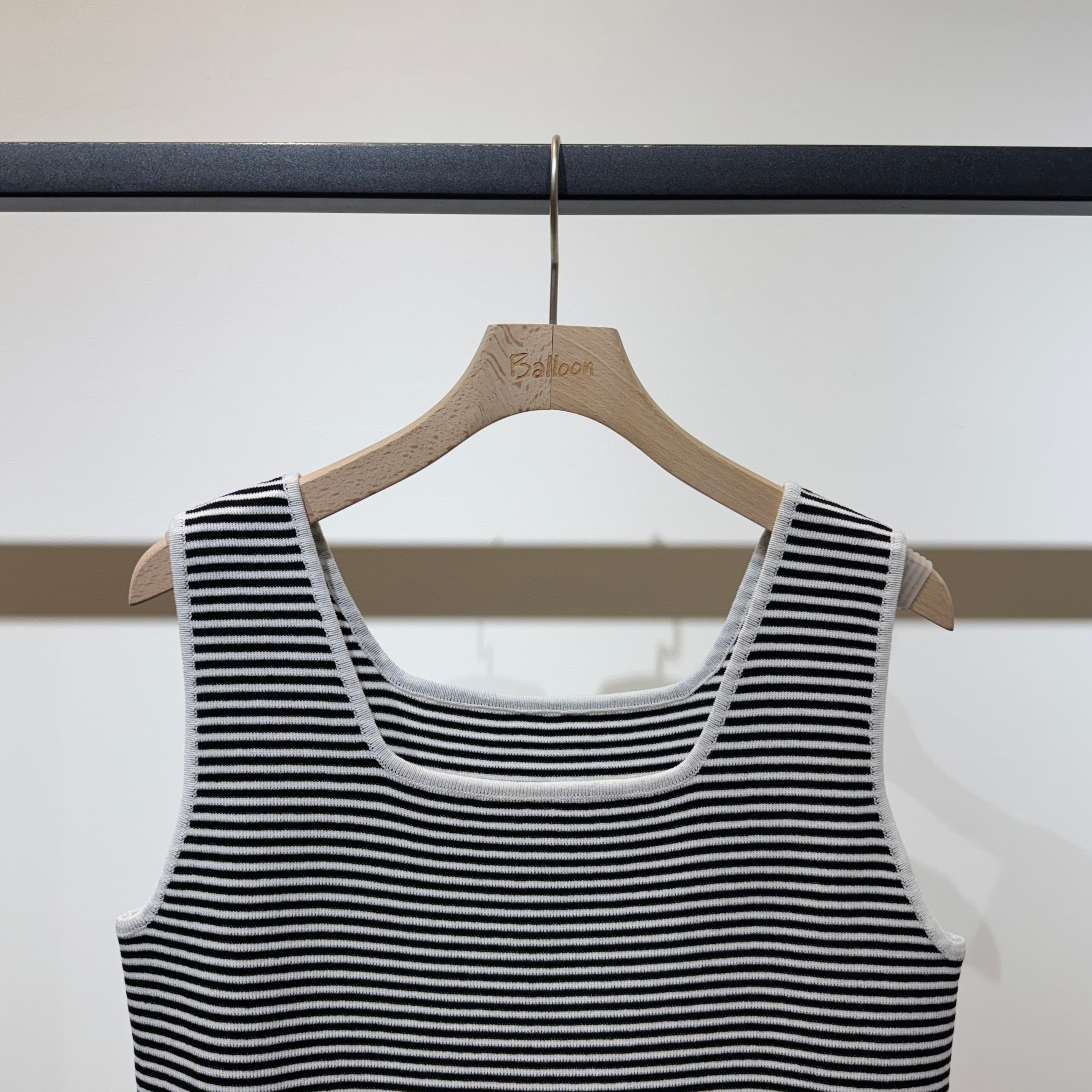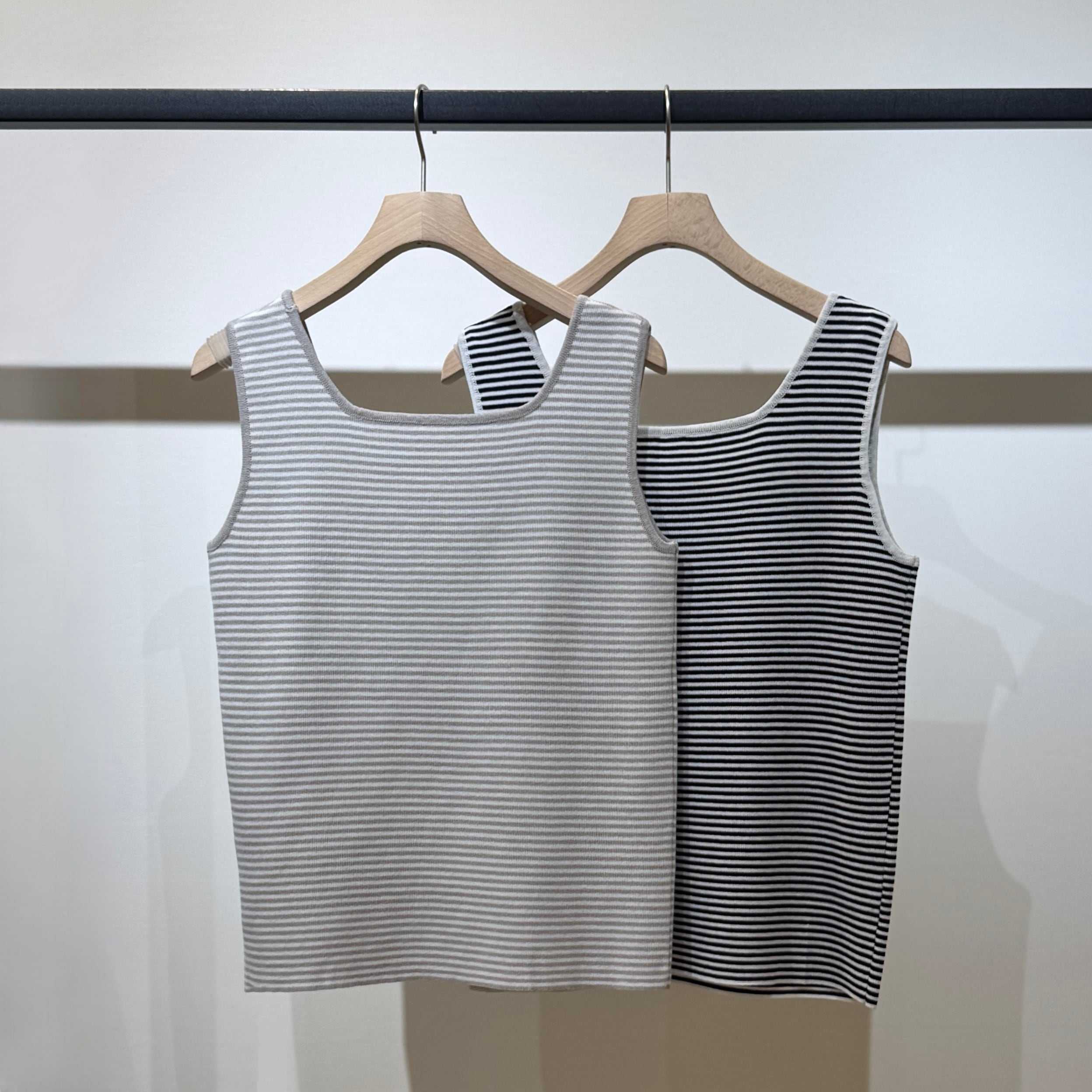 スクエアネックが女性らしいラインを引き出してくれるボーダータンクトップ。