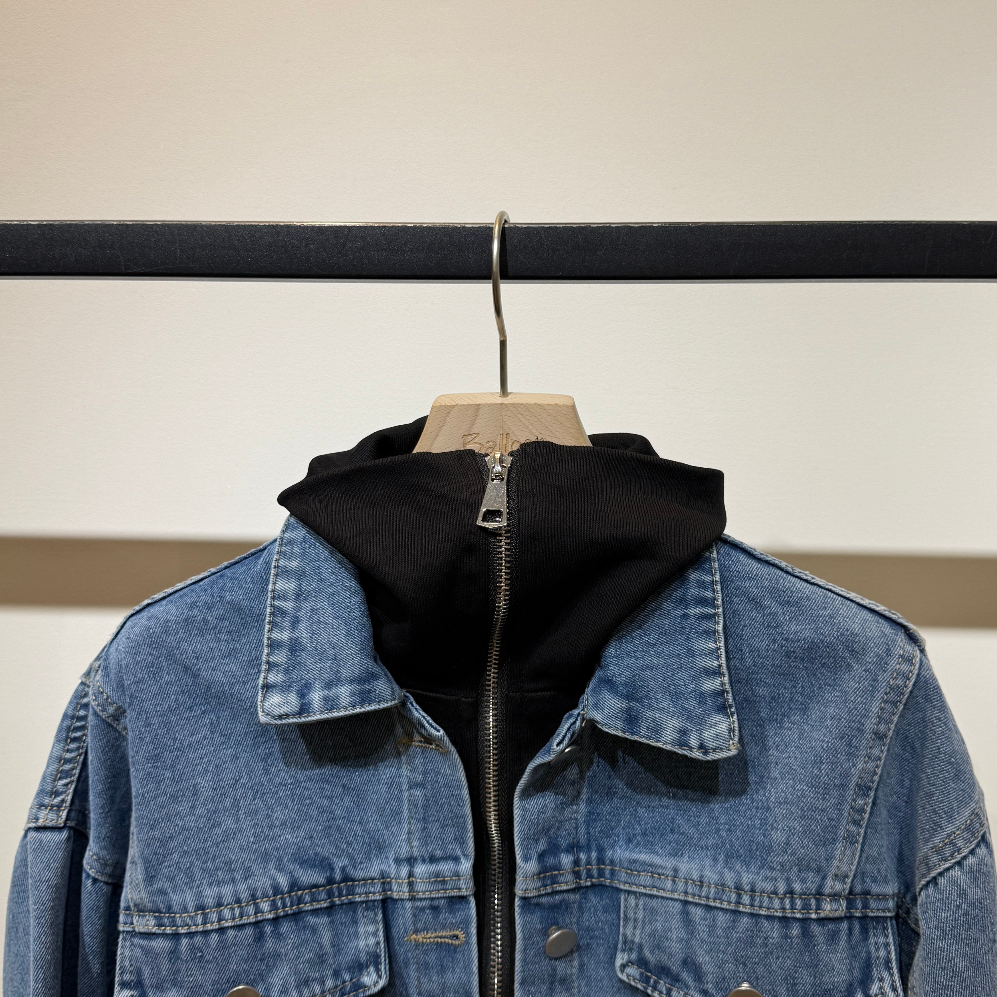 デニムとスウェット素材を組み合わせた、1枚でサマになるレイヤードブルゾン。