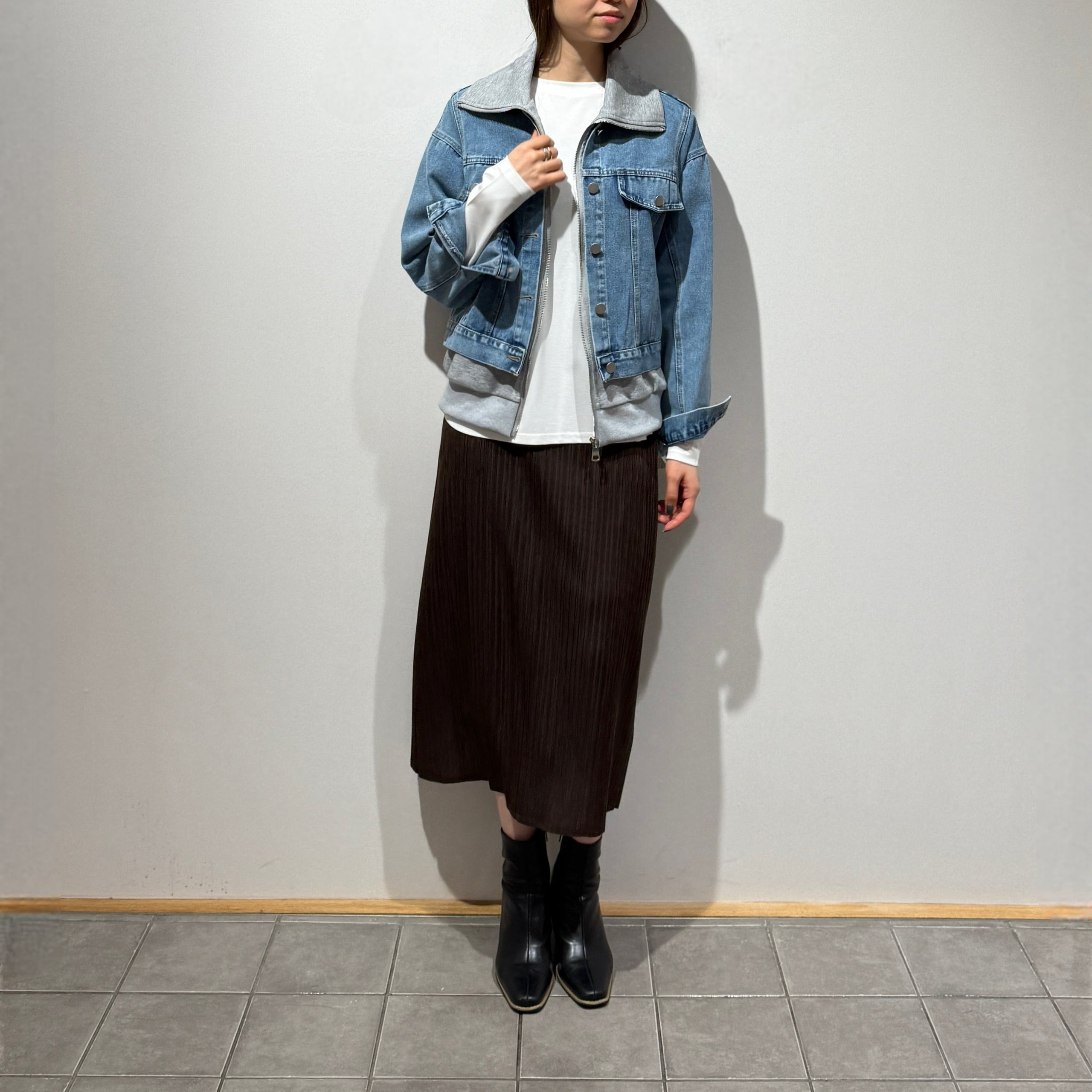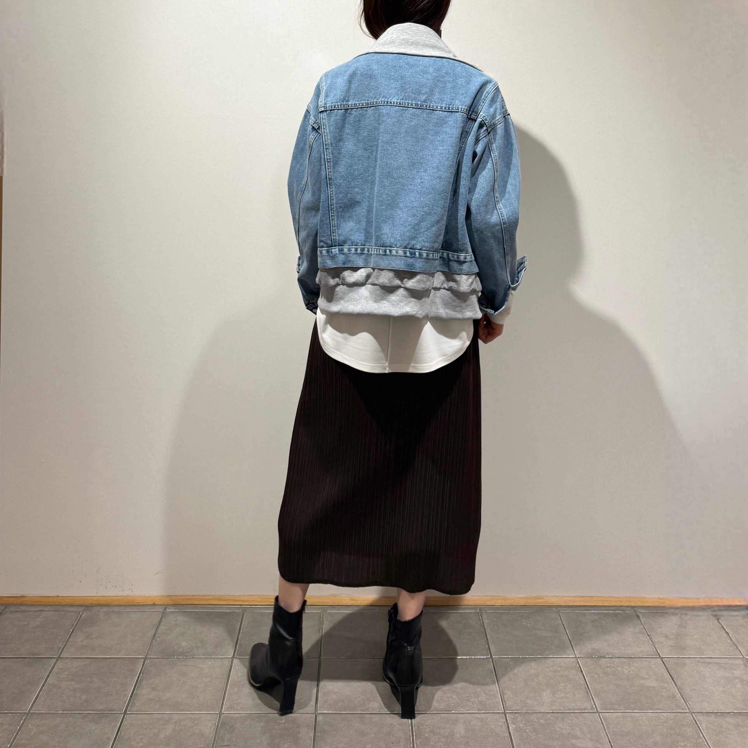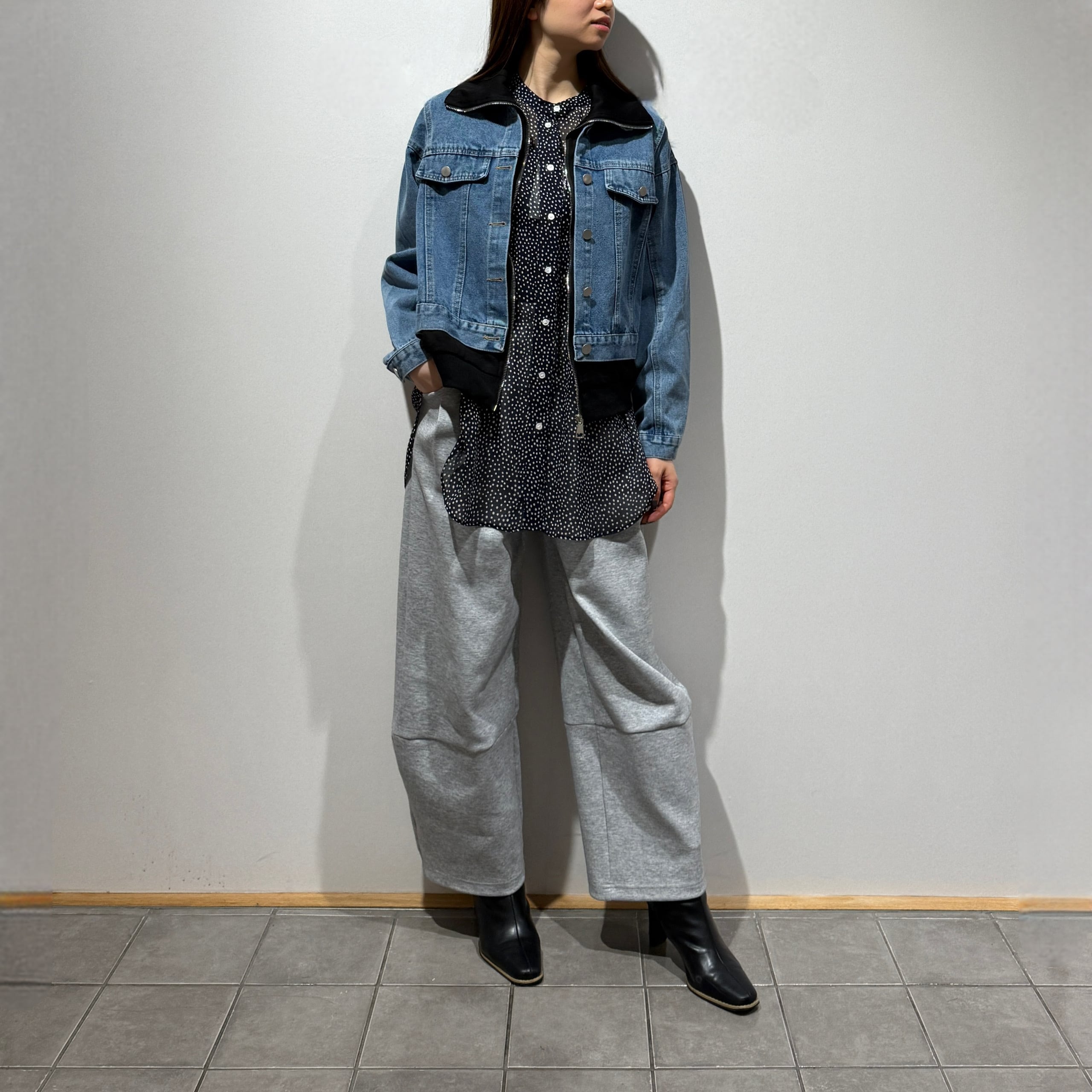 程よく厚みのあるデニムに、柔らかくカジュアルな異素材を組み合わせた着心地の良さが魅力です。