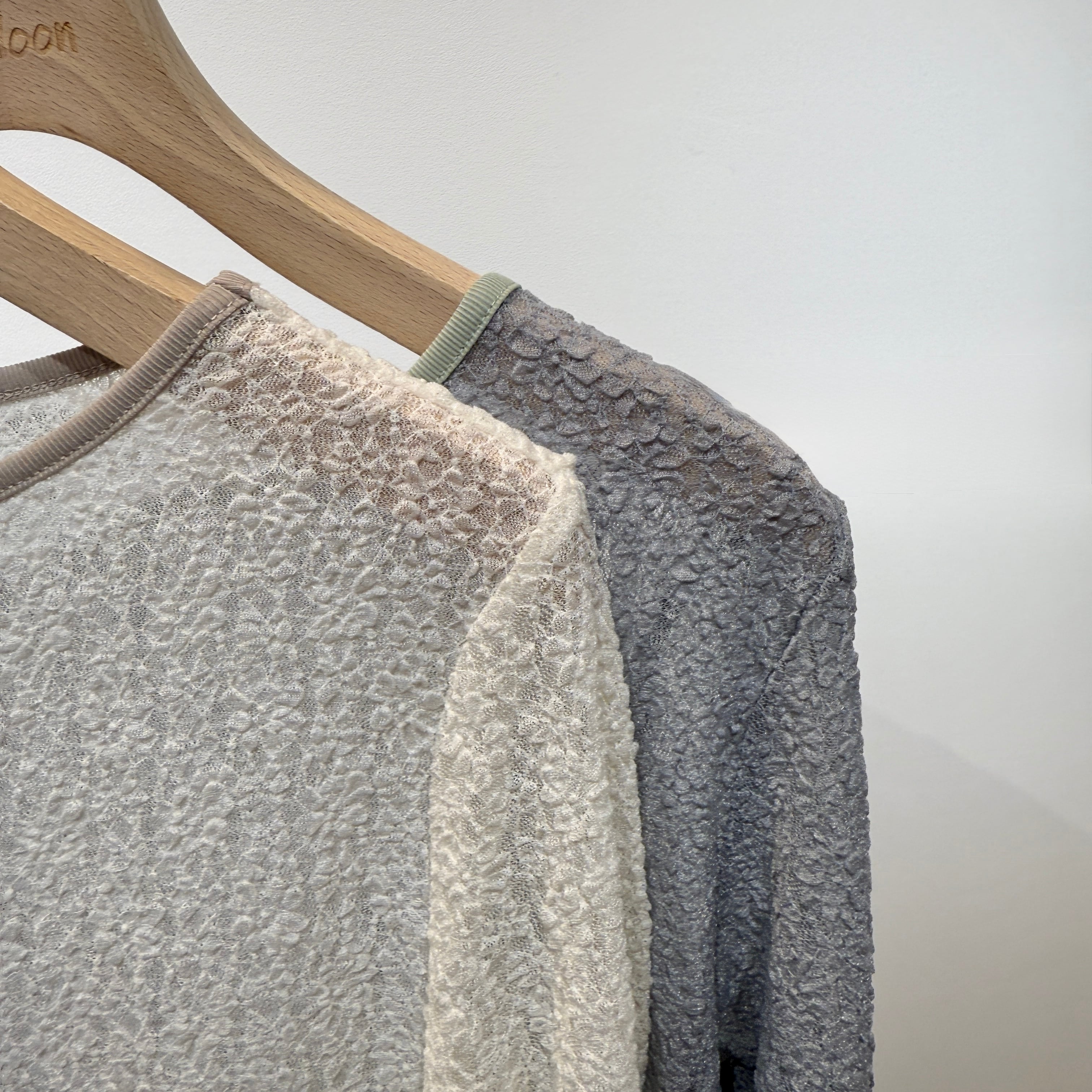 柔らかく伸びの良いストレッチレース素材で、軽やかな透け感と快適な着心地を両立。