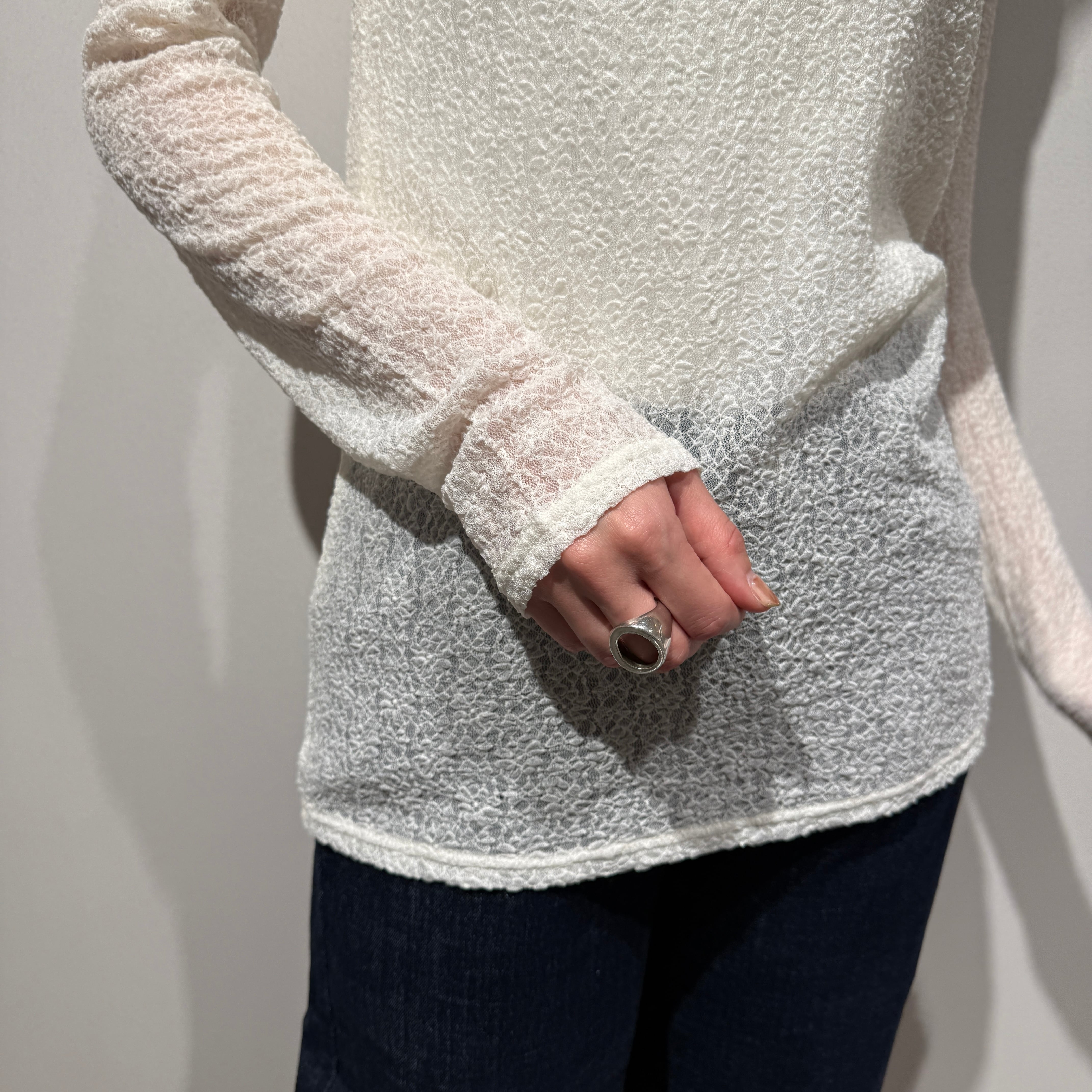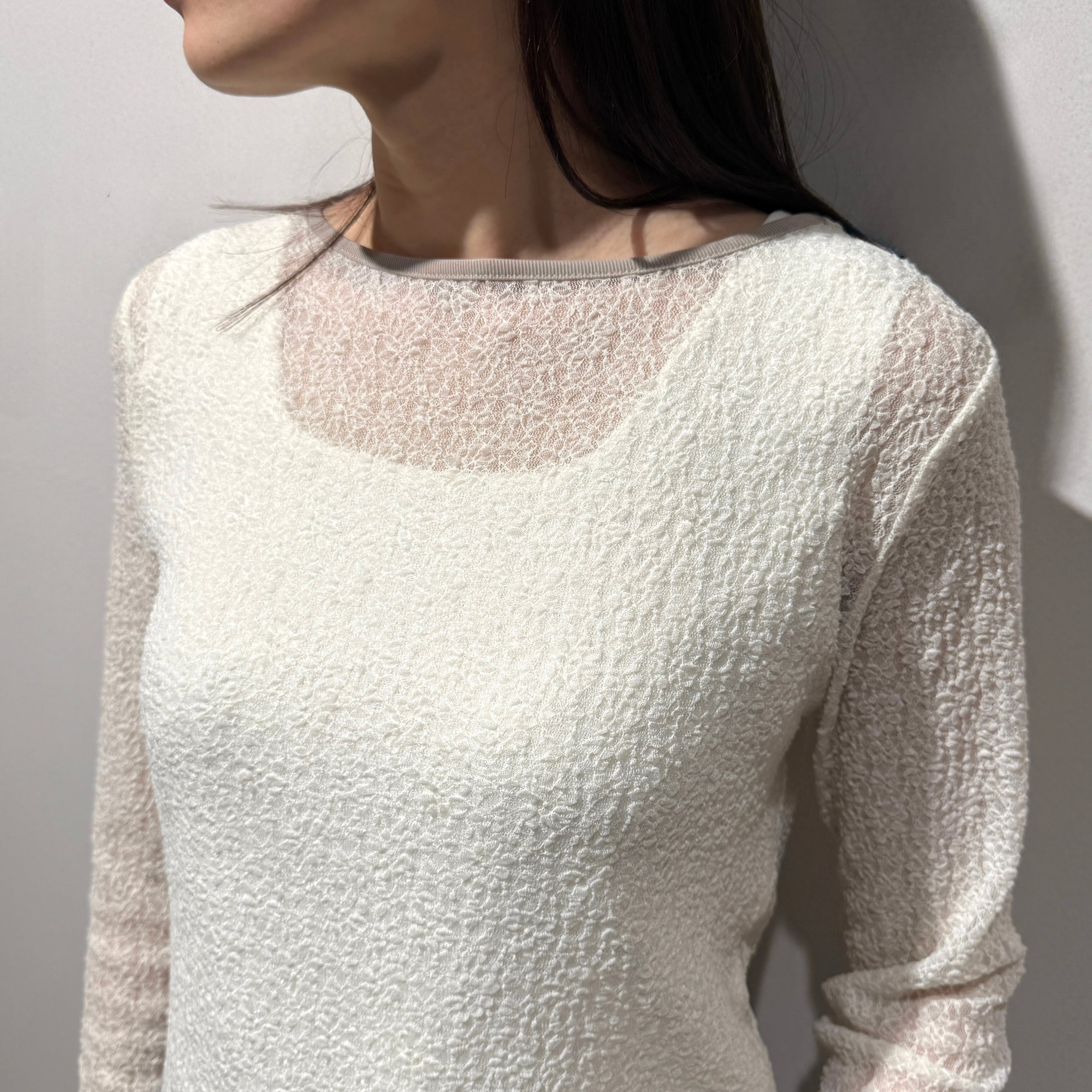 繊細な小花柄が上品に映える、ストレッチレースのシアーカットソー。