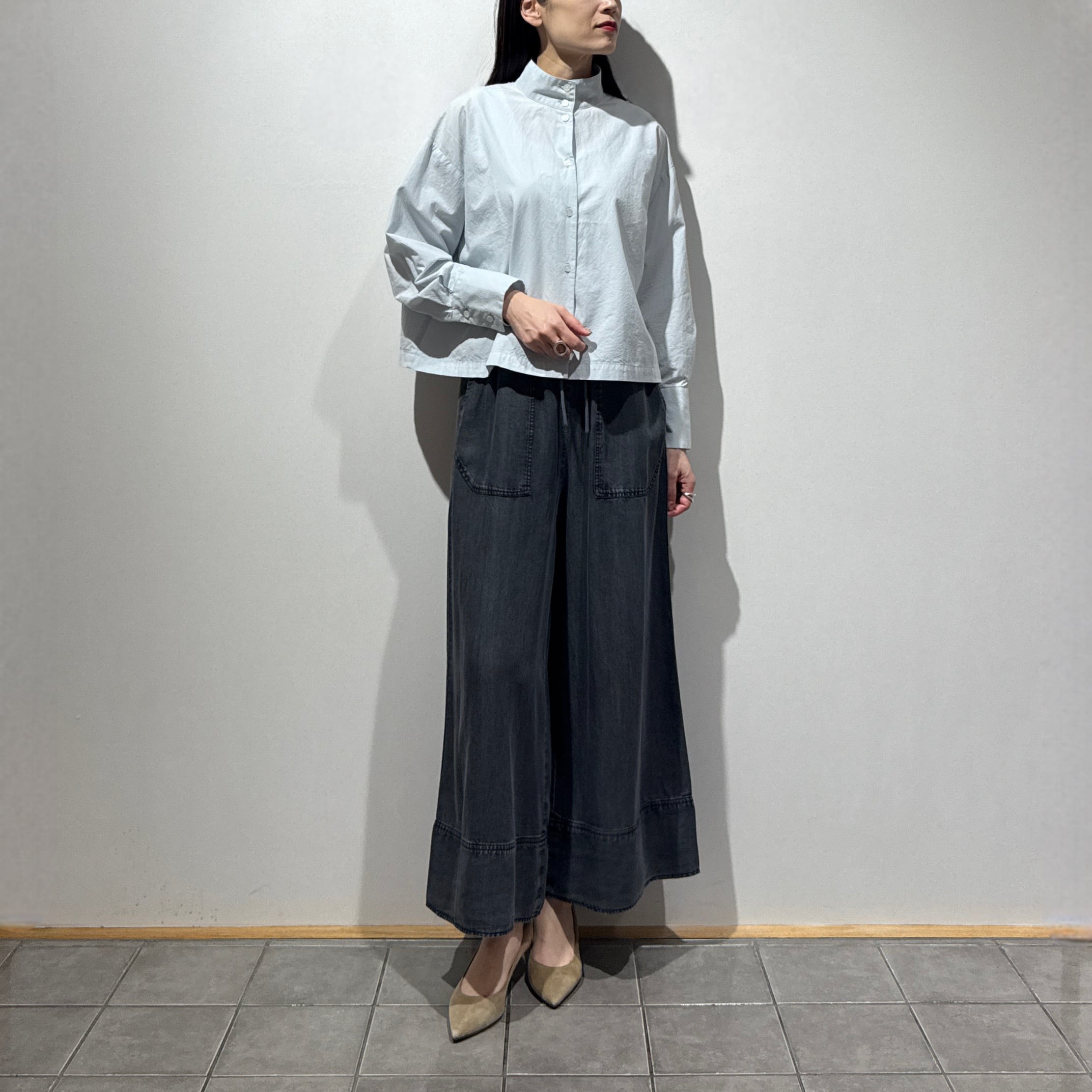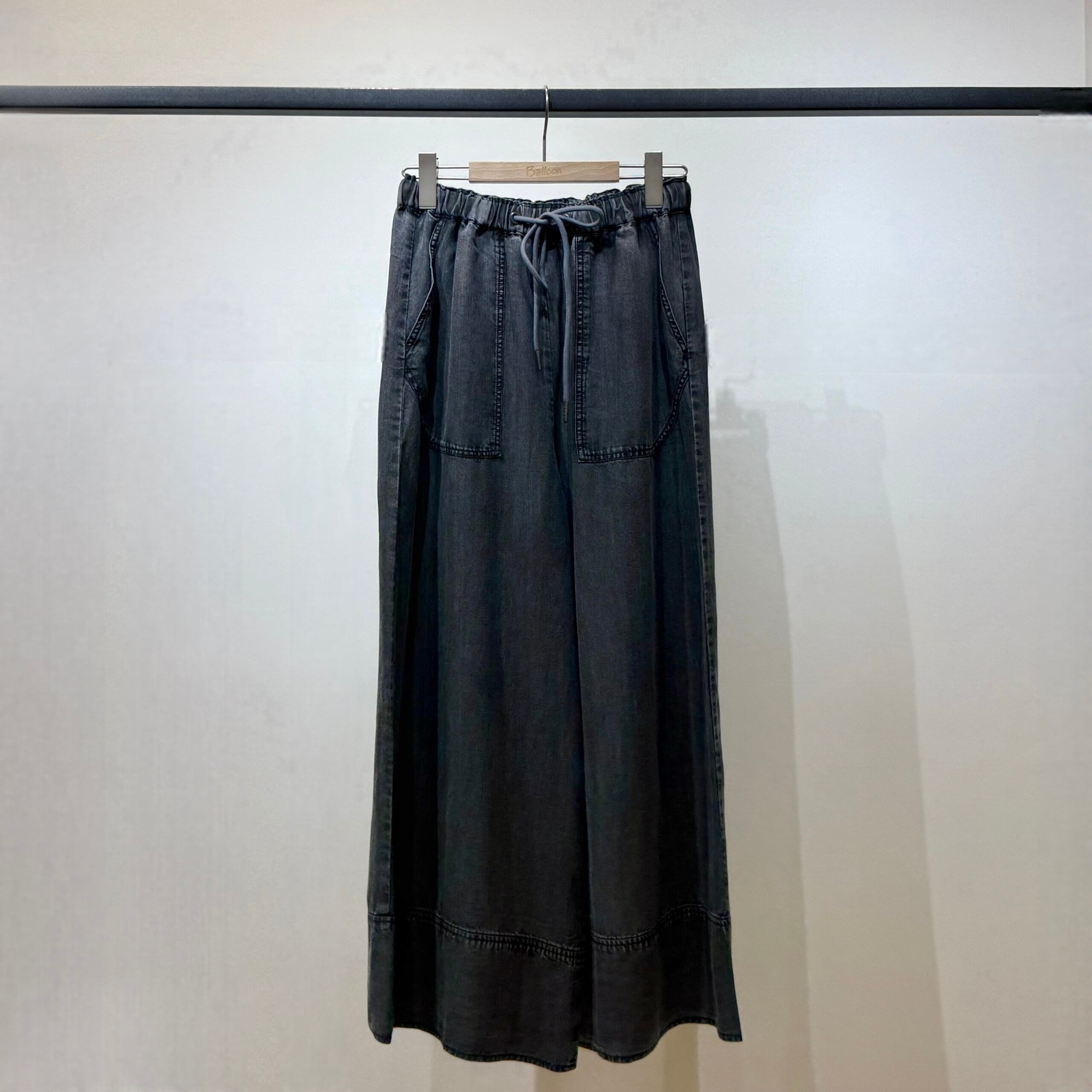 動くたびに自然なドレープが生まれるフレアラインで、リラックス感がありながらもきれい見えする一本です。