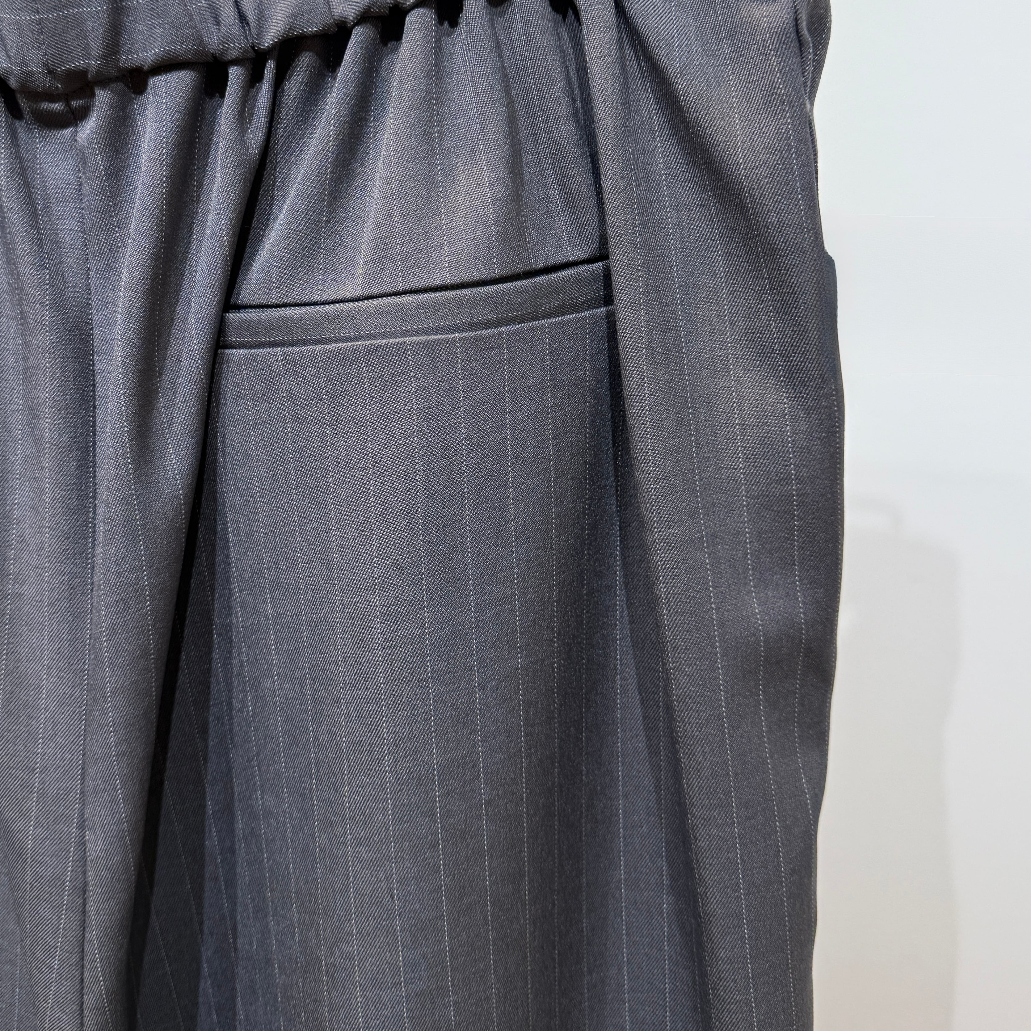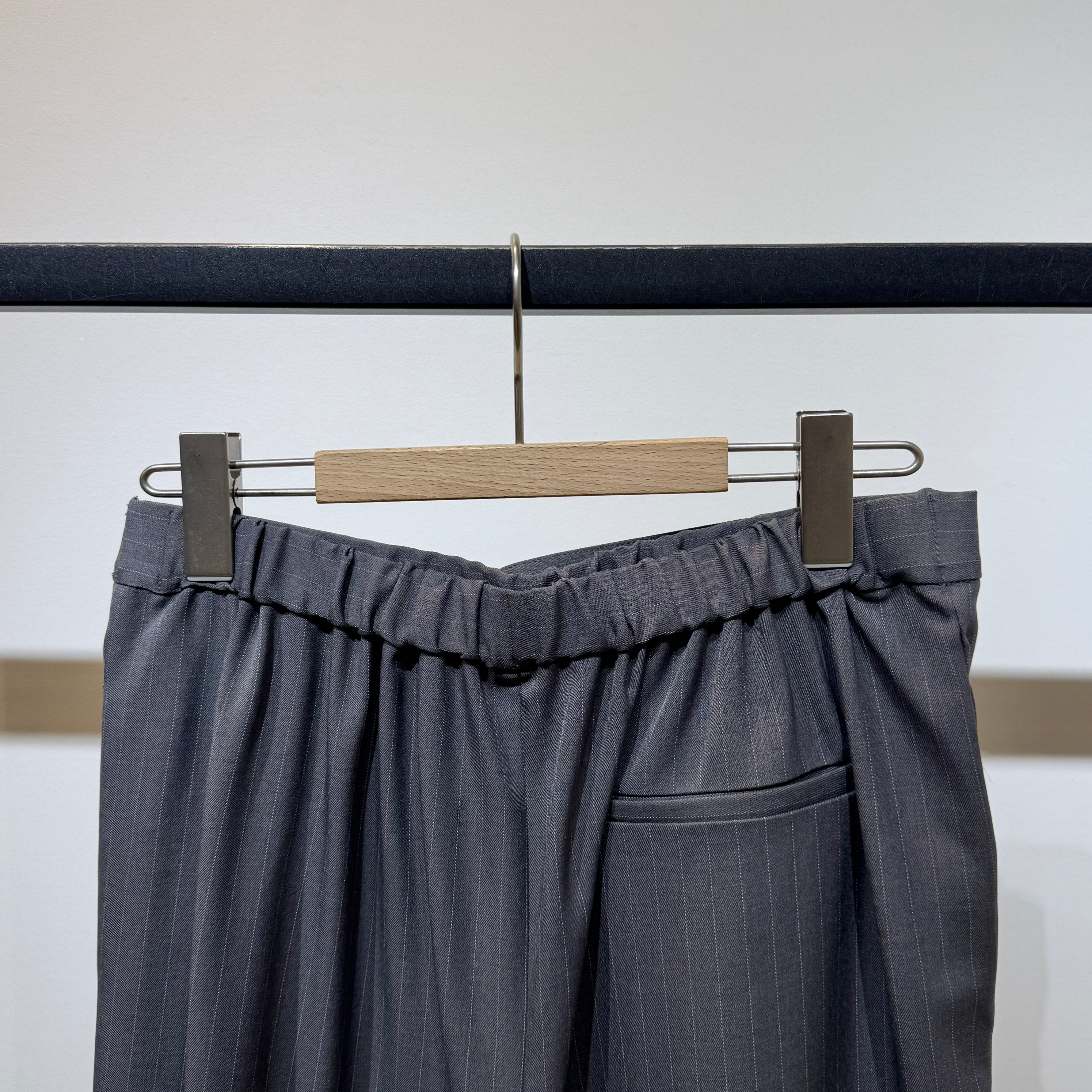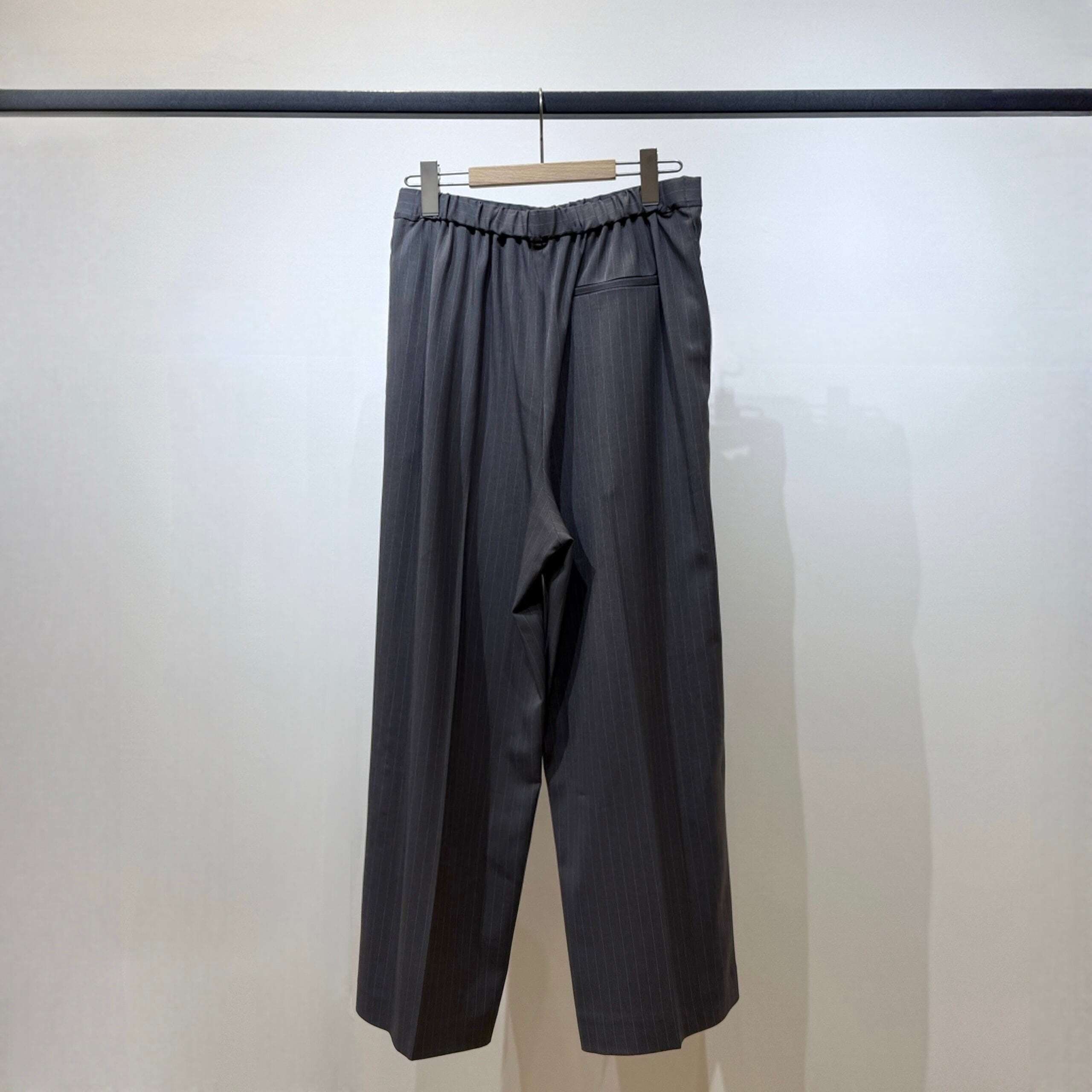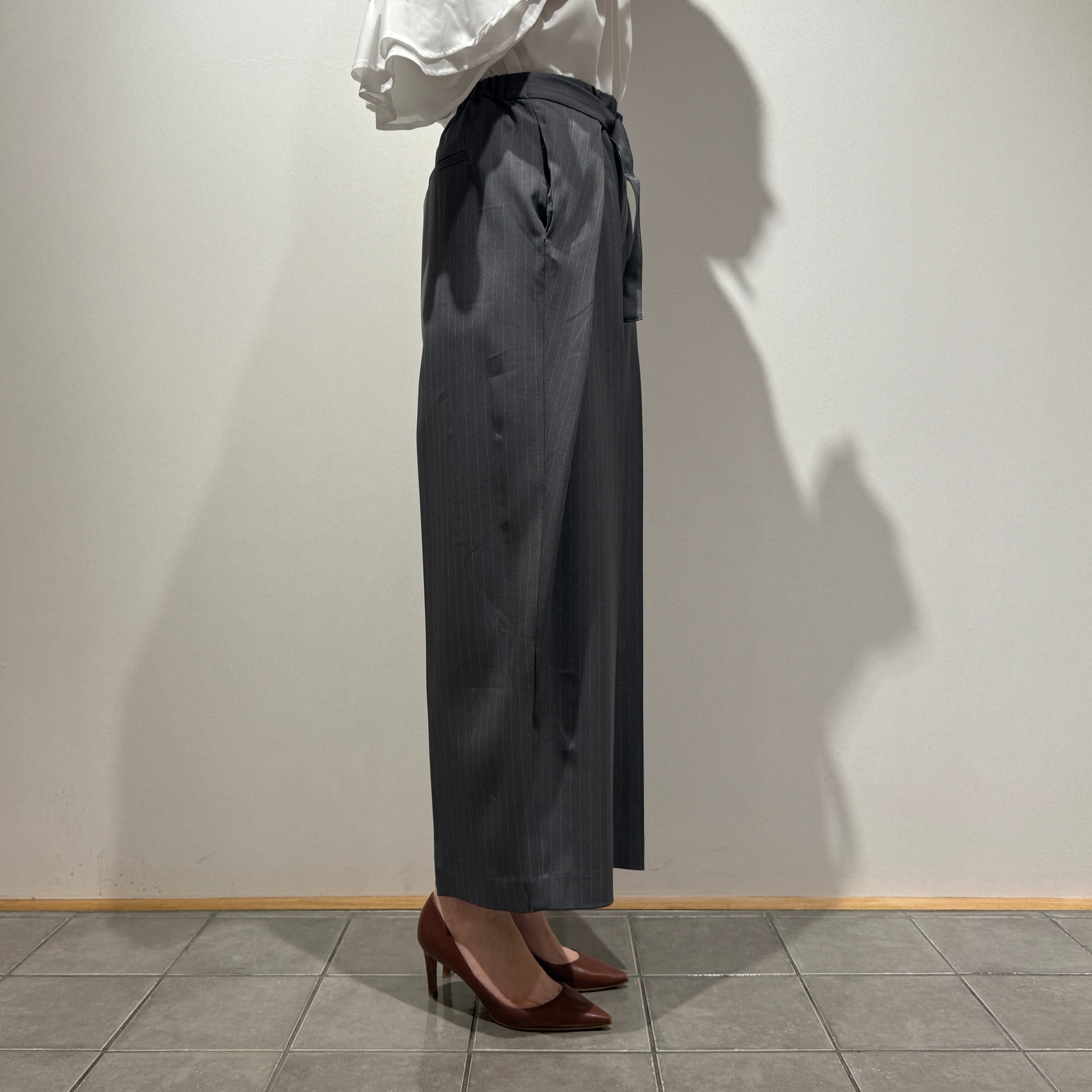 ラップ風デザインが目を引く、上品さと快適さを兼ね備えたタックパンツ。