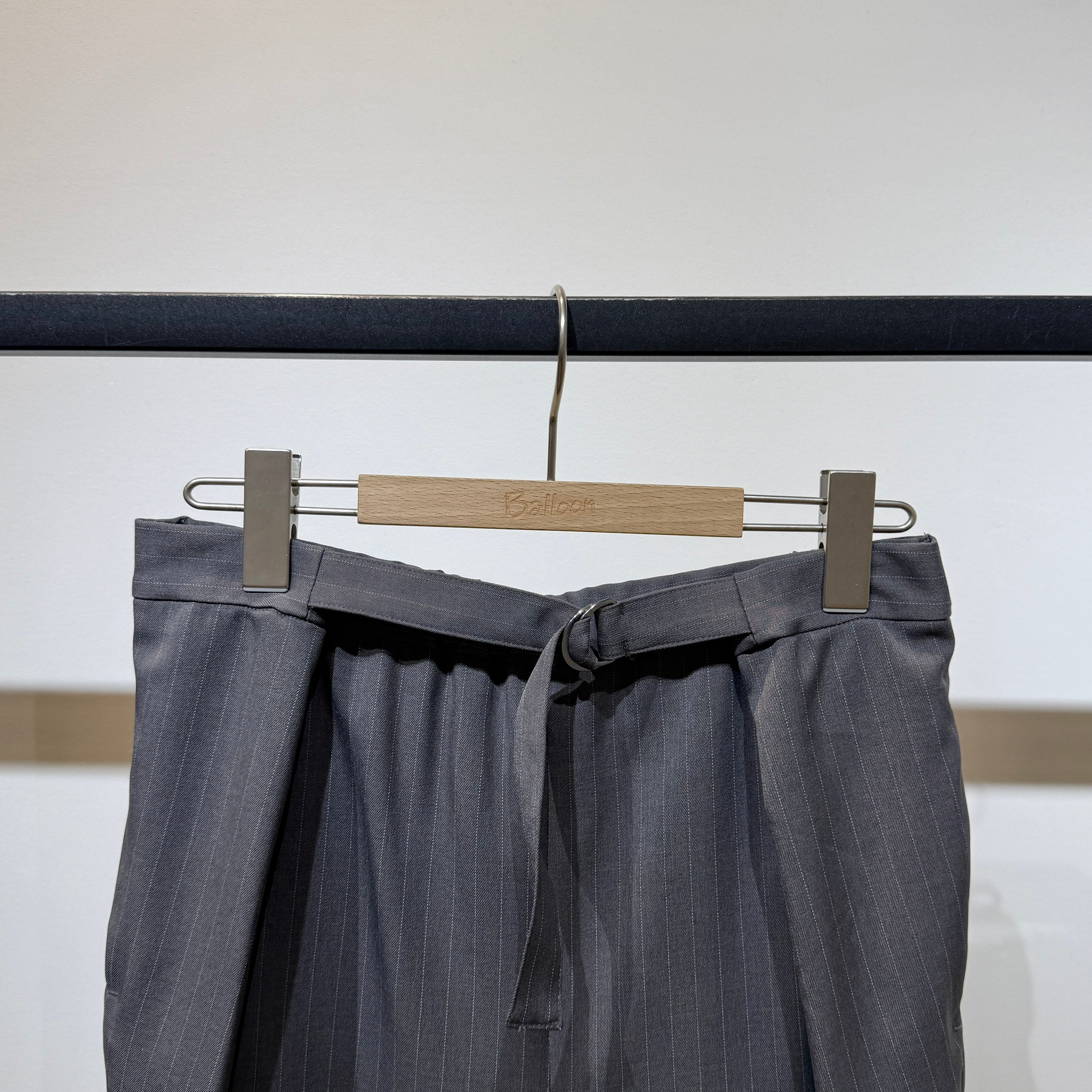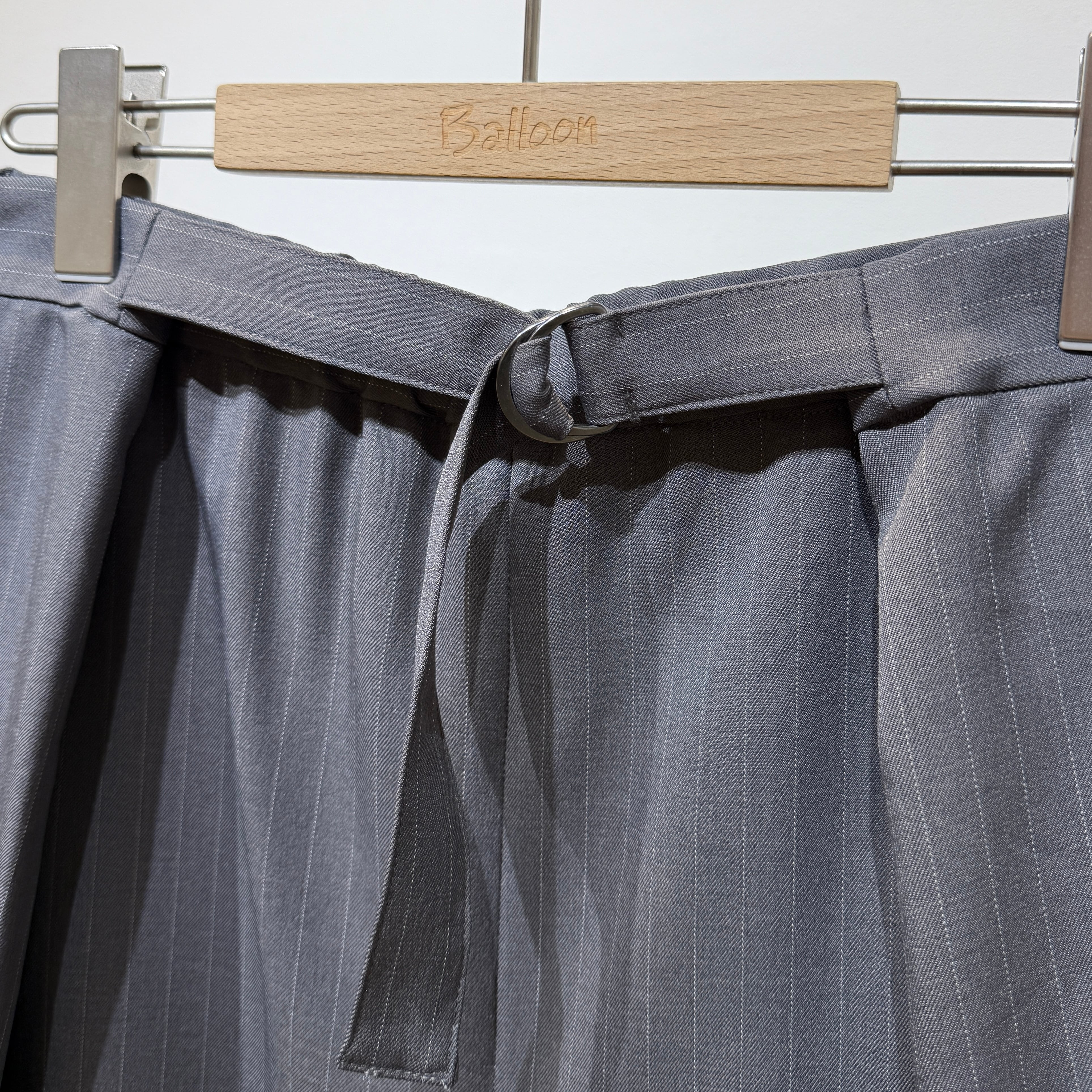 両サイドのラップ風仕様と立体的なタックが程よいボリュームを生み、Dカン付きベルトでフィット感の調整と体型カバーを叶えます。