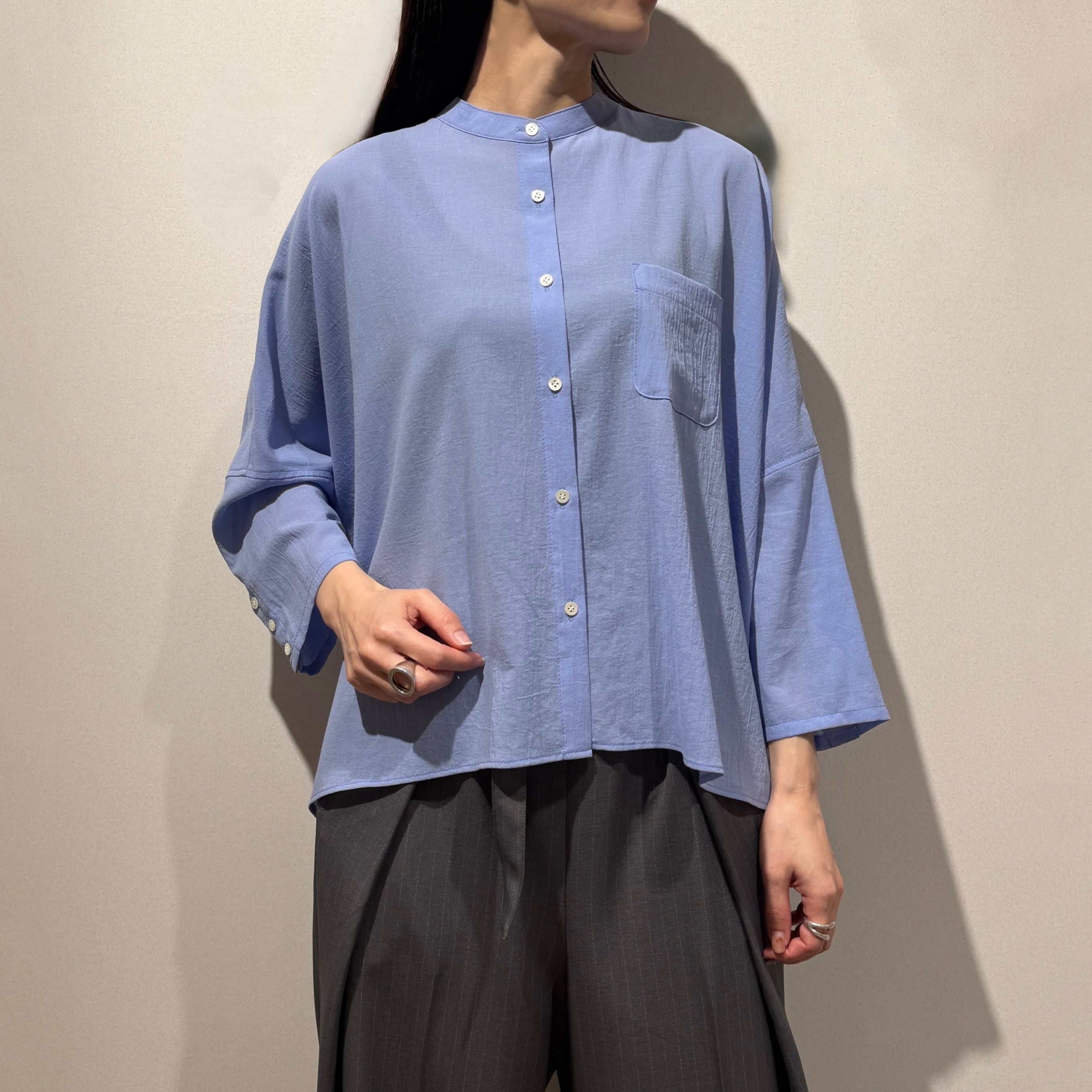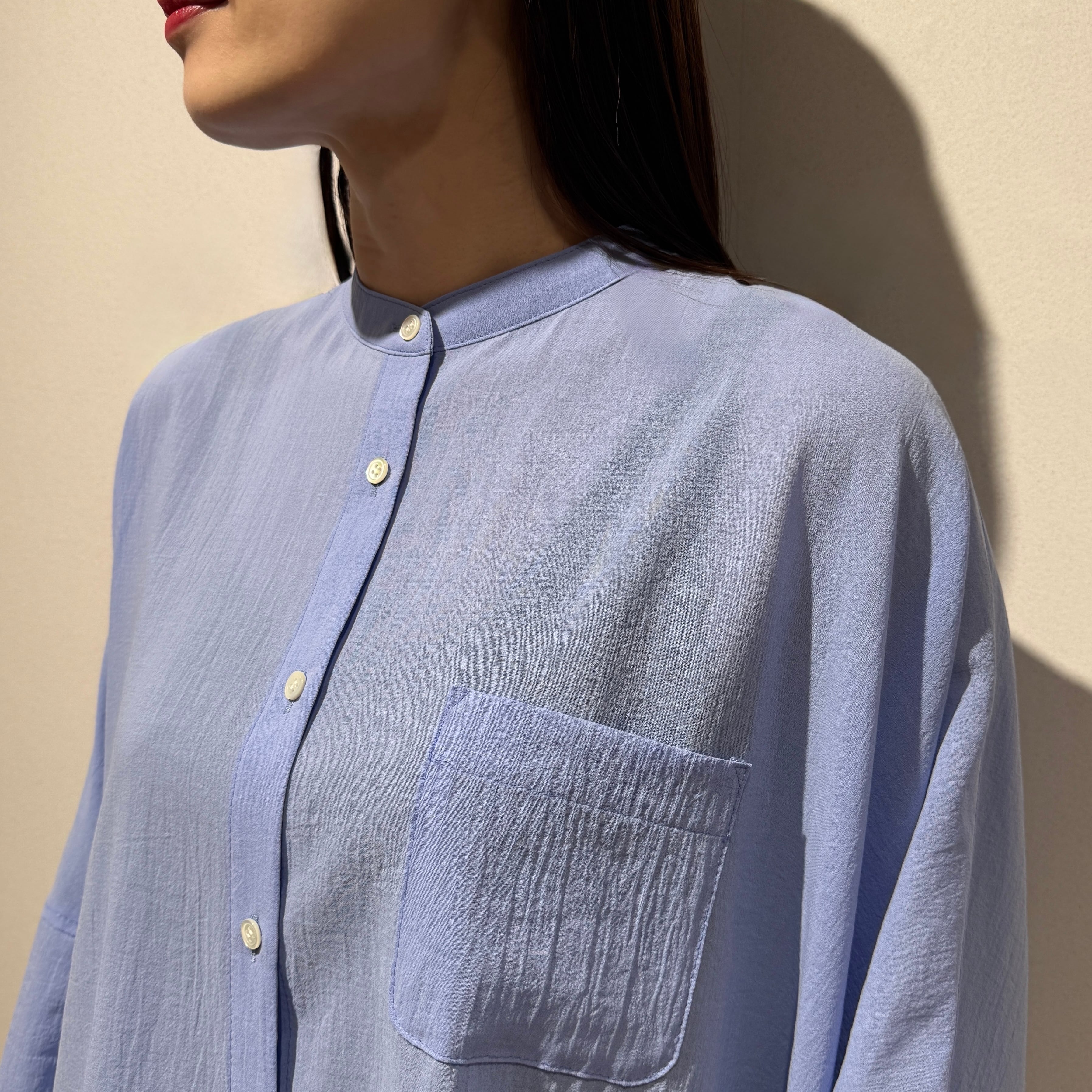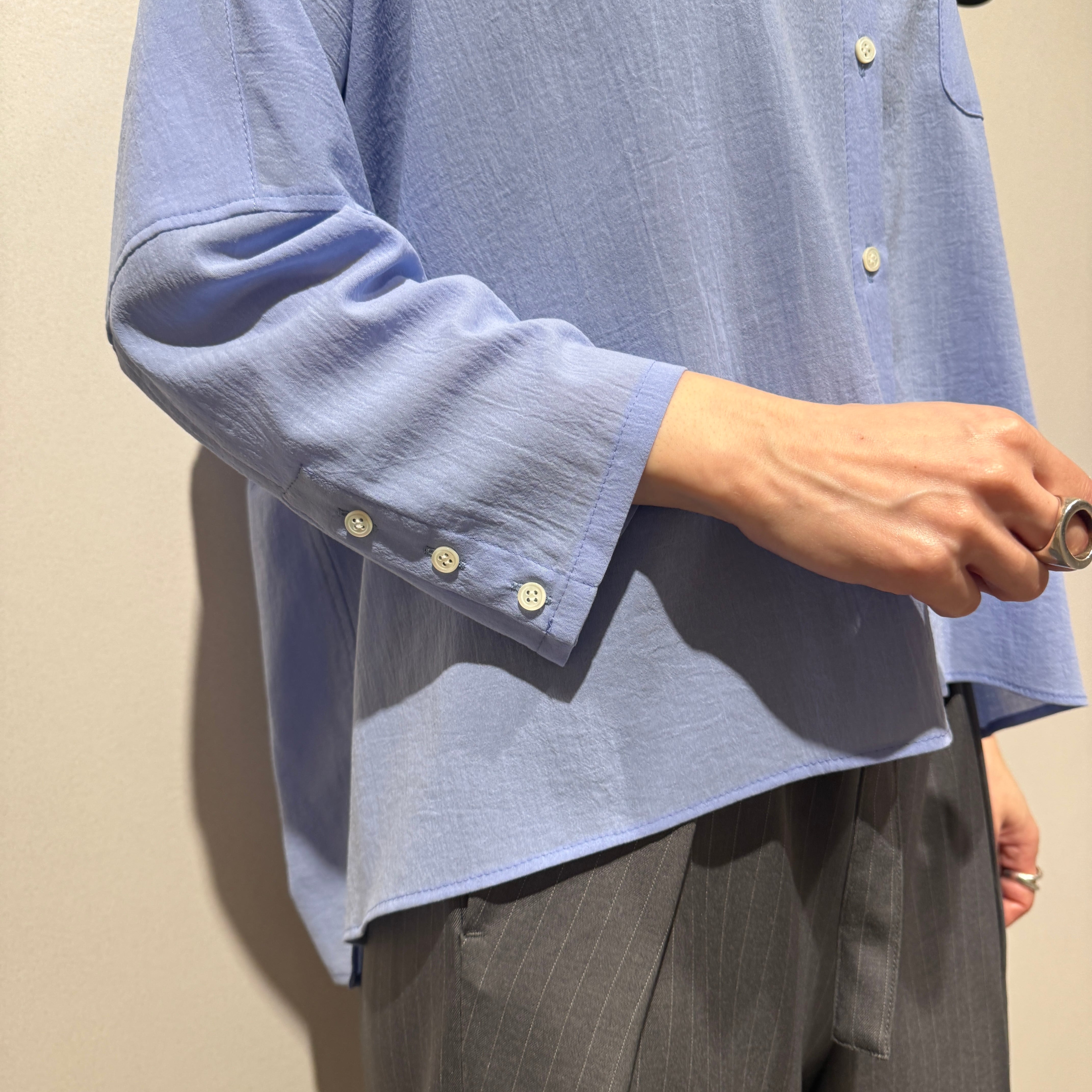 軽やかなボイル素材を使用したリラックス感のあるボイルドロップショルダーシャツ。