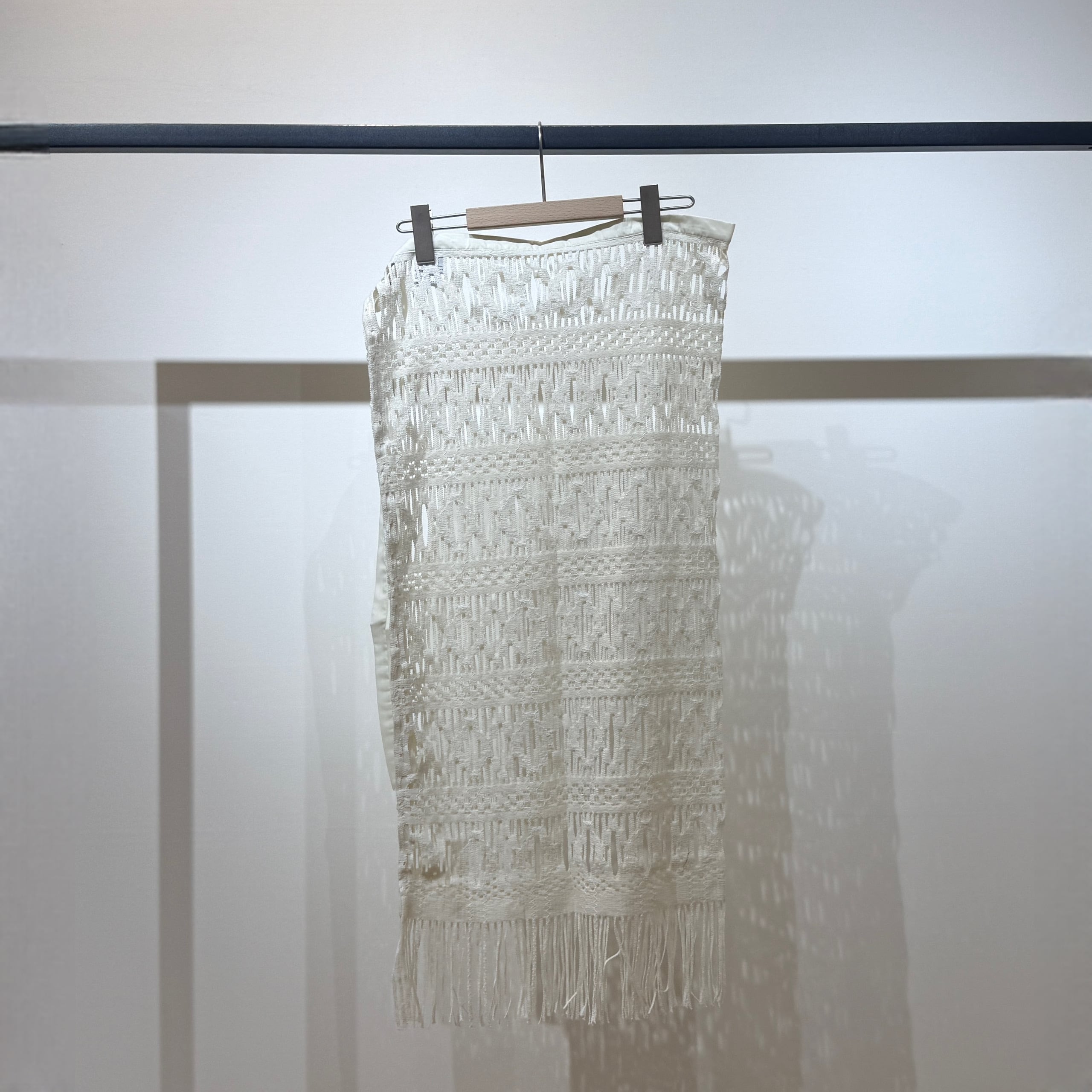 春夏にぴったりな繊細なレースを使用したレイヤードラップスカート。