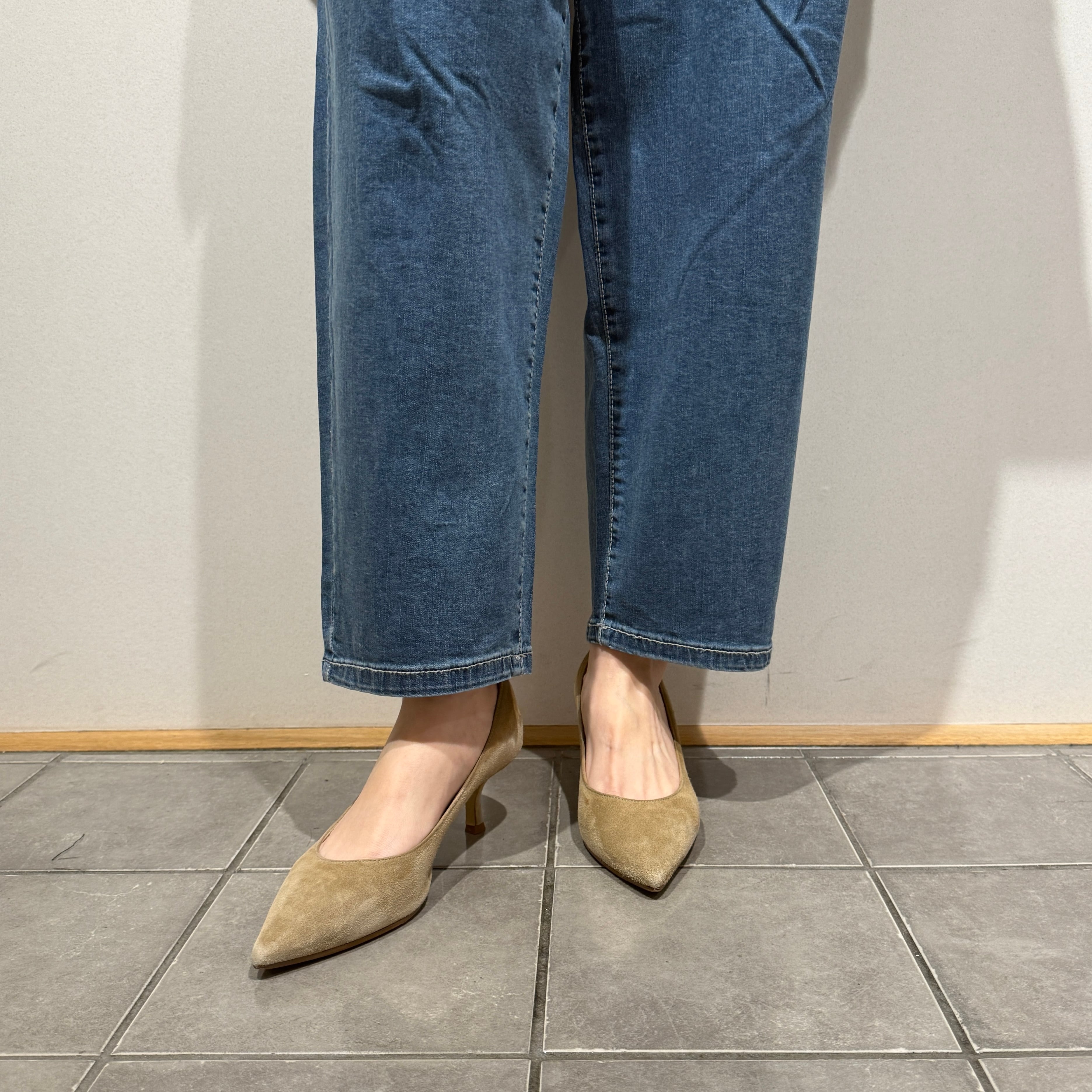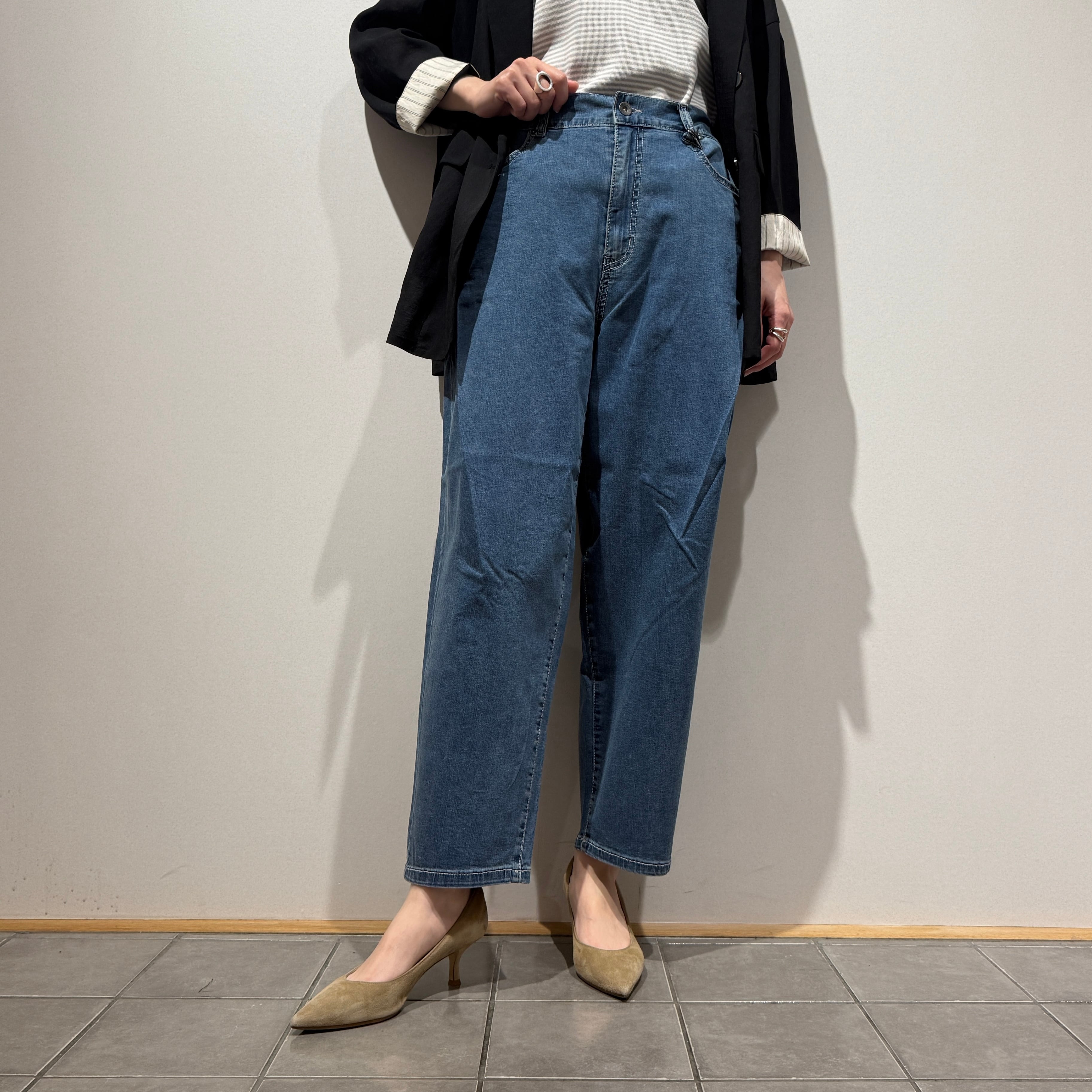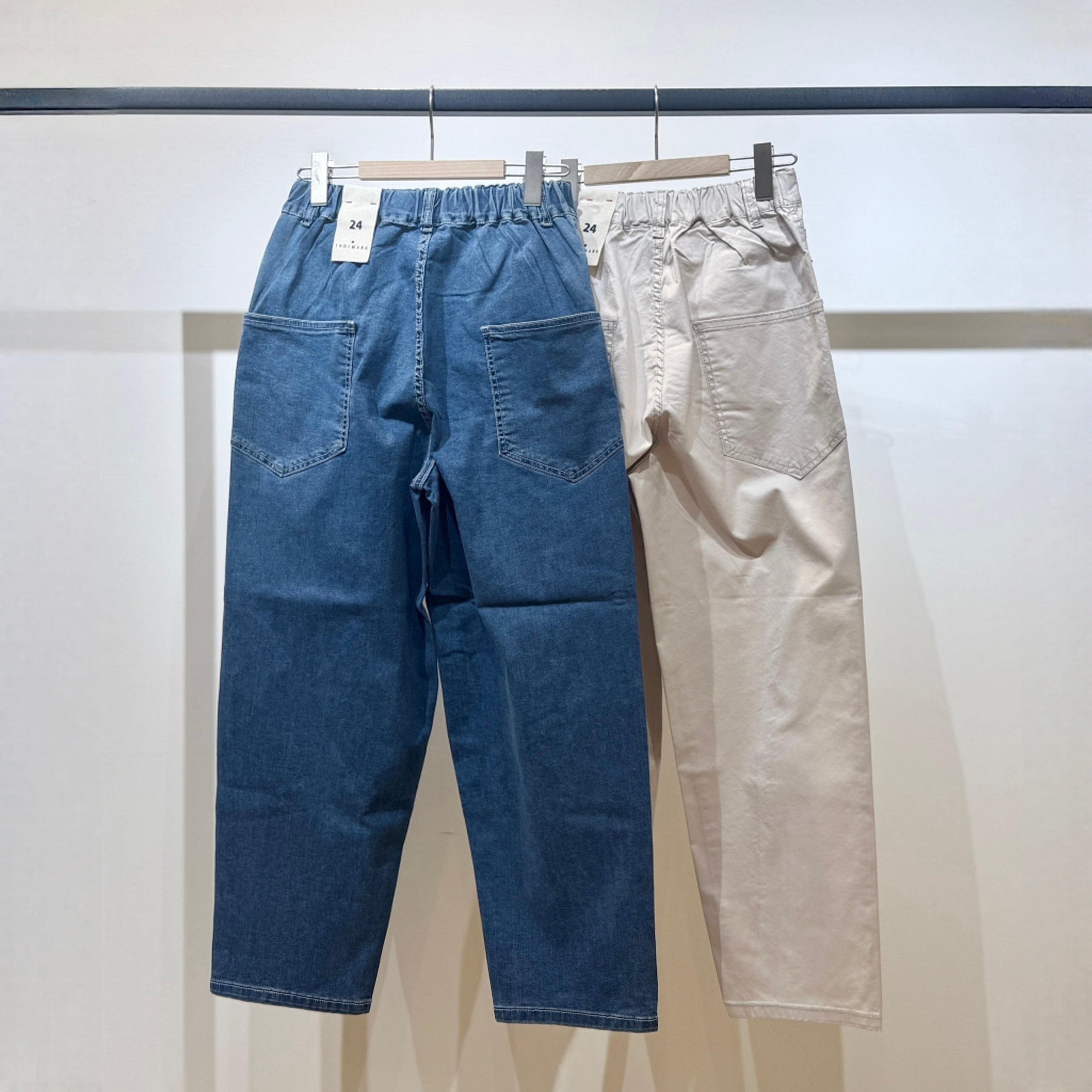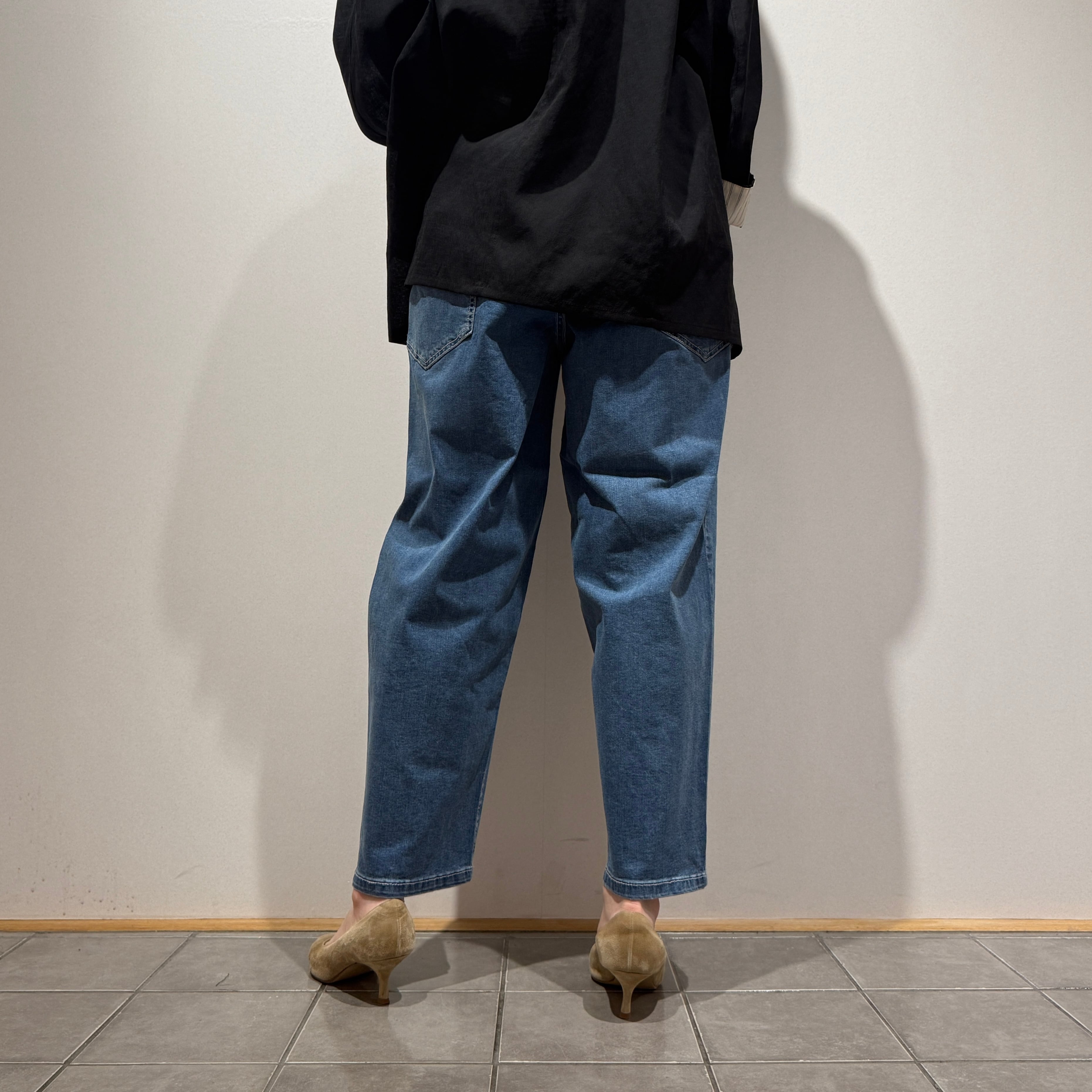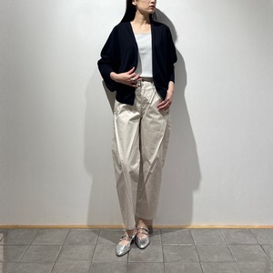 裾に向かってやや細くなったシルエットのコクーンパンツ。