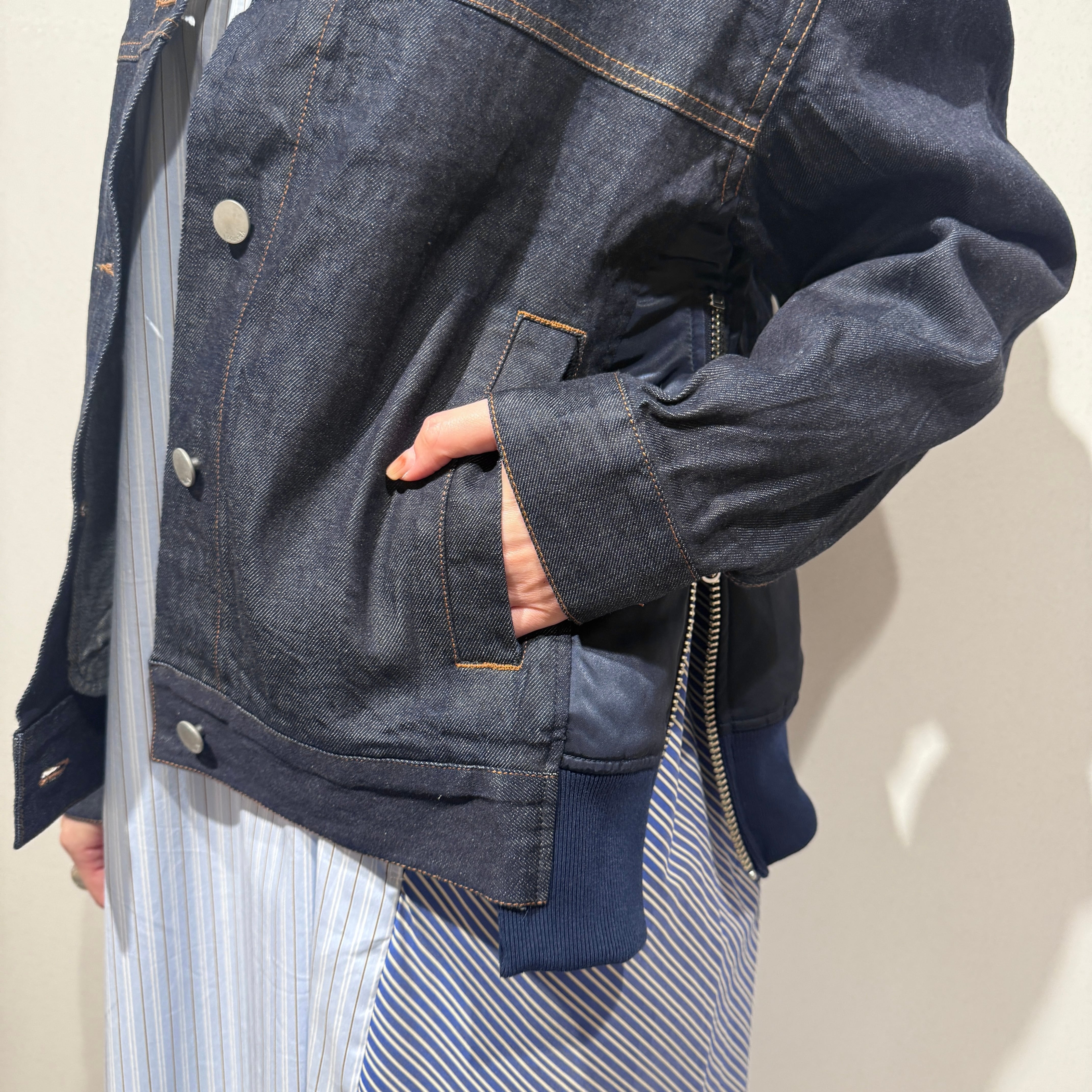 8ozデニム×ナイロンツイルドッキングJK