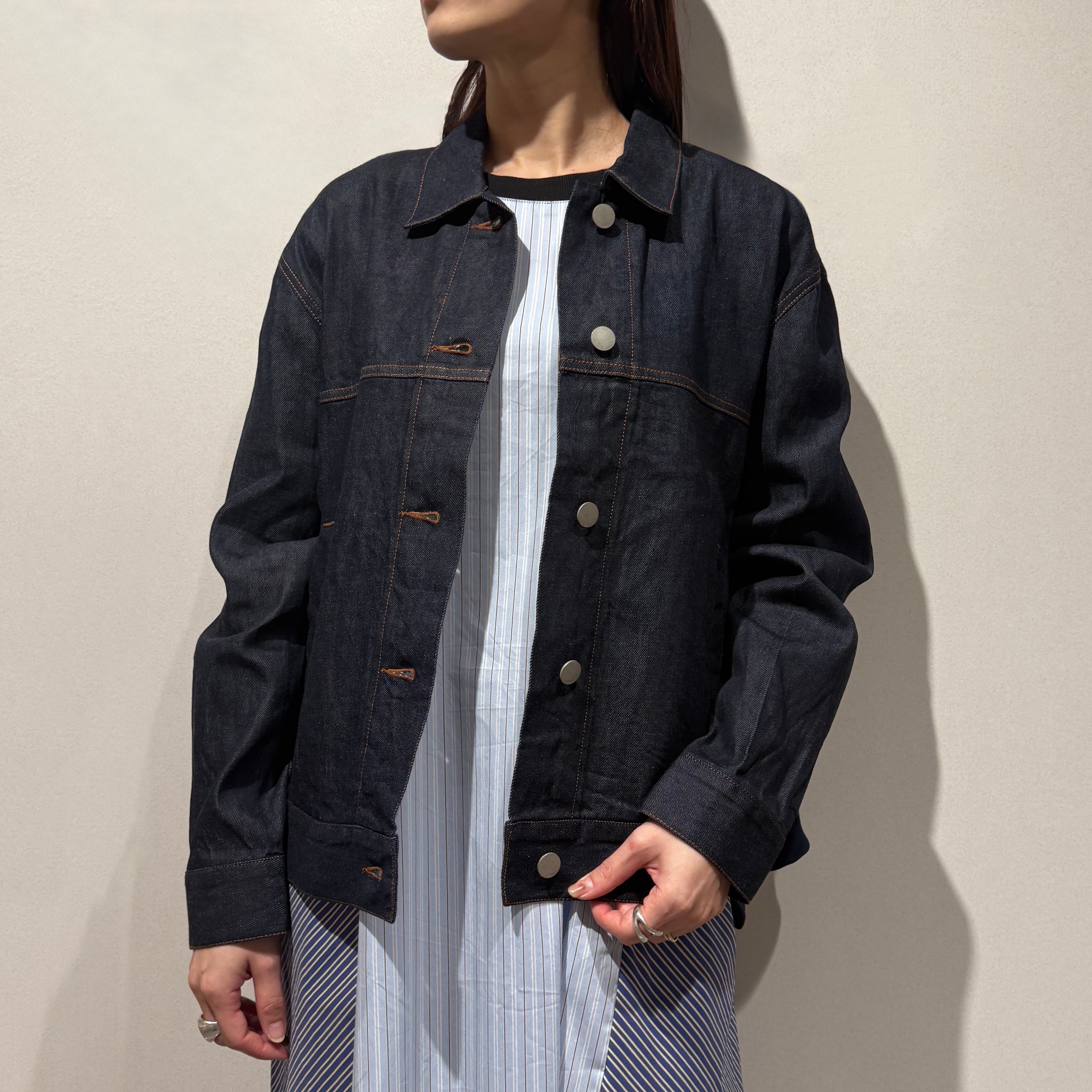 トレンド感のある着こなしもできるデニムジャケットは、季節の変わり目に一枚あると便利な一着です。