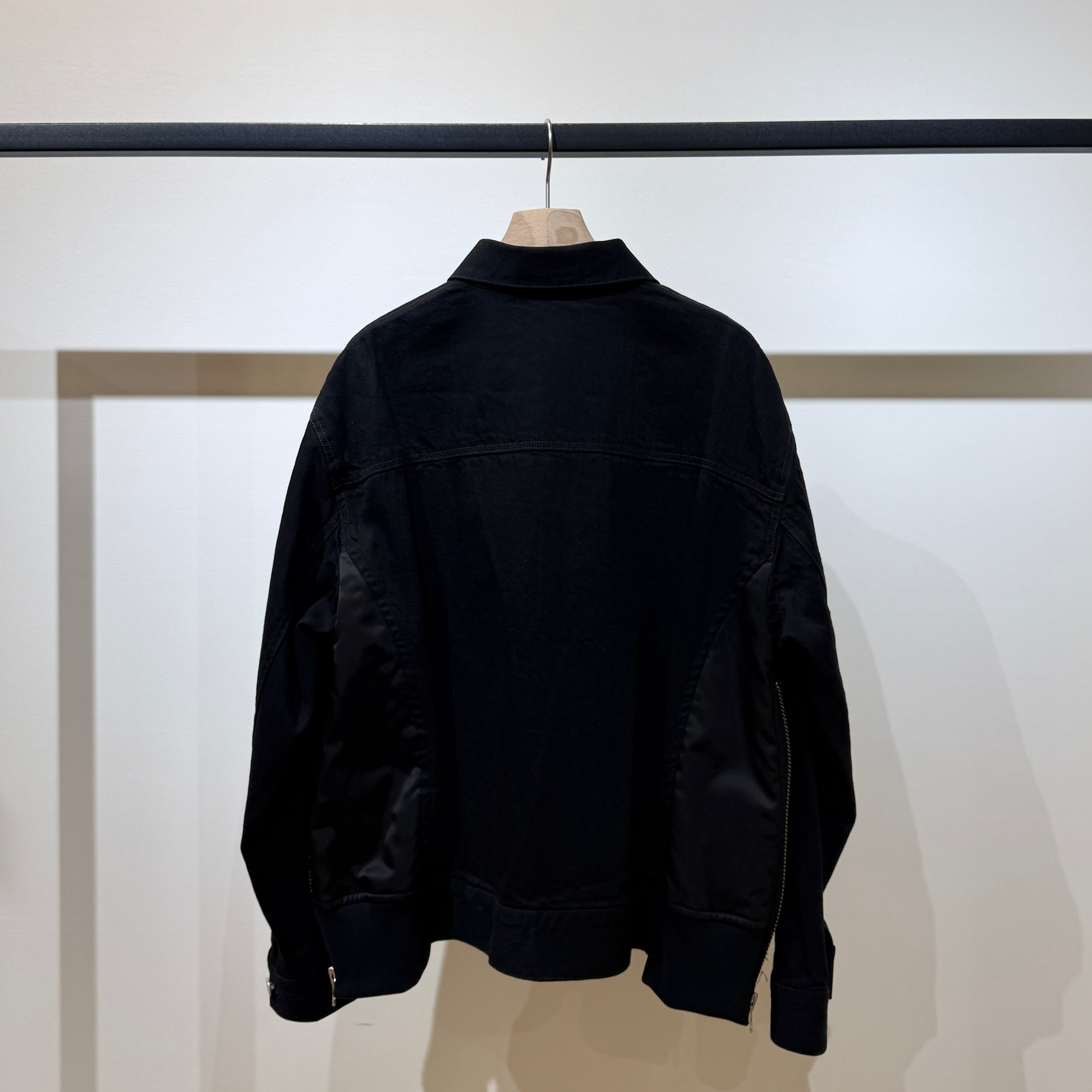 脇身頃を異素材で切り替えたドッキングブルゾン。