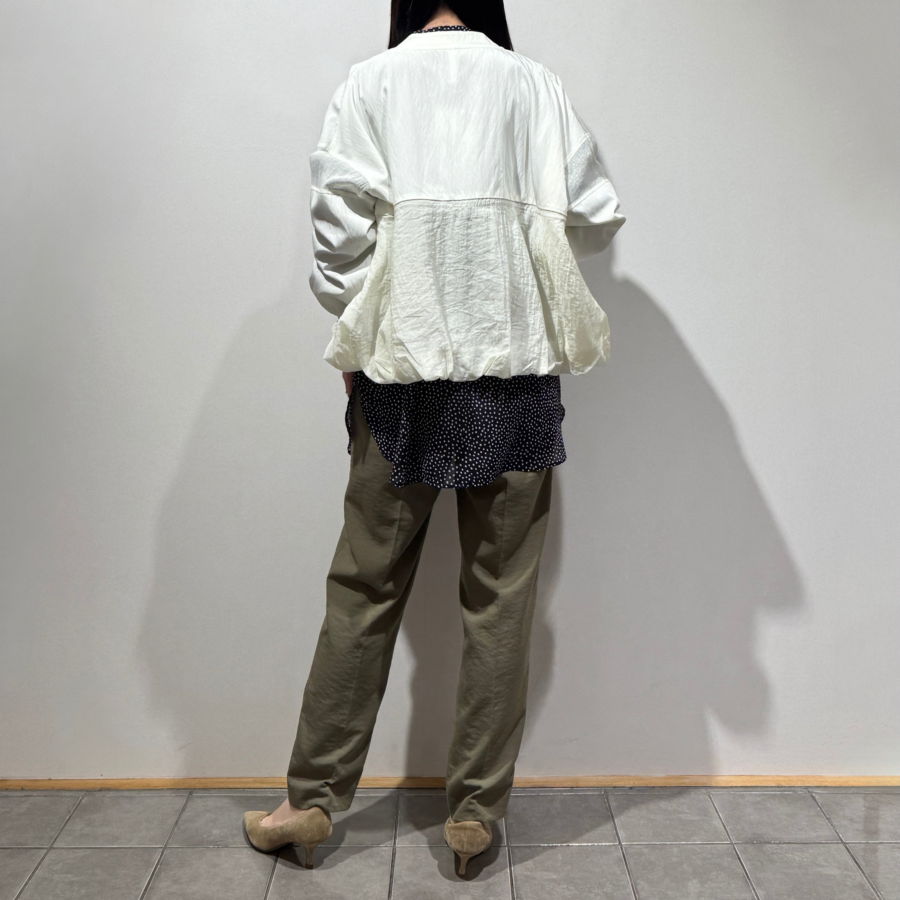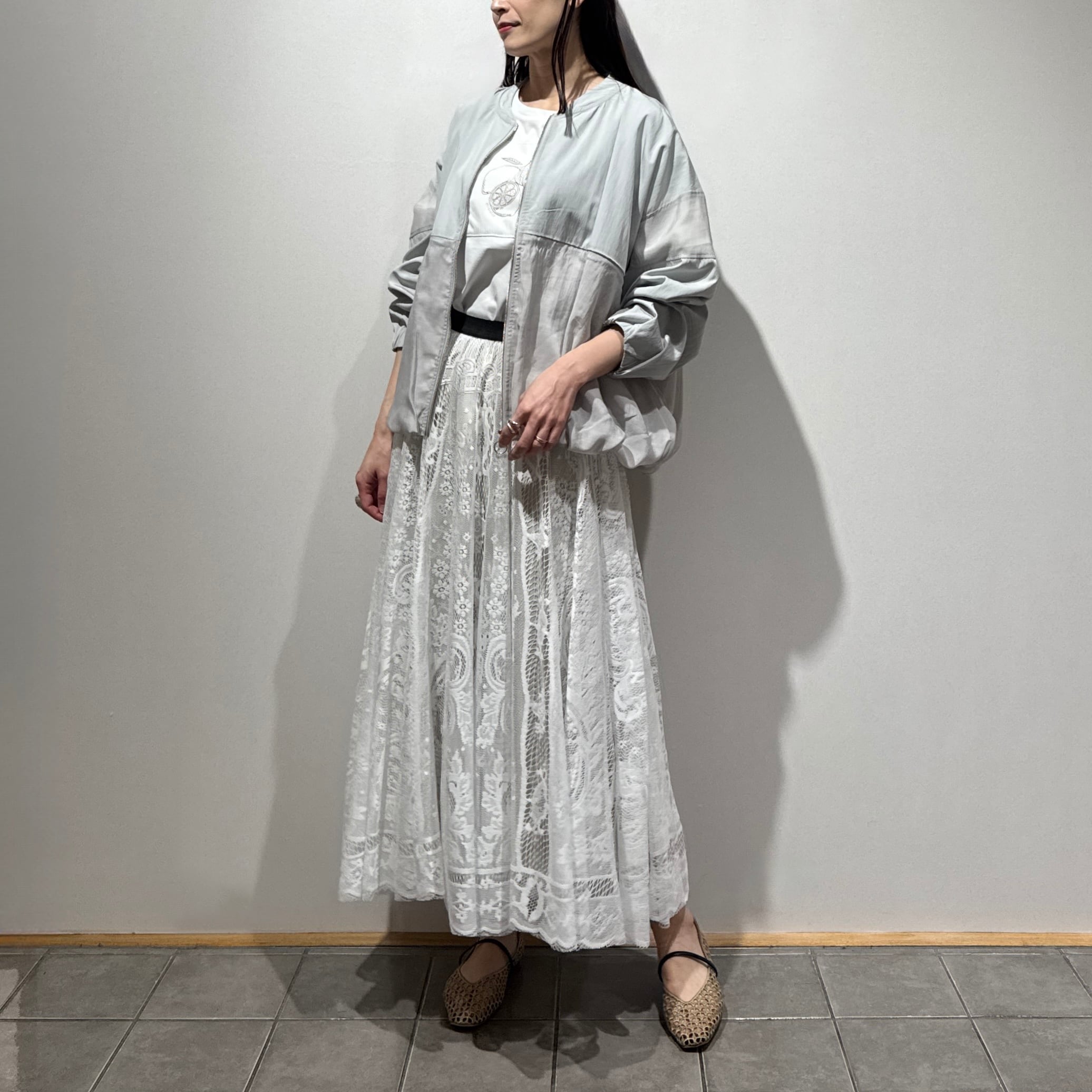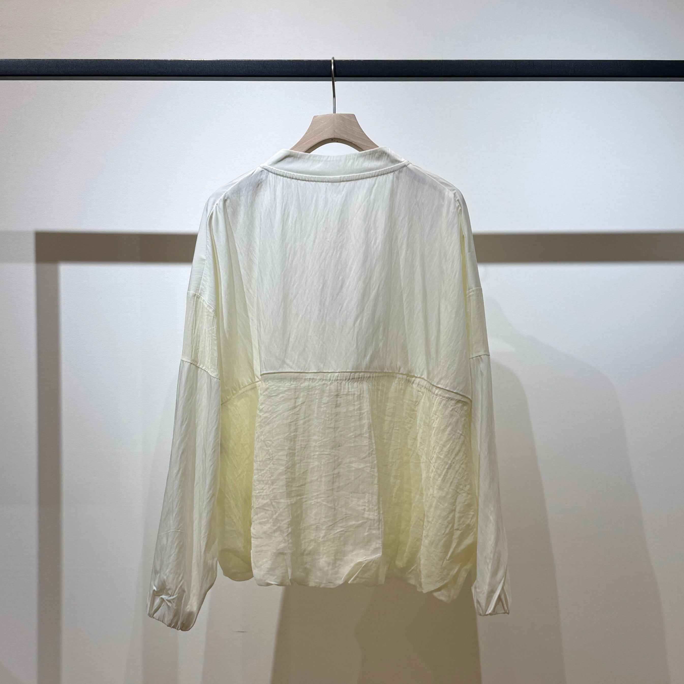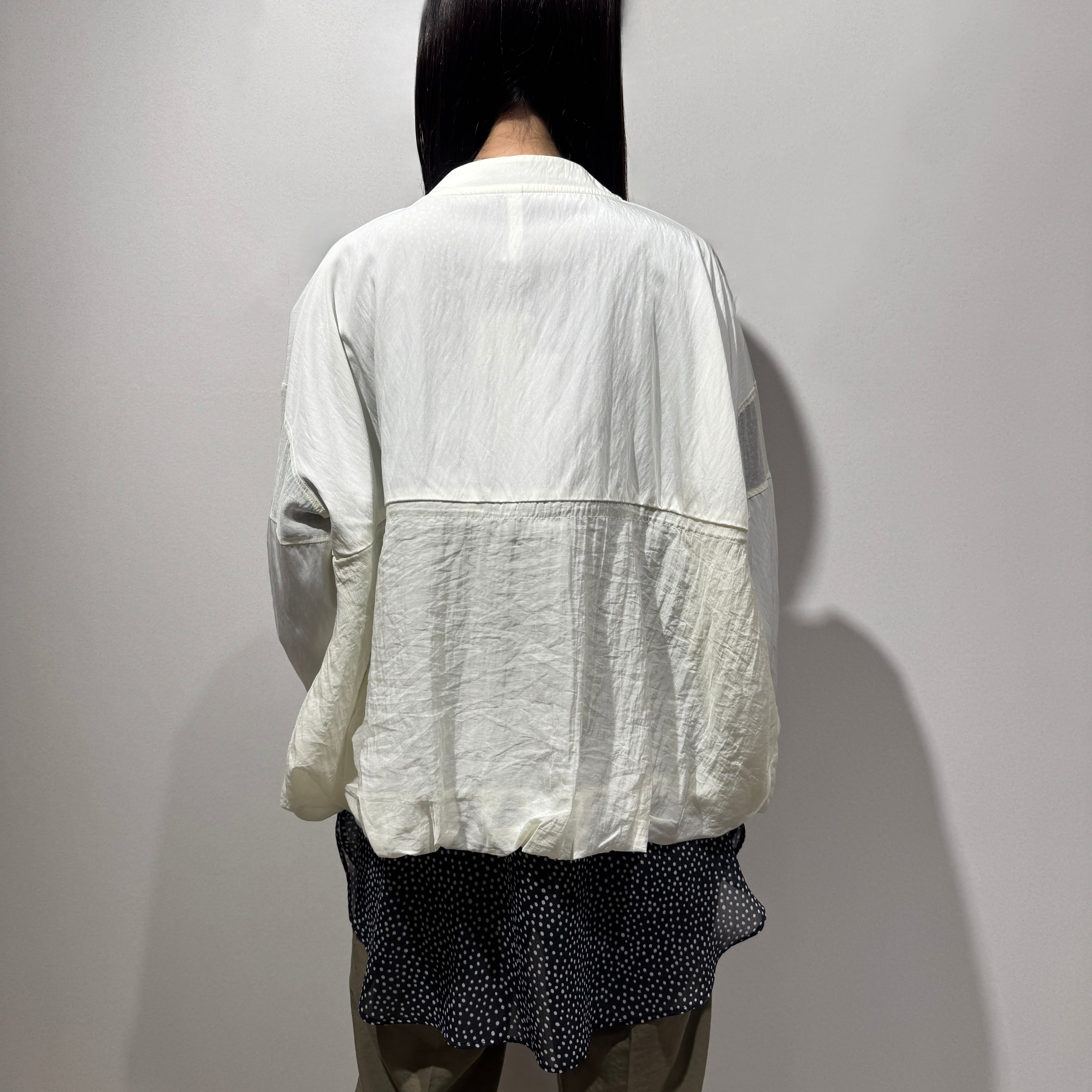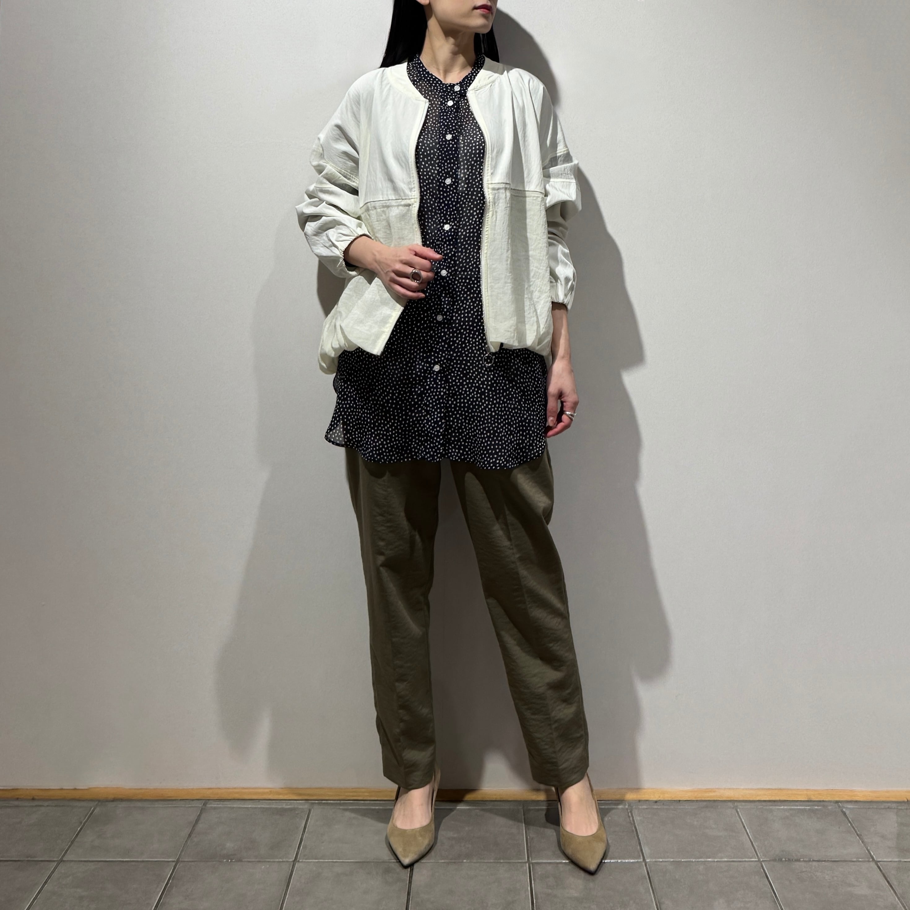 フェミニンな素材感にメンズライクなブルゾン襟を合わせることで、クリーンにもカジュアルにも対応するバランスの取れた一着に仕上がっています。