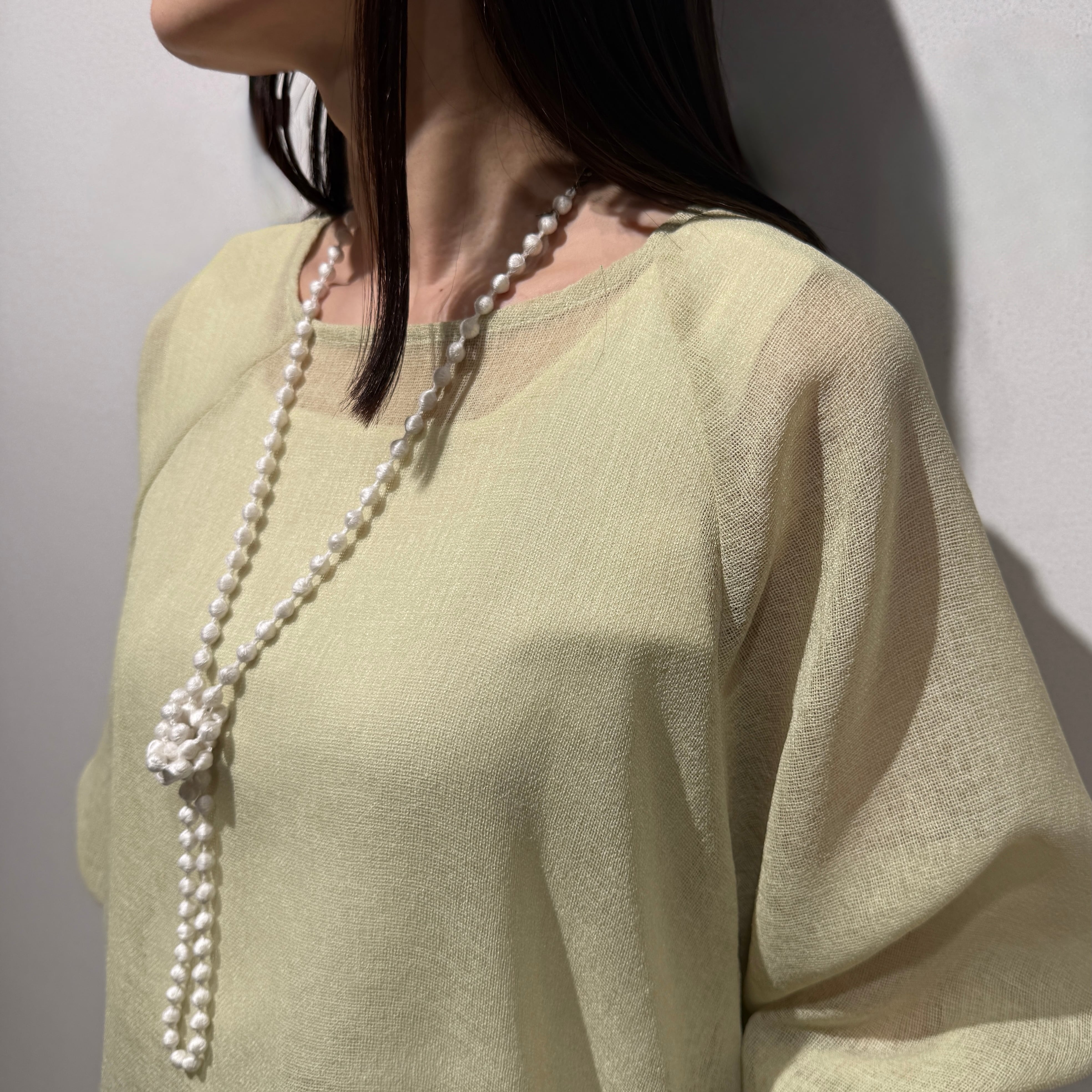 透け感を楽しめる、大人の軽やかな編み編みドルマンスリーブプルオーバー。