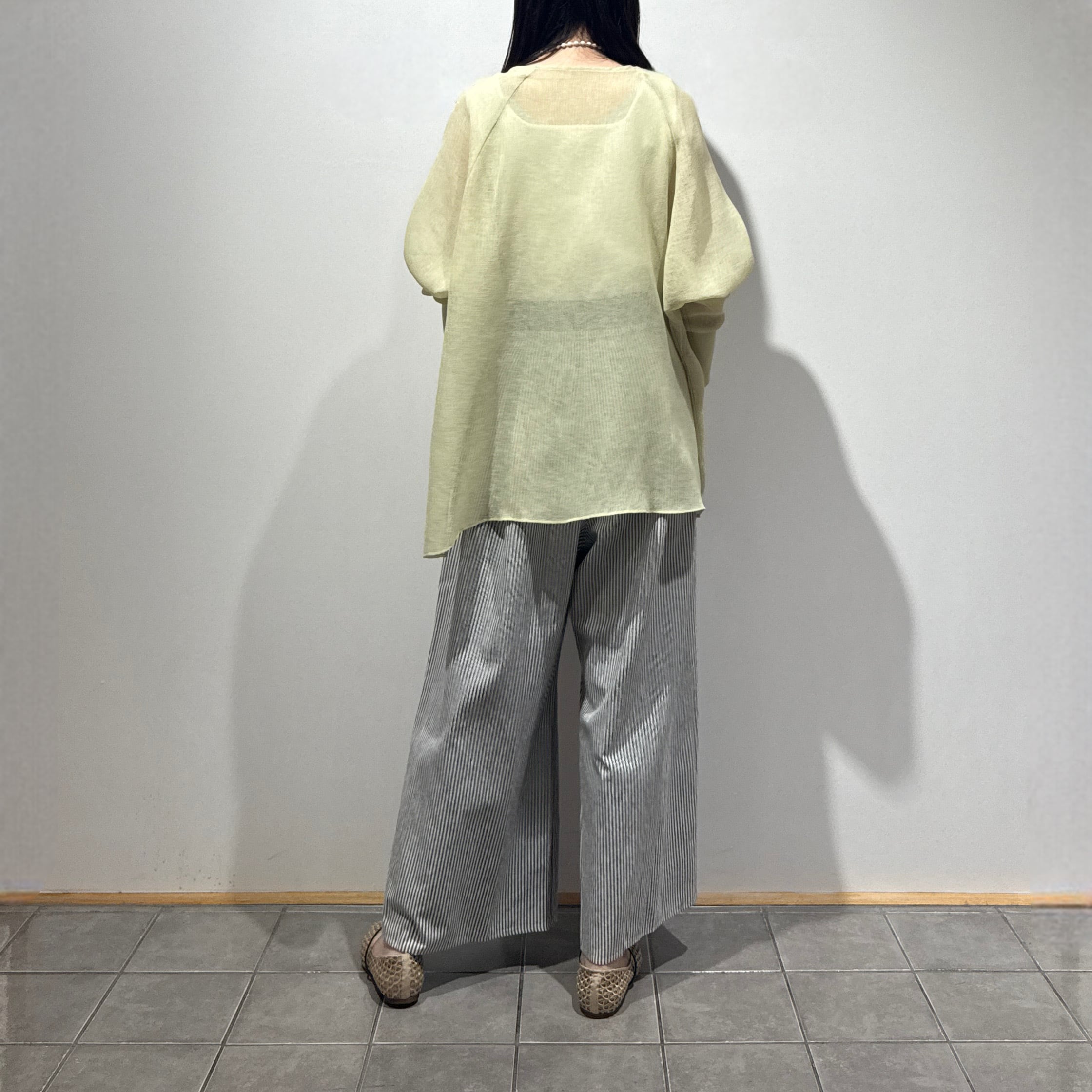 タンクトップやキャミソールを合わせて透け感を楽しみながら、パンツやスカートにさらりと合わせた抜け感コーデがおすすめです。