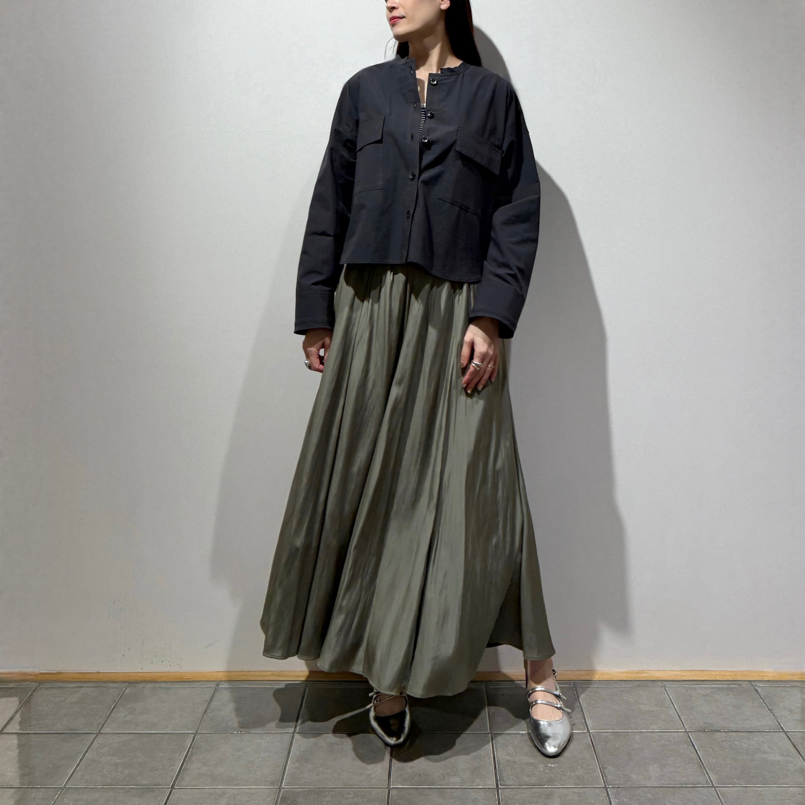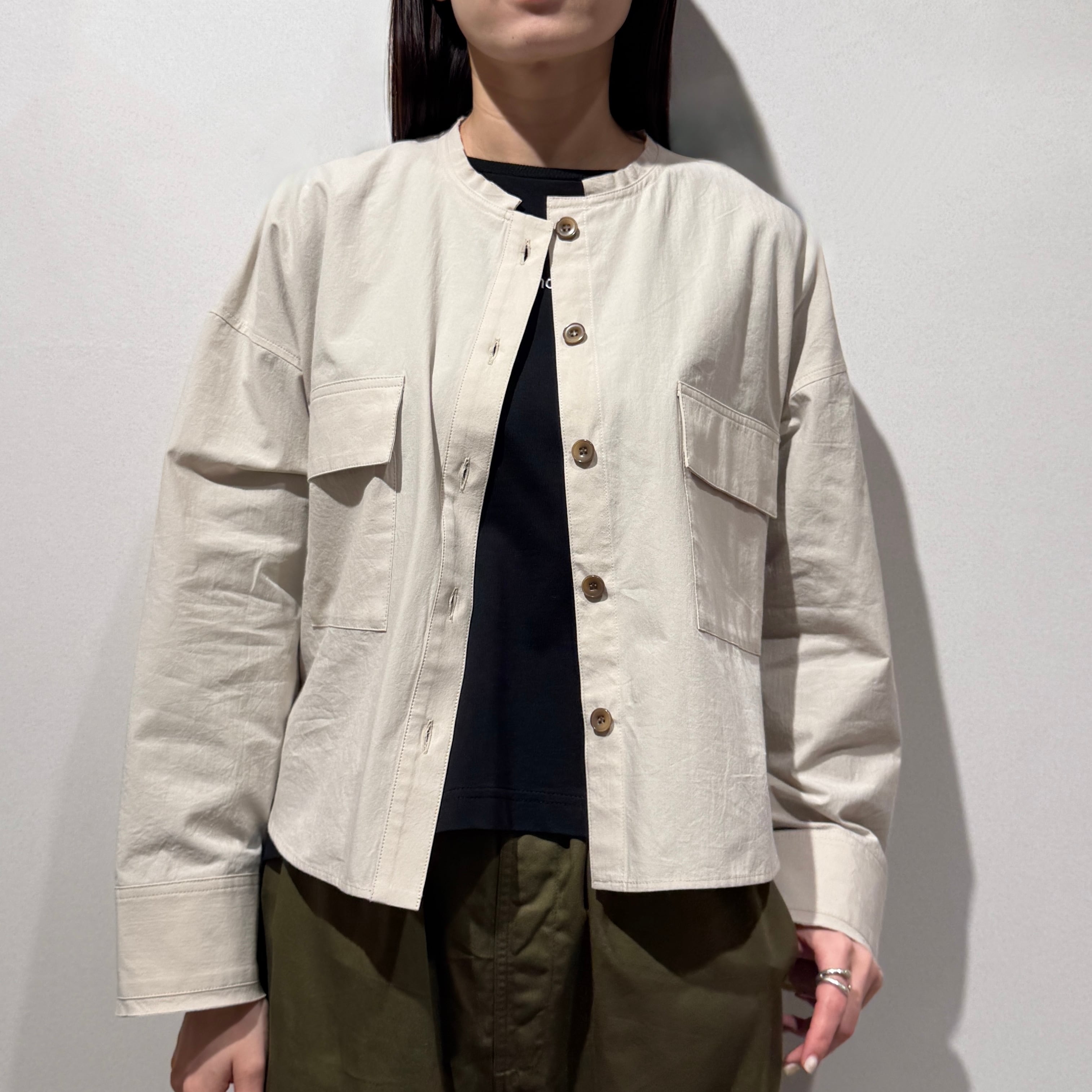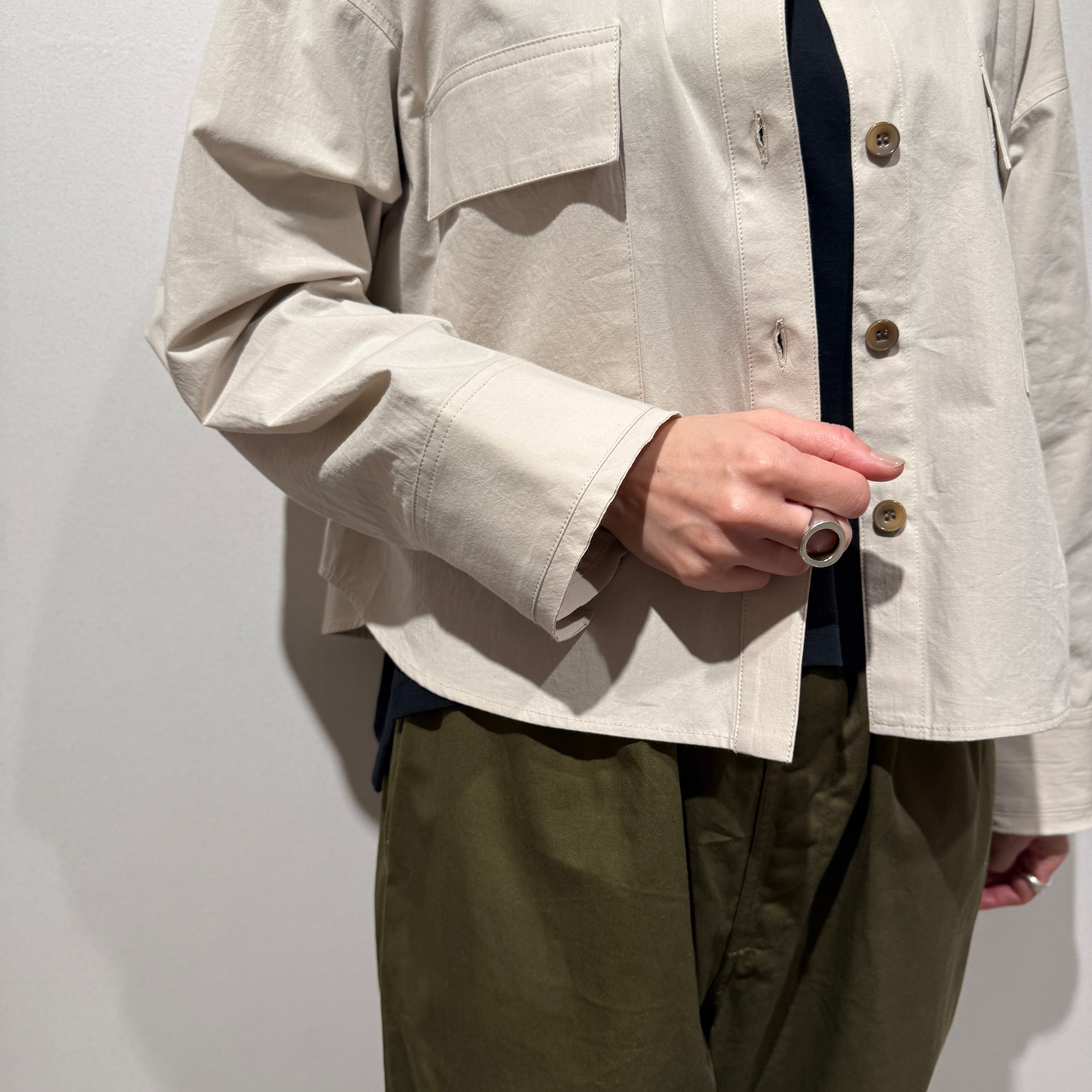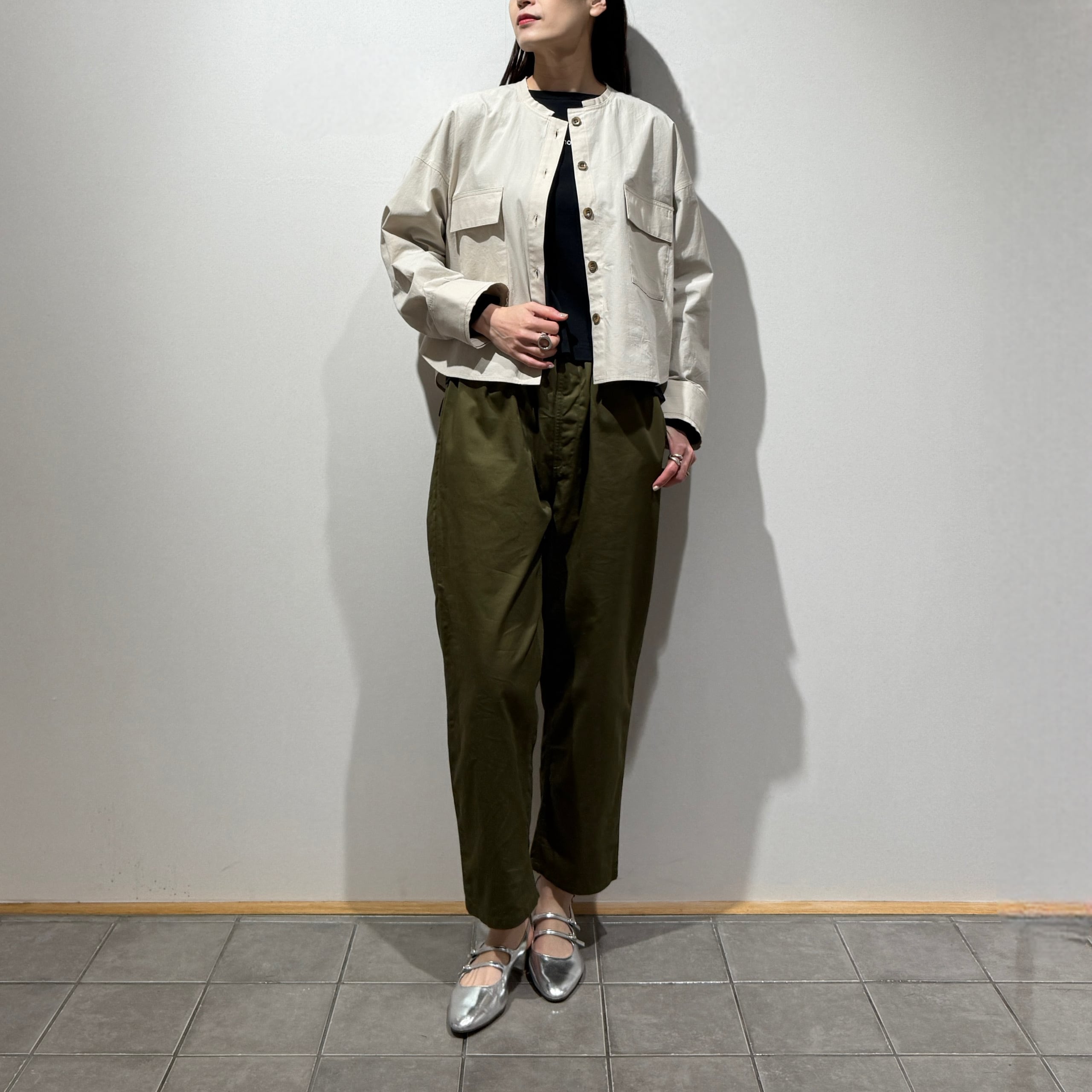 短め丈のボックスシルエットがバランス良く、すっきりとした印象に。