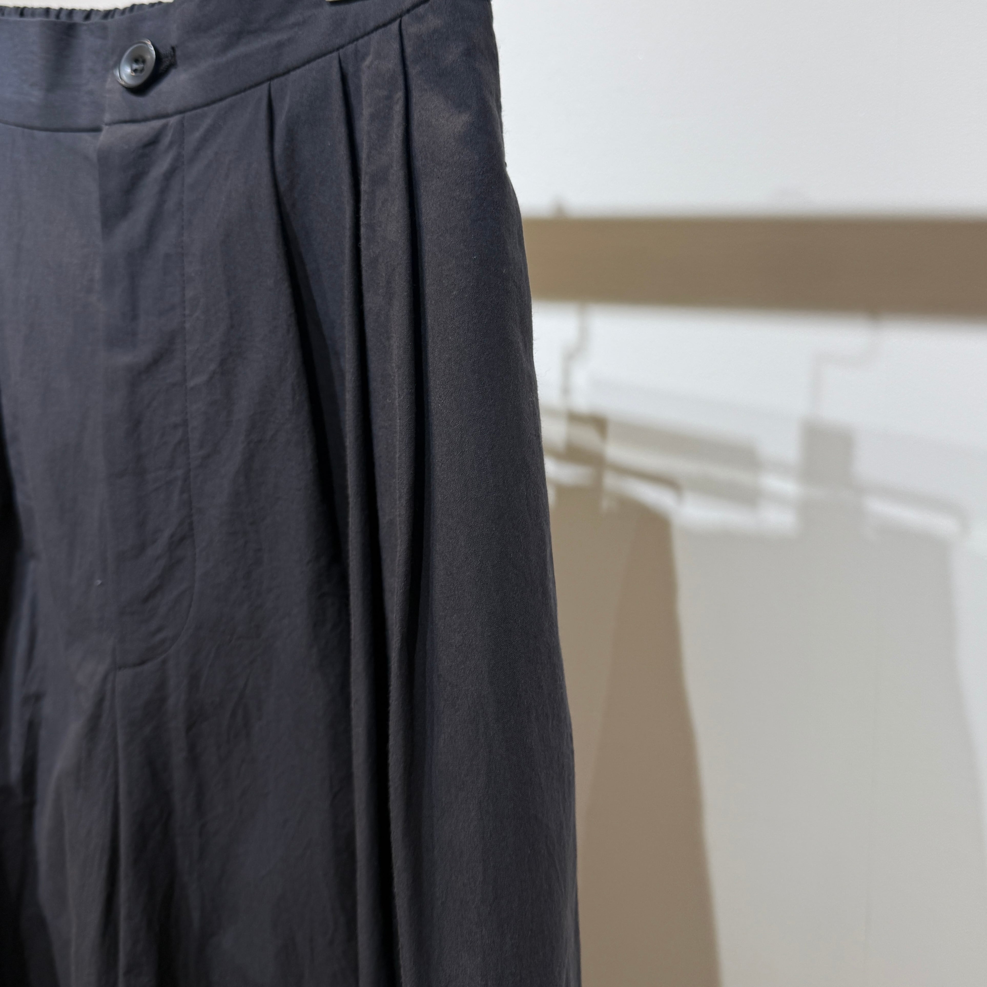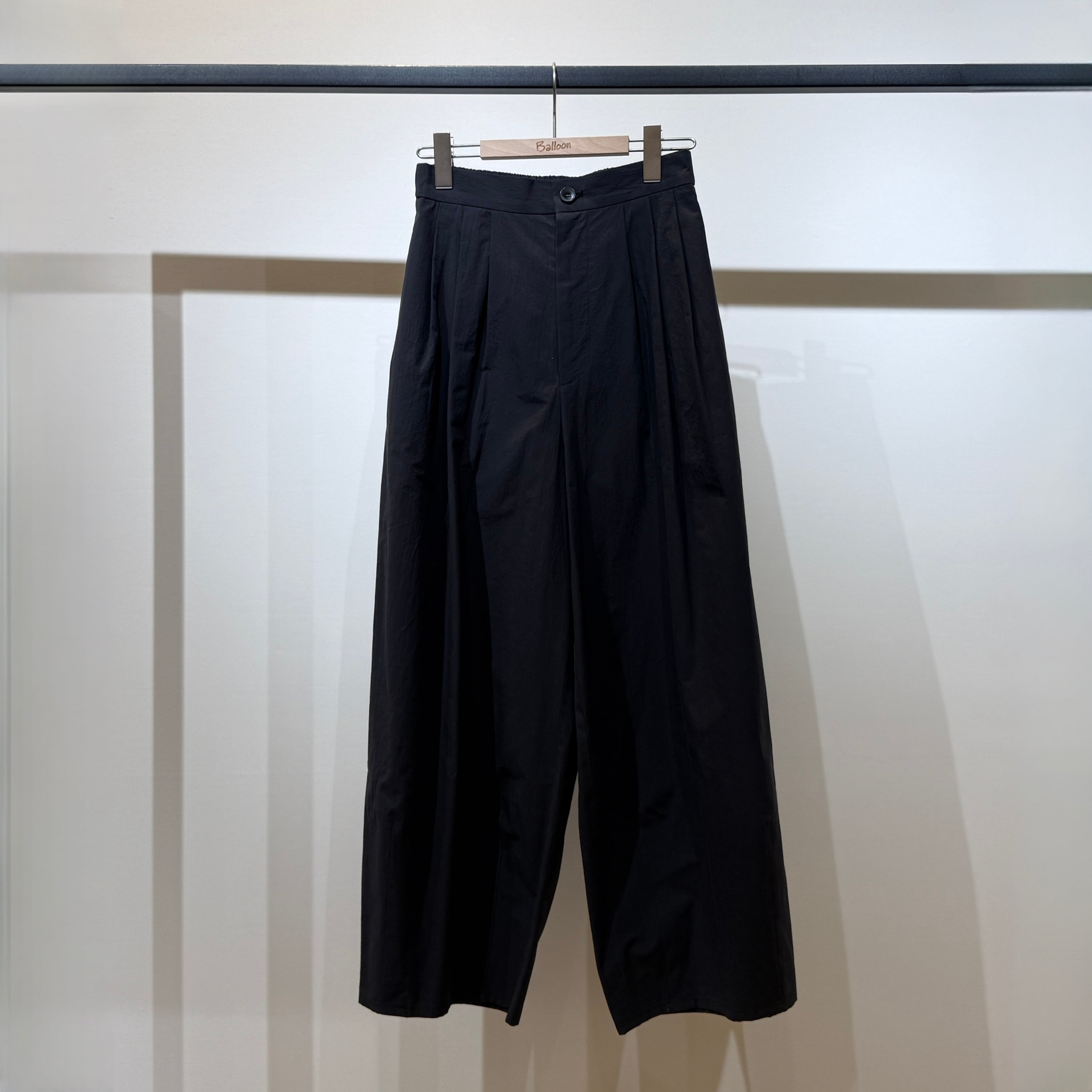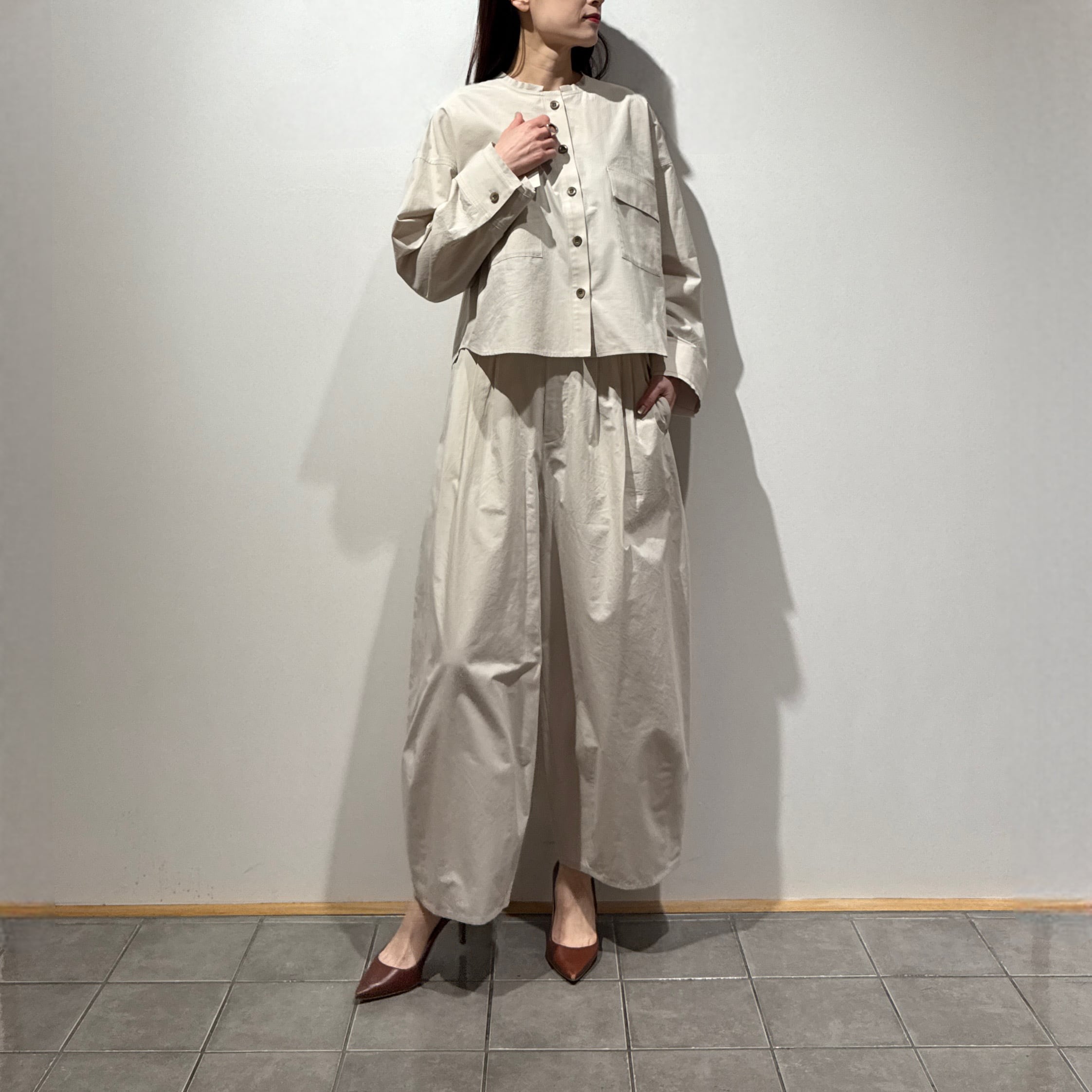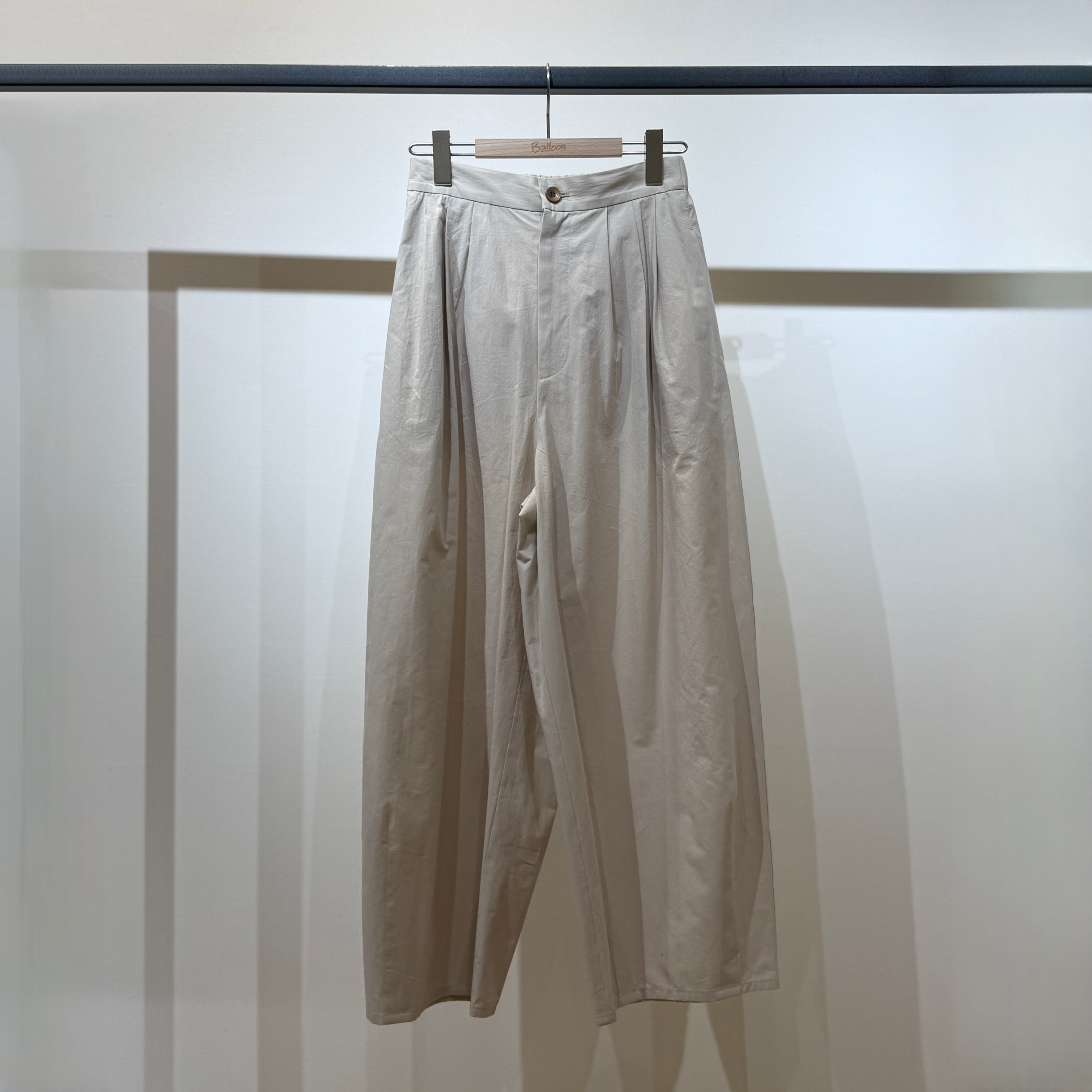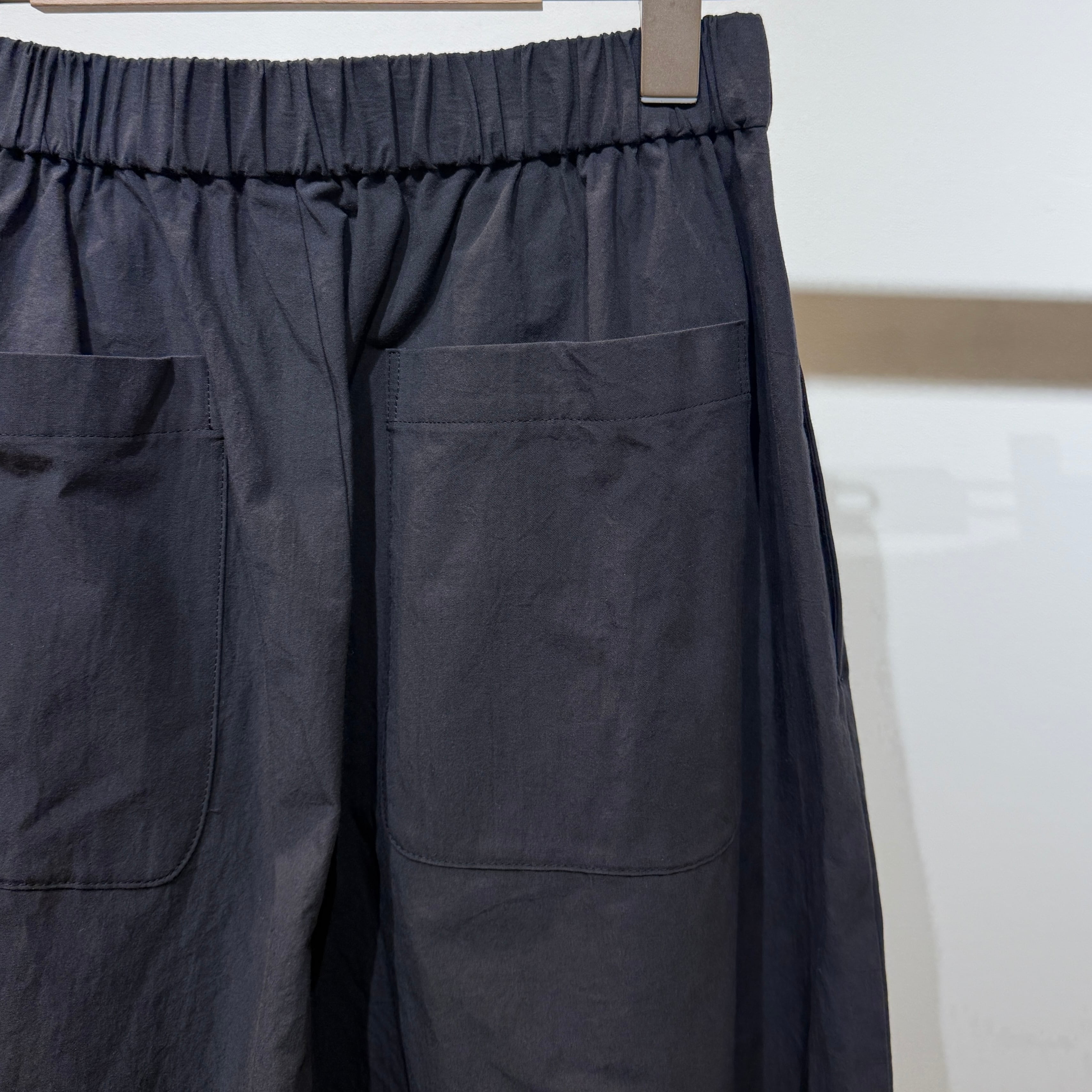 深めの股上とゆとりのある腰回りに、ややコクーンの立体シルエットで抜け感のある印象に。
