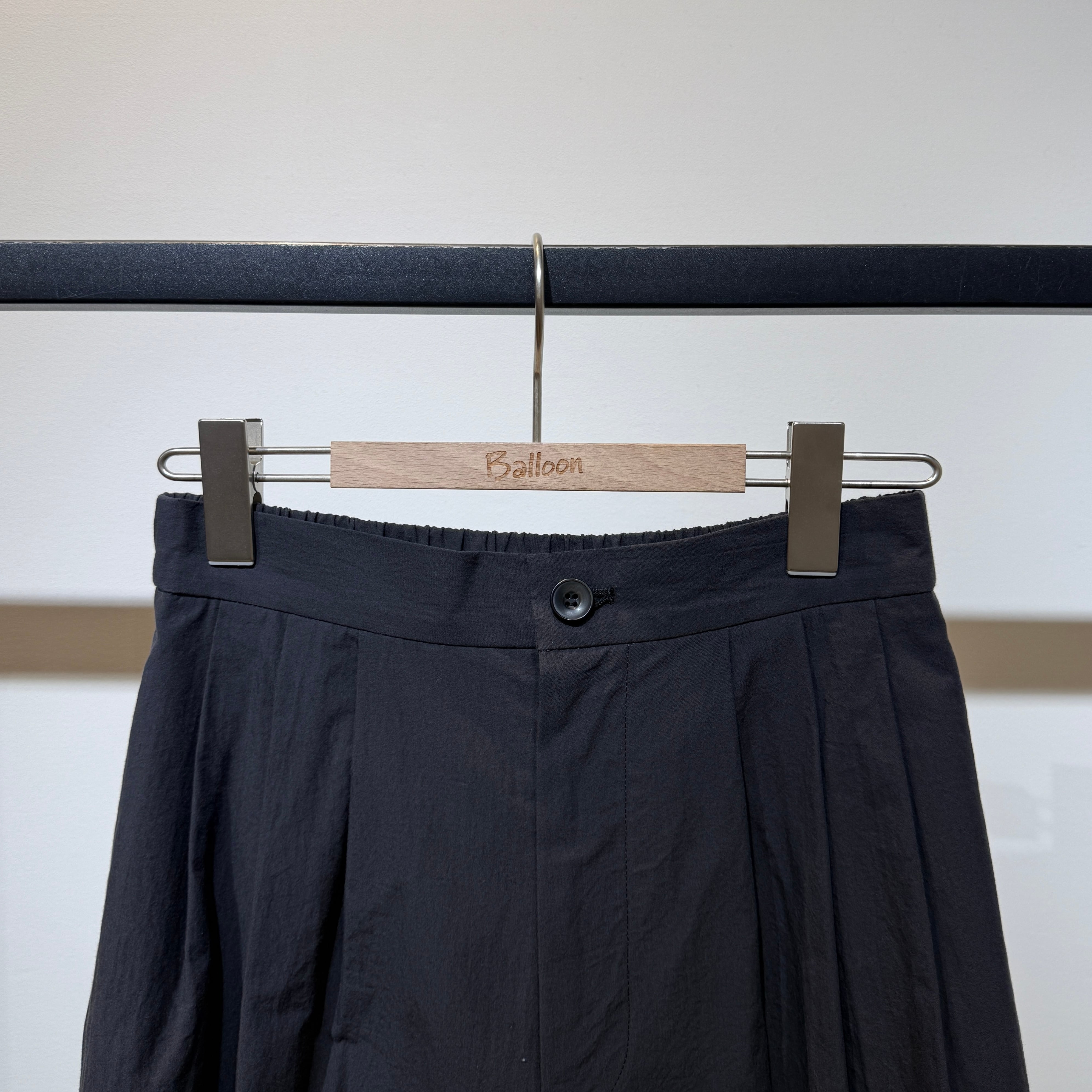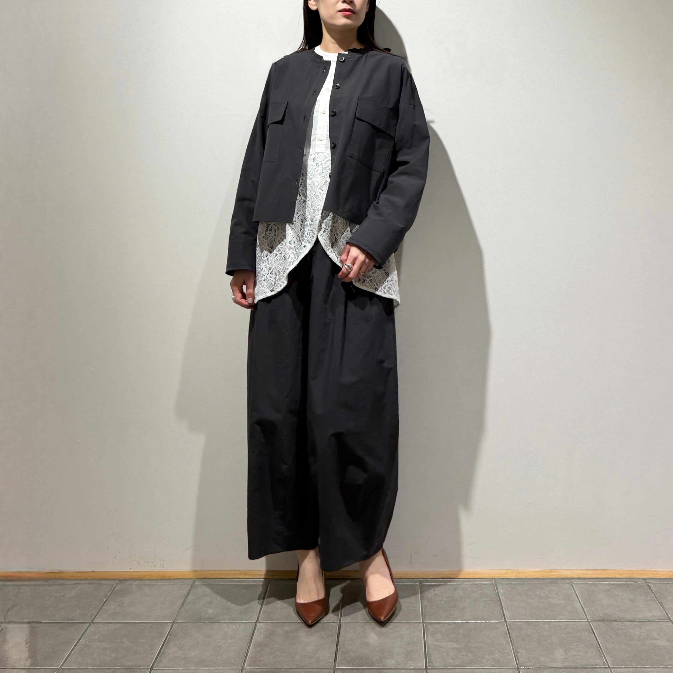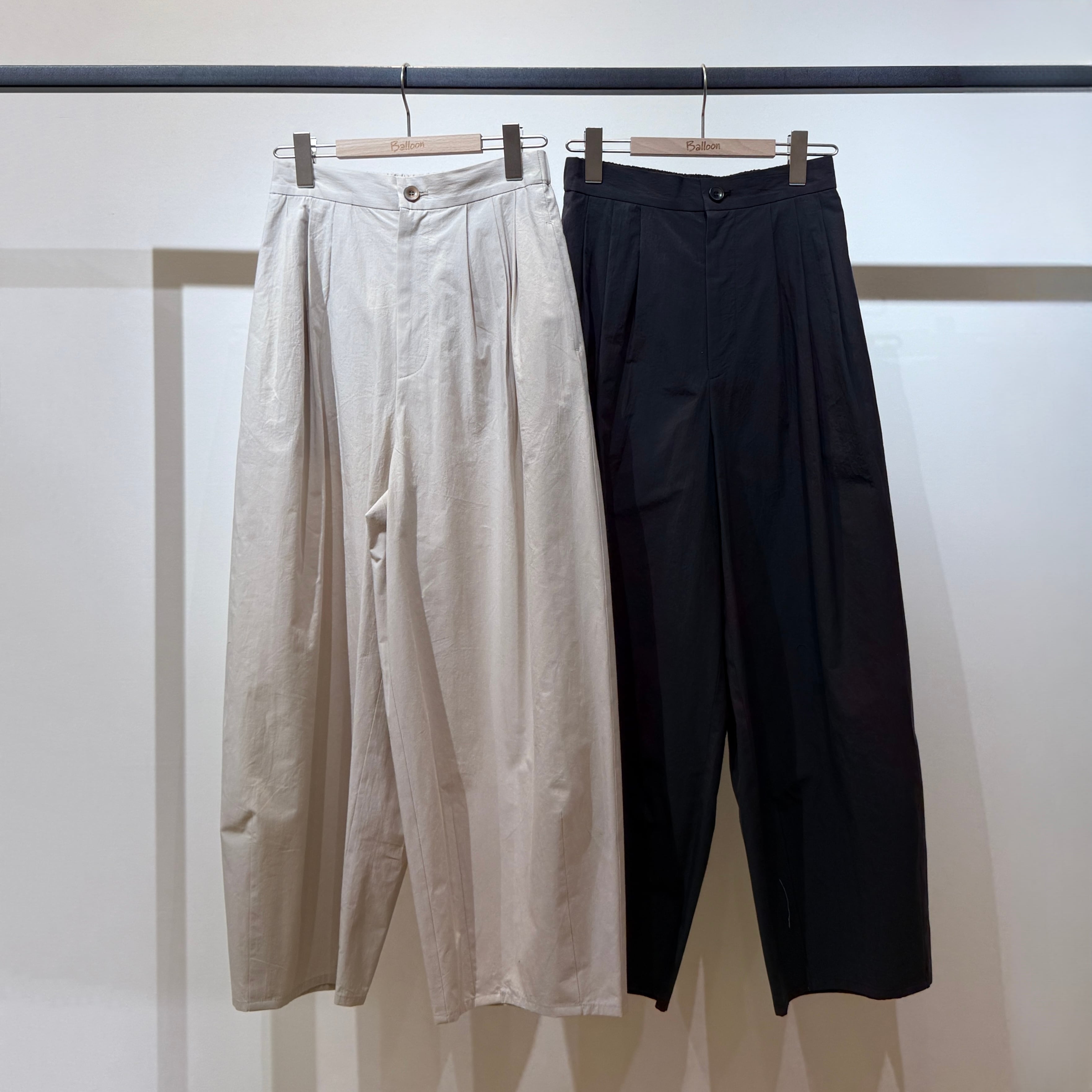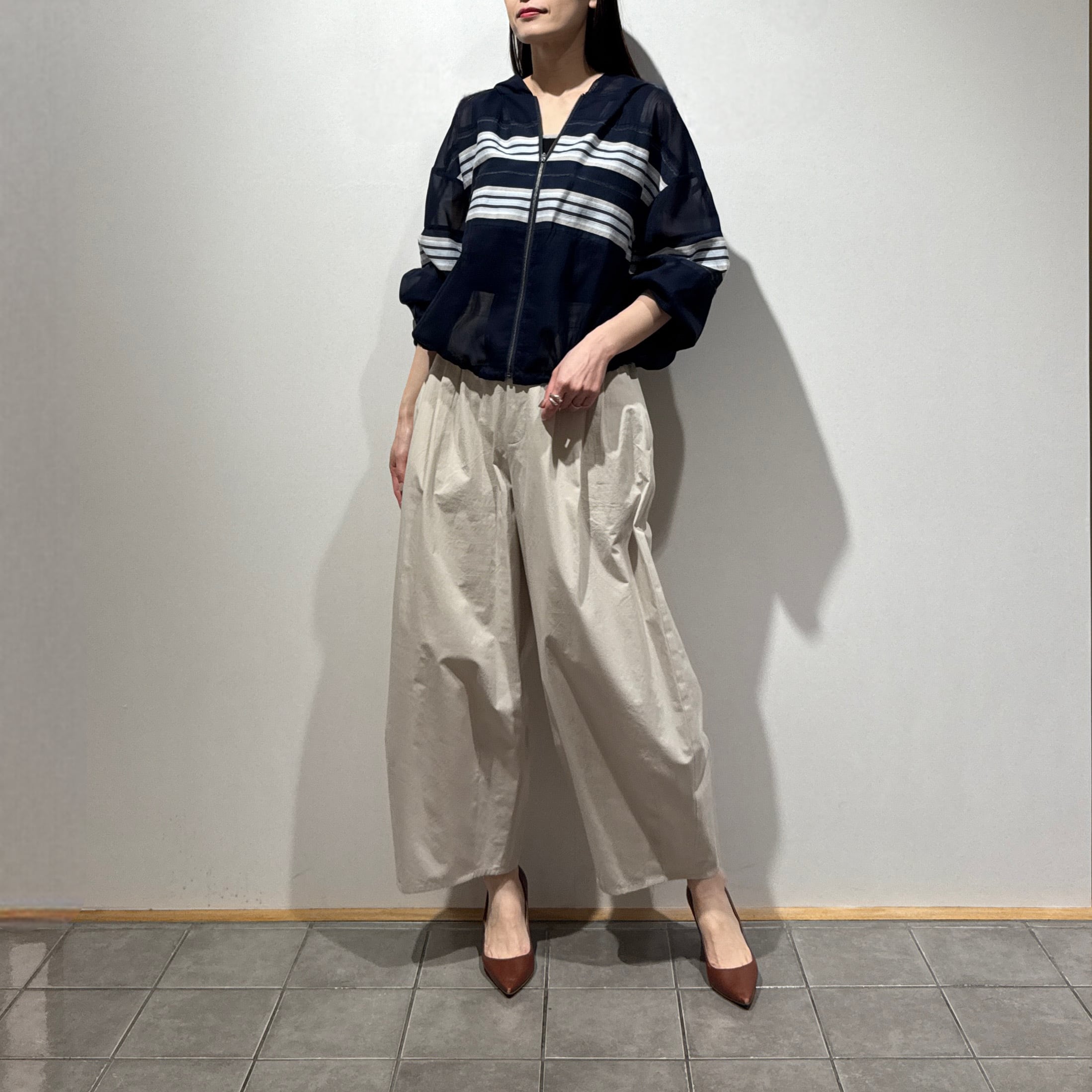 深めの股上とゆとりのある腰回りに、ややコクーンの立体シルエットで抜け感のある印象に。
