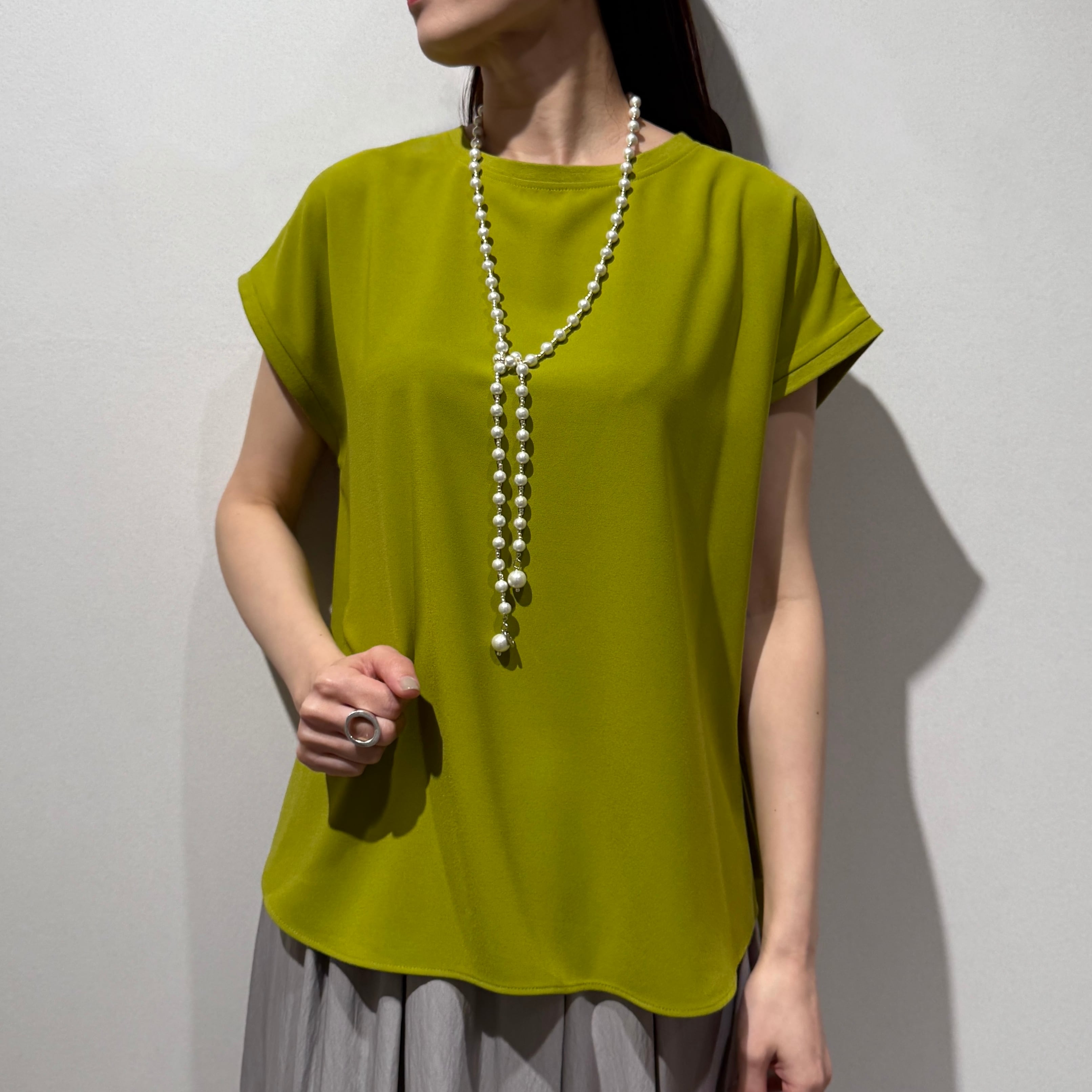 さらっと一枚で着られる、Tシャツ感覚のきれいめフレンチスリーブブラウス。