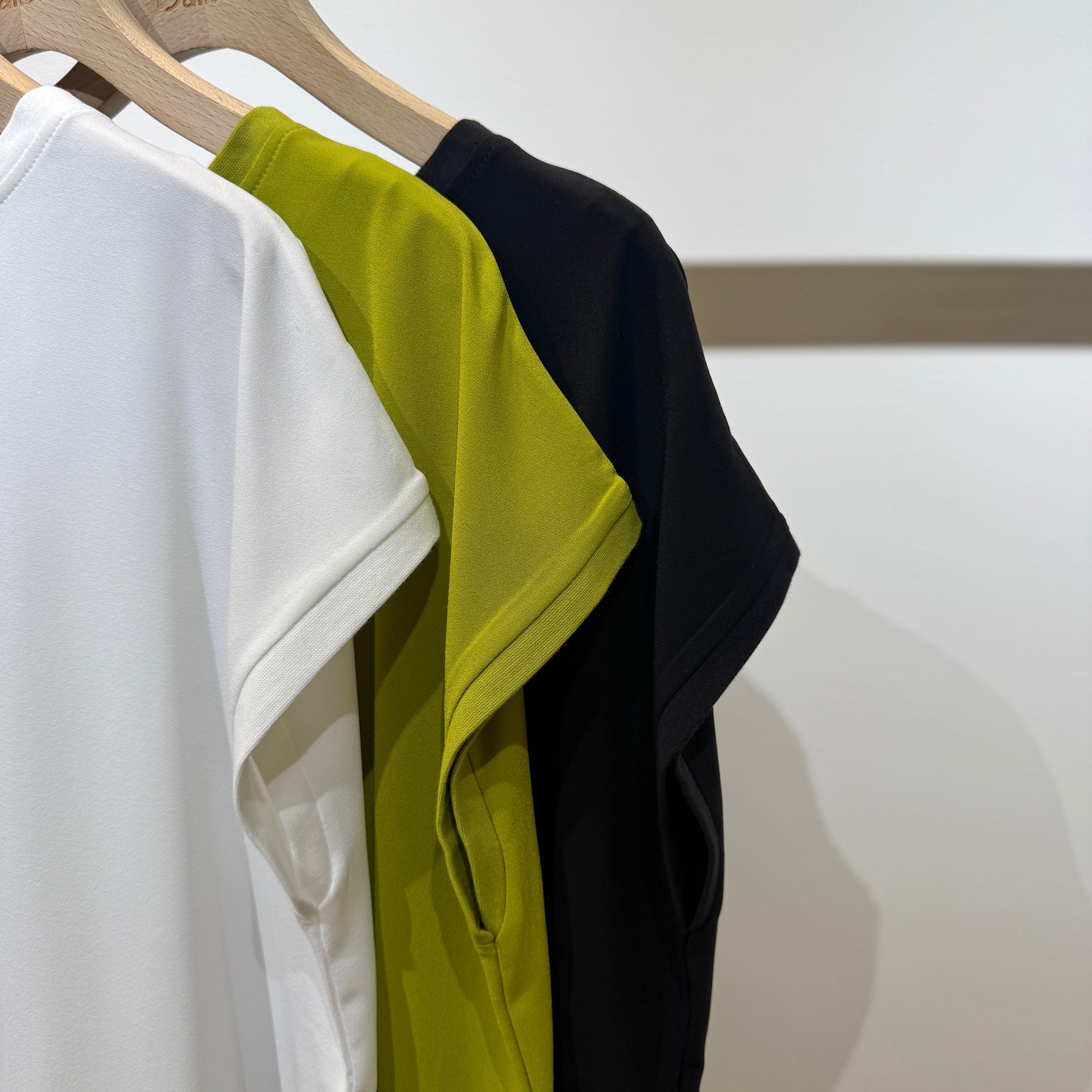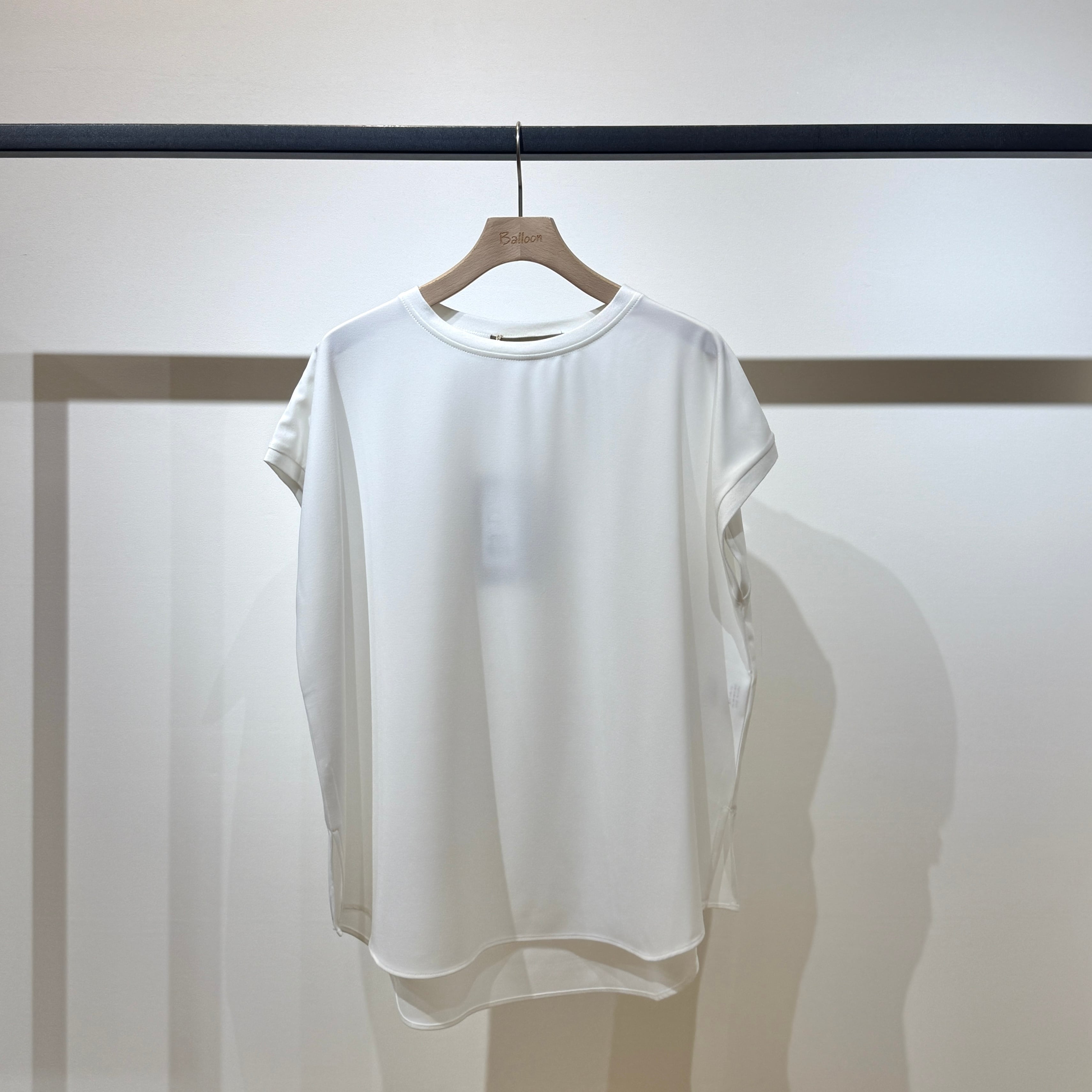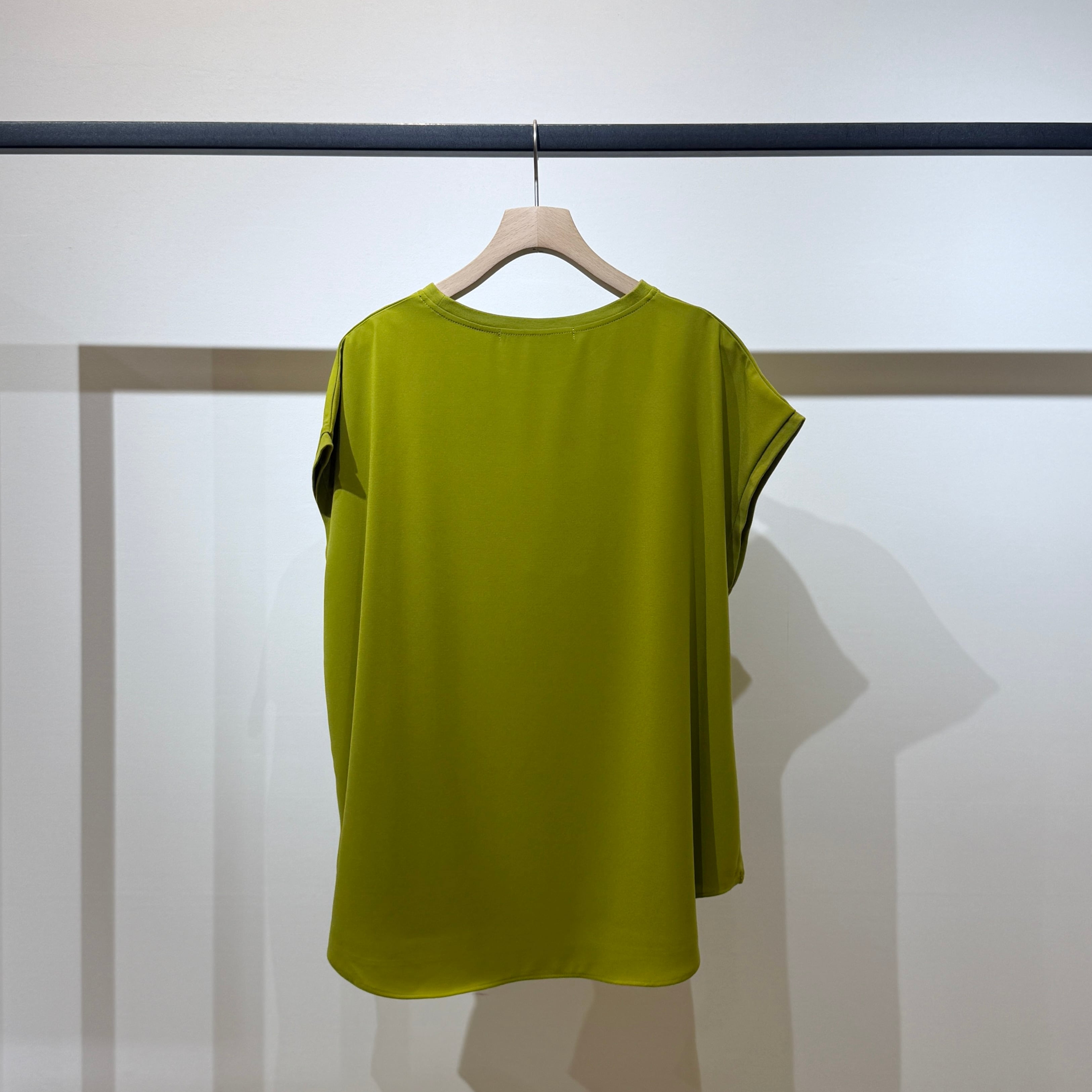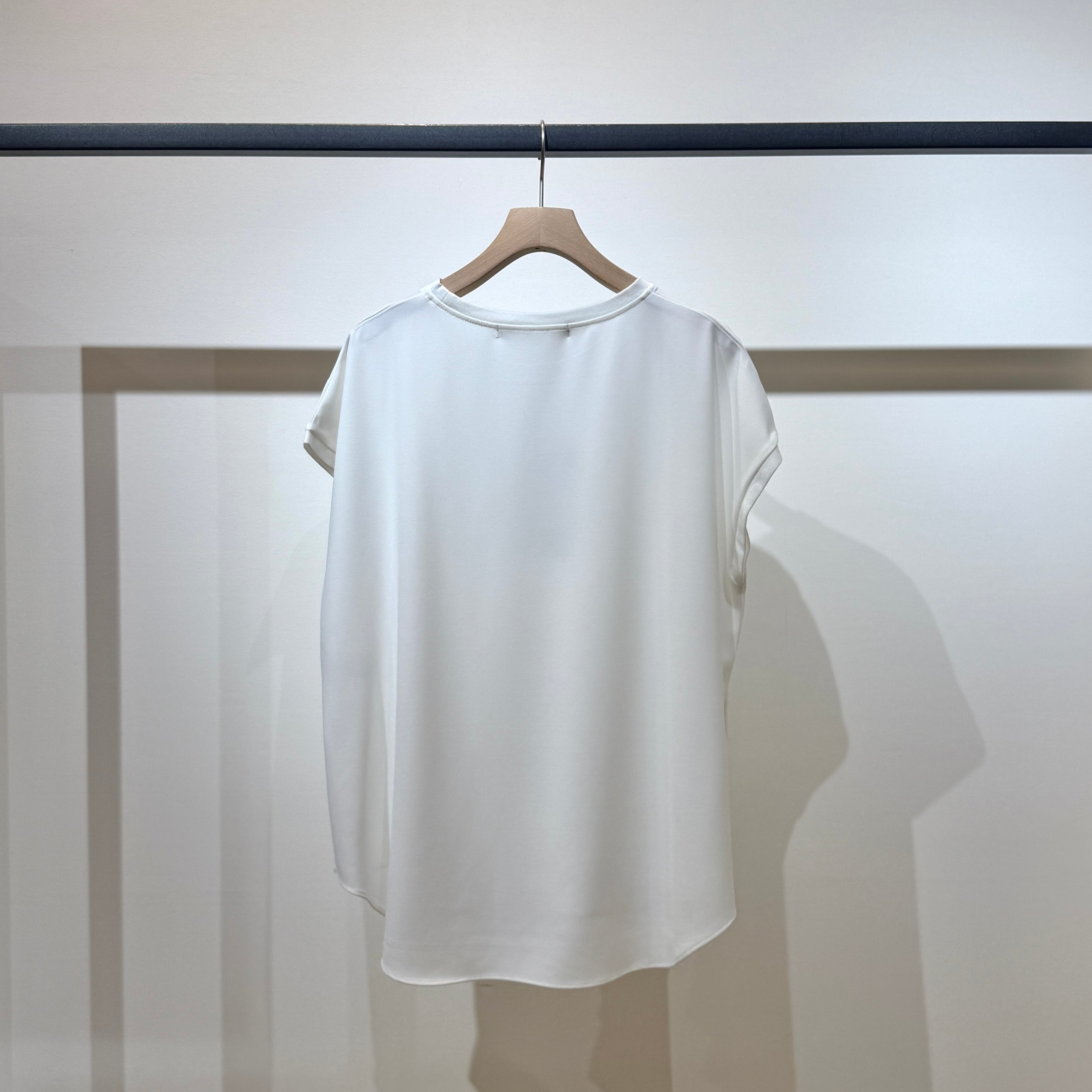シンプルなのでコーディネートの幅が広く、ジャケットやカーディガンのインナーとしても活躍する春夏にぴったりの一枚です。