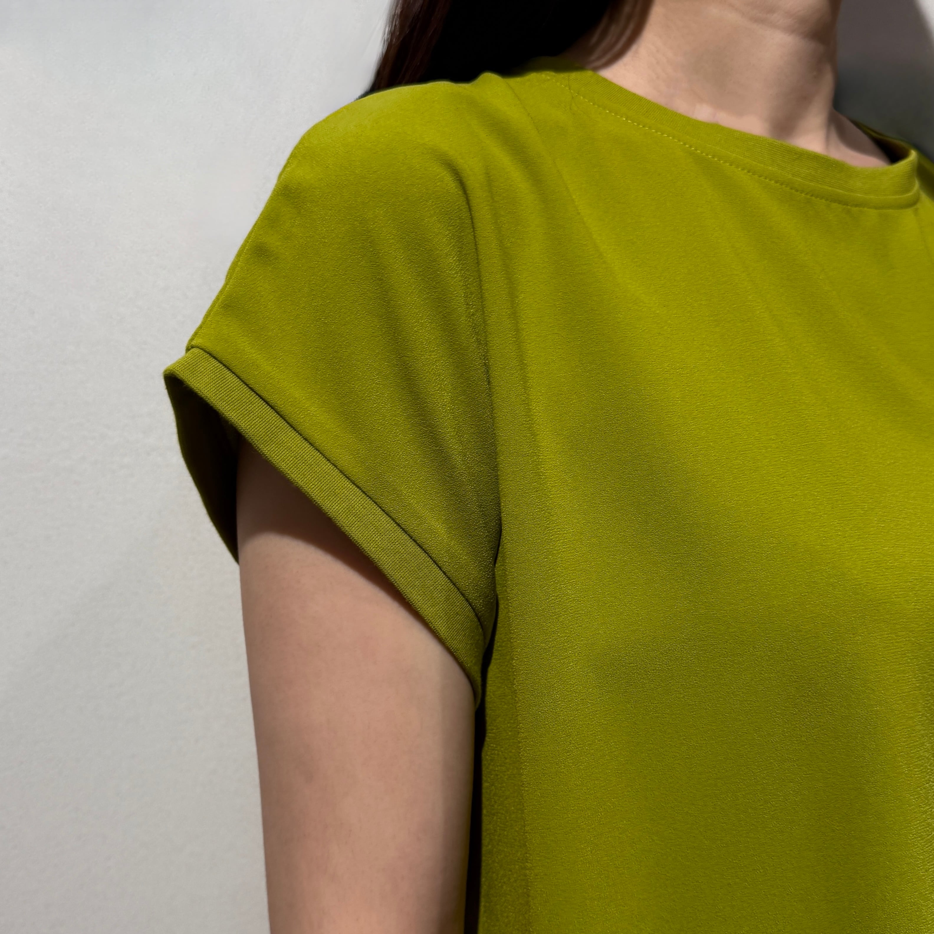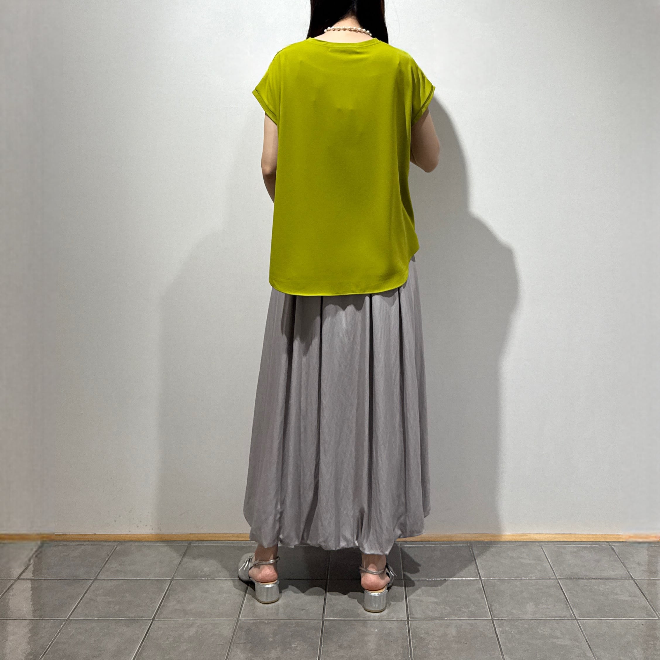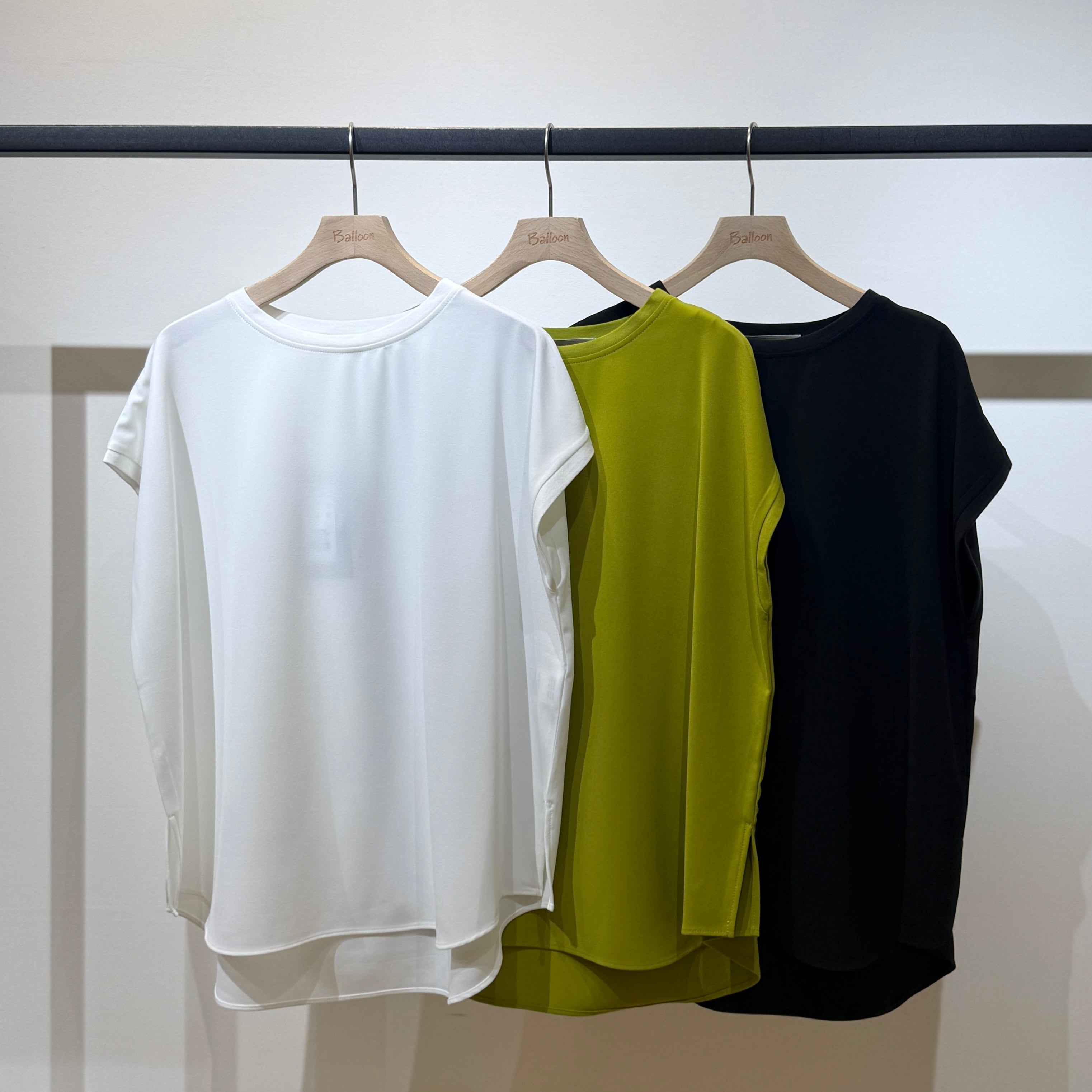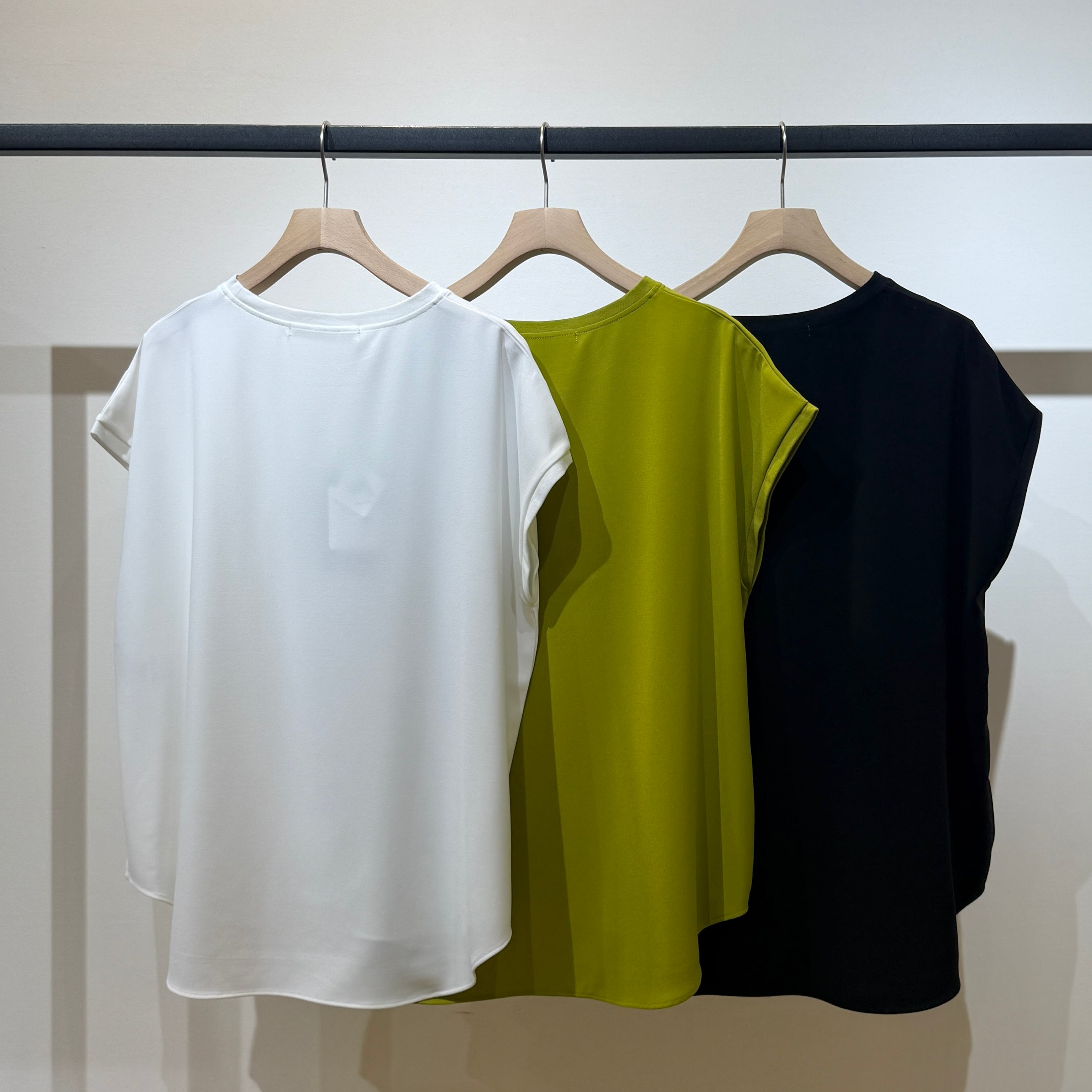 シンプルなのでコーディネートの幅が広く、ジャケットやカーディガンのインナーとしても活躍する春夏にぴったりの一枚です。