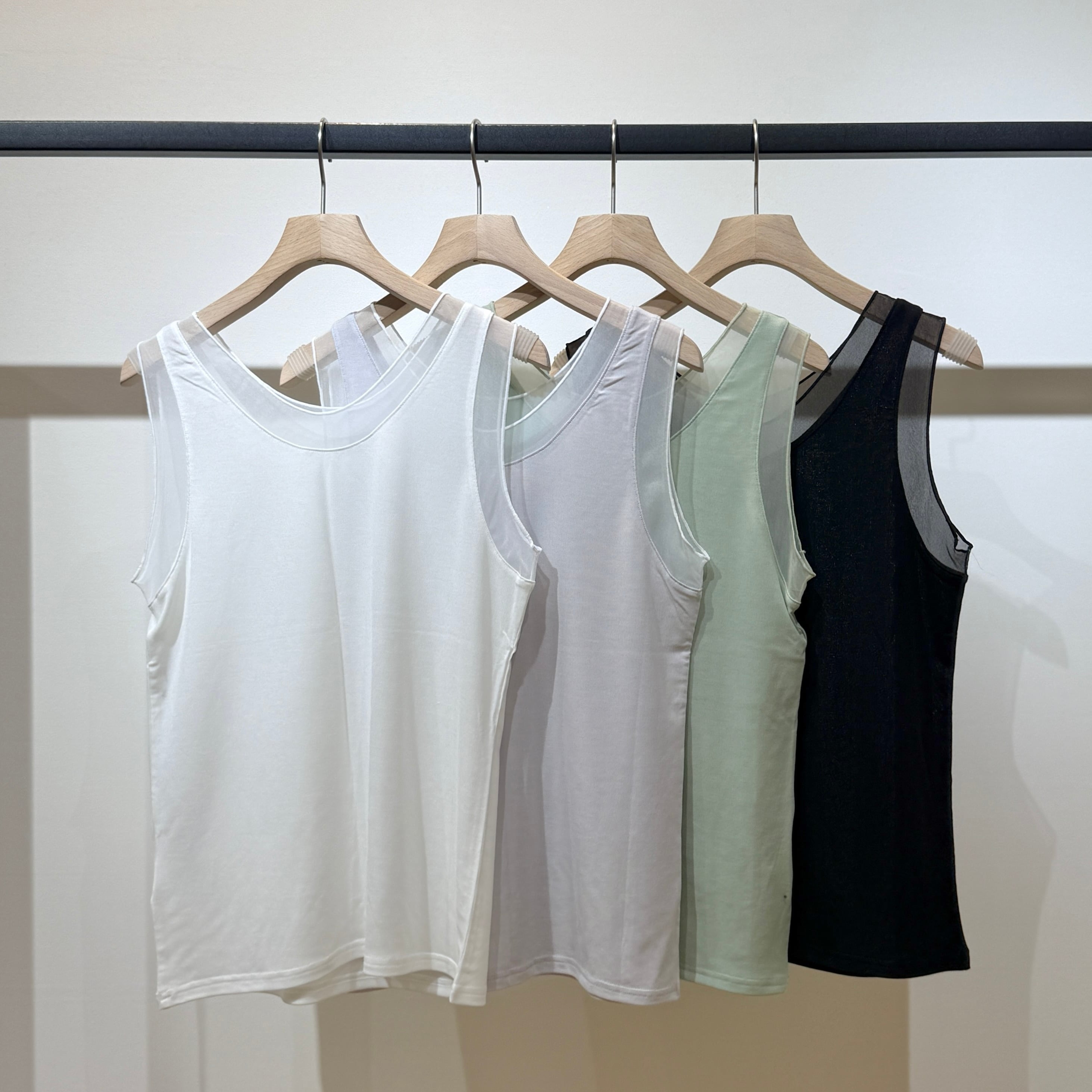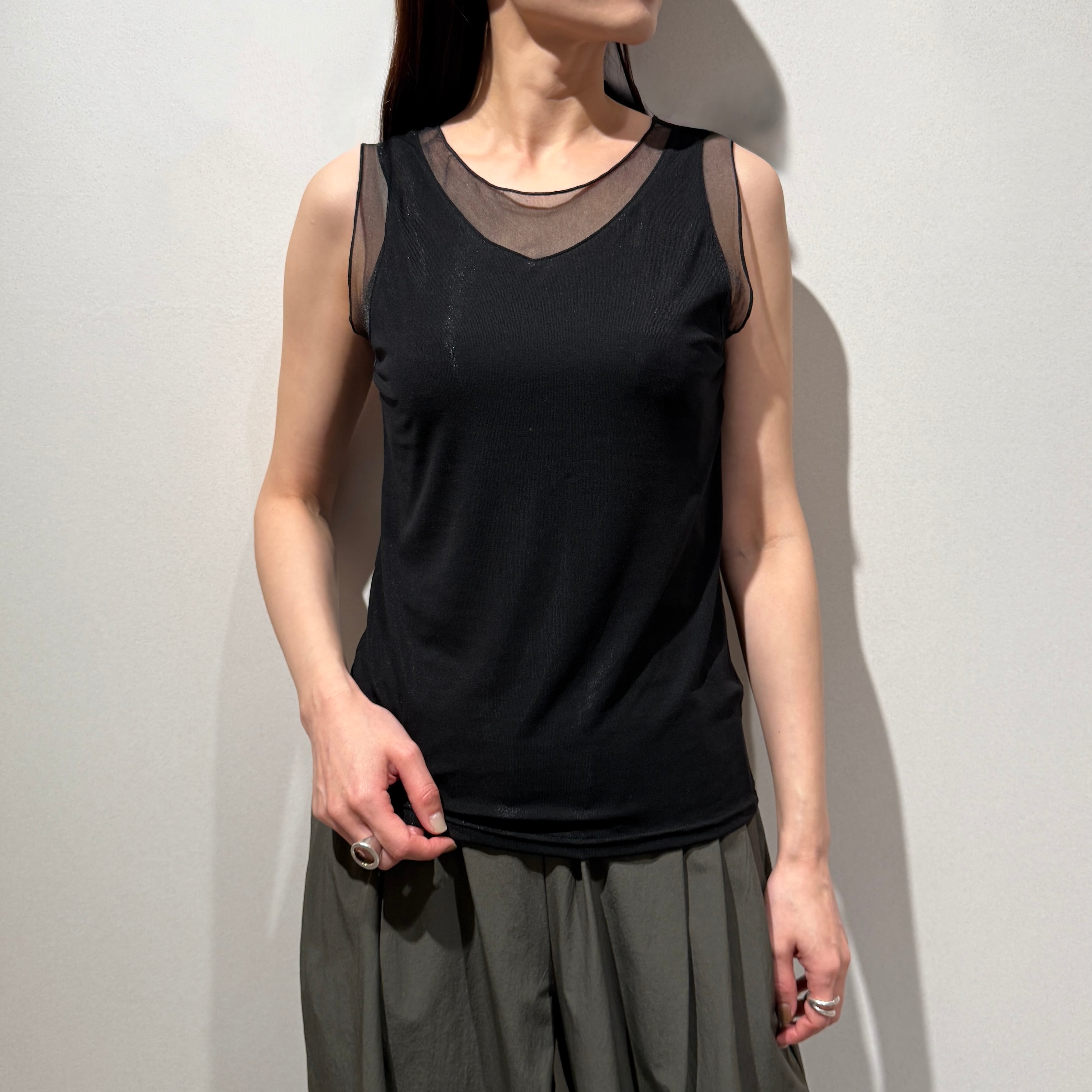 インナーアイテムとして重宝するリヨセルベアフライストップス。