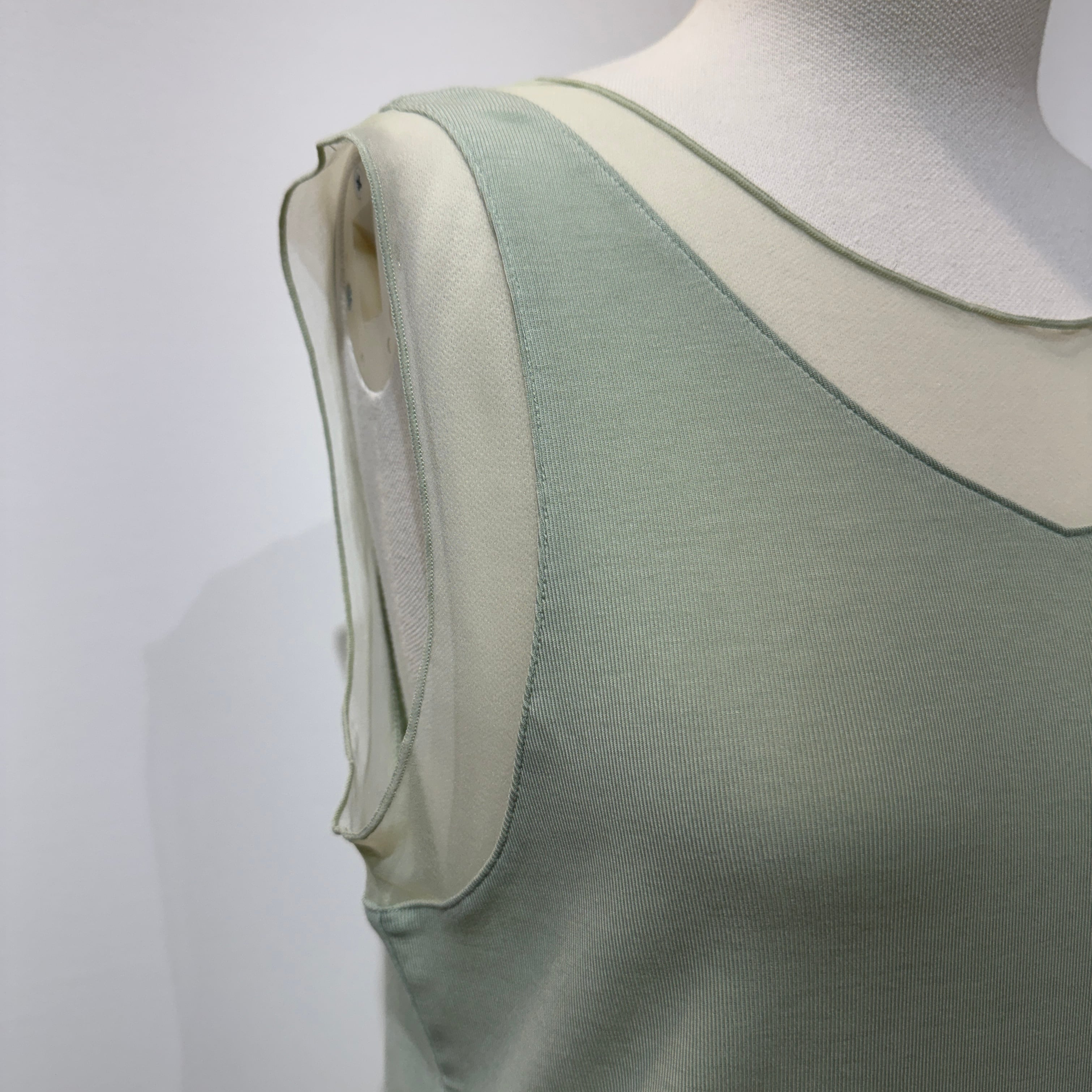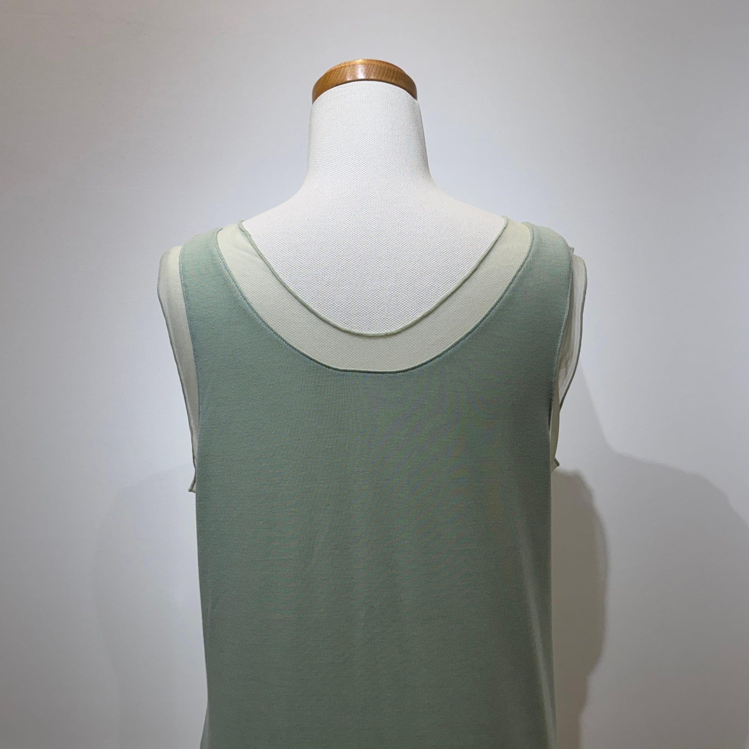 前後着用可能で、ラウンドネックor V字カットと気分に合わせて着用することが出来ます。