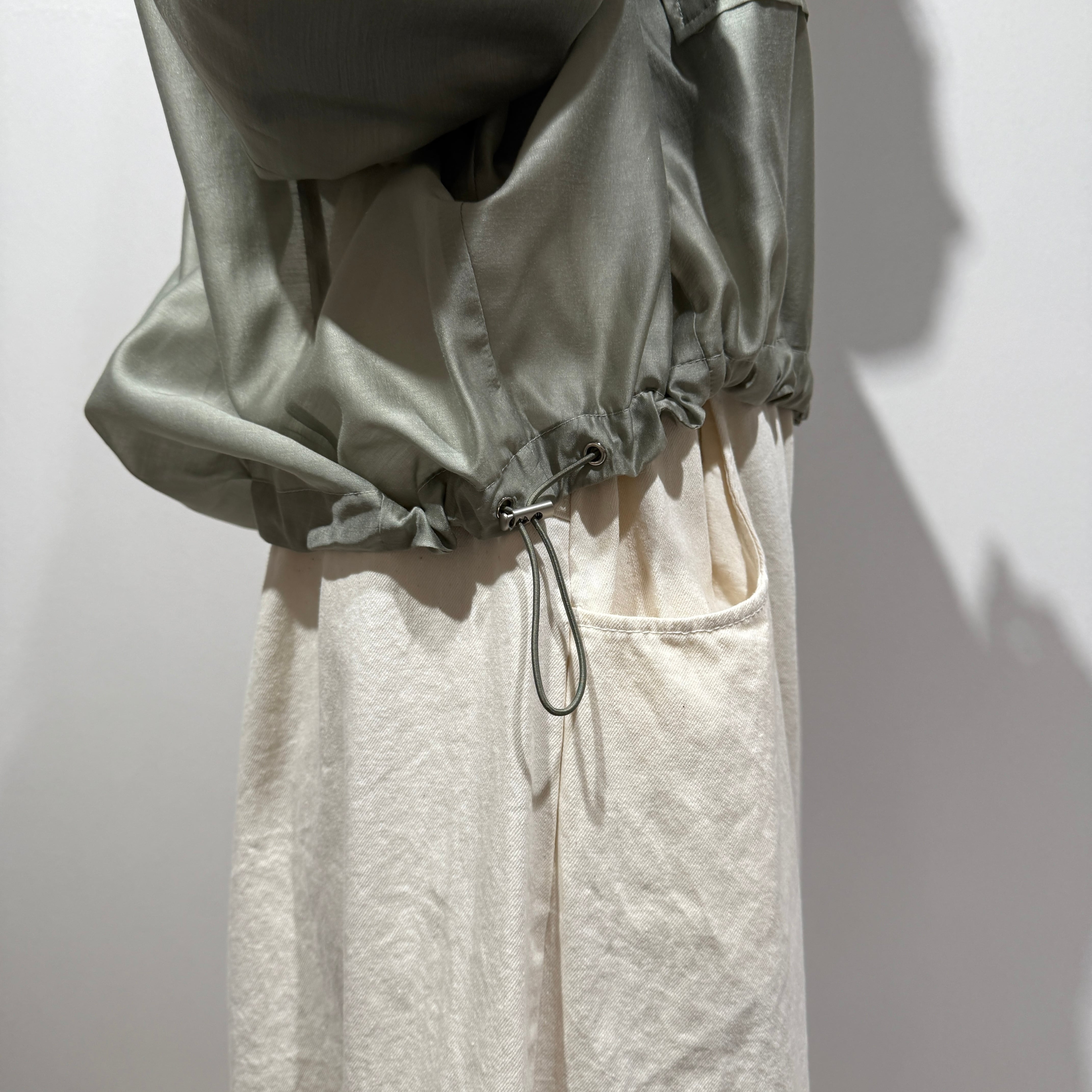 ゆったりとしたシルエットに大きめのポケットがアクセントになり、裾のドローコードでシルエットの変化も楽しめます。