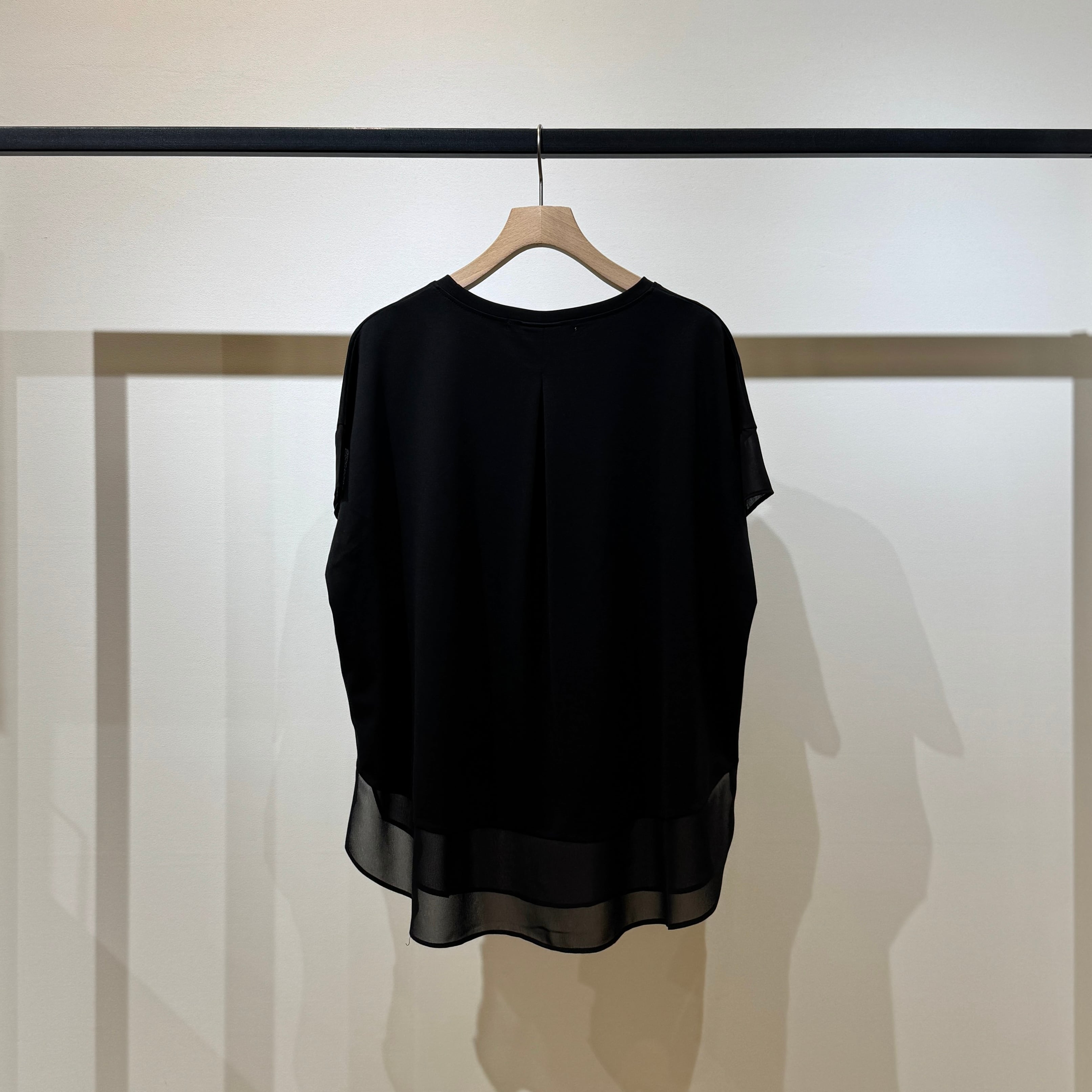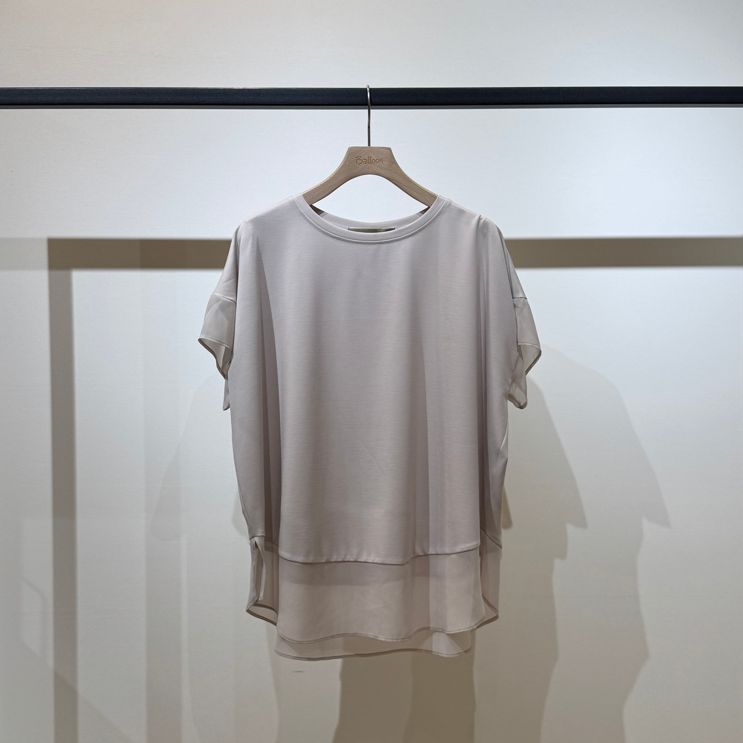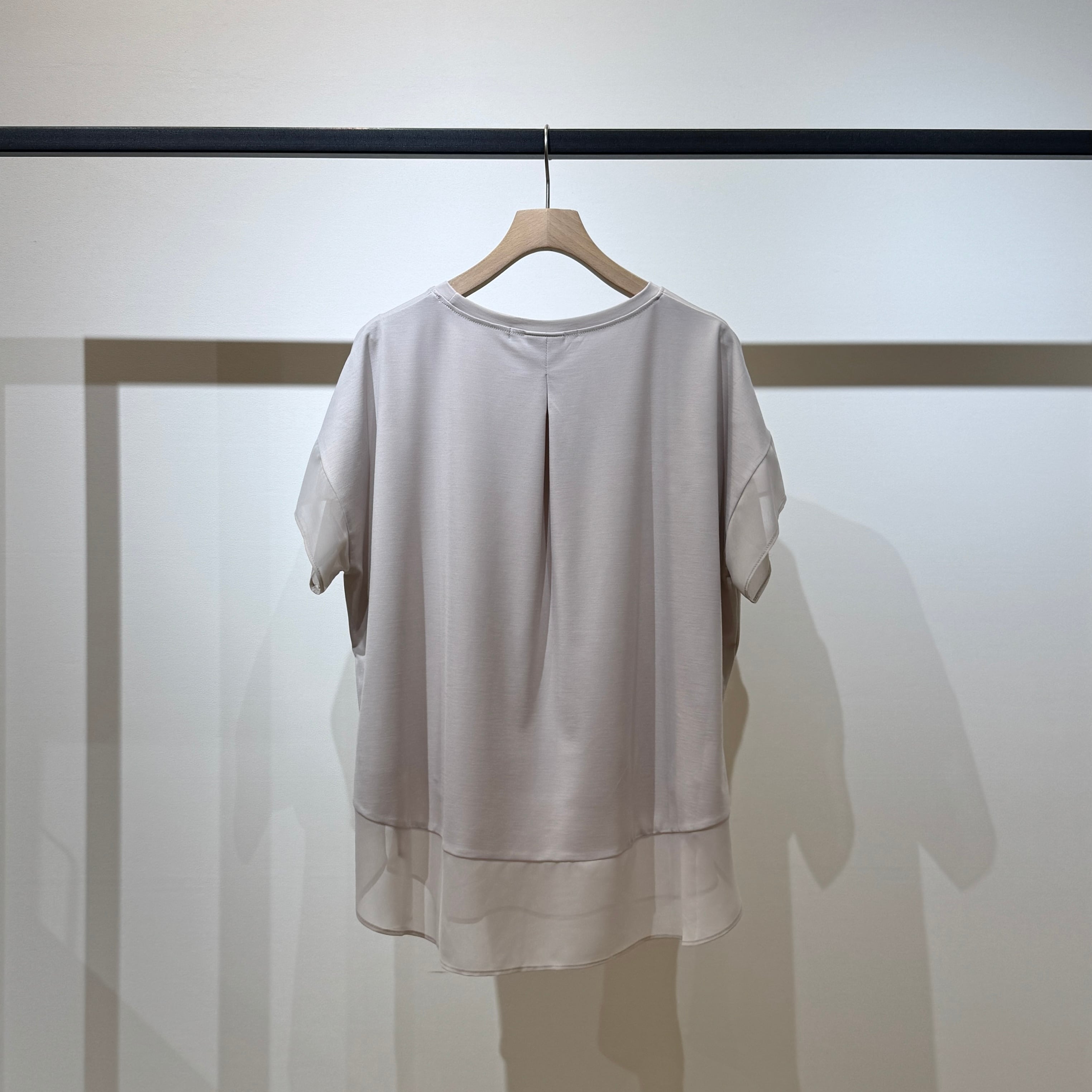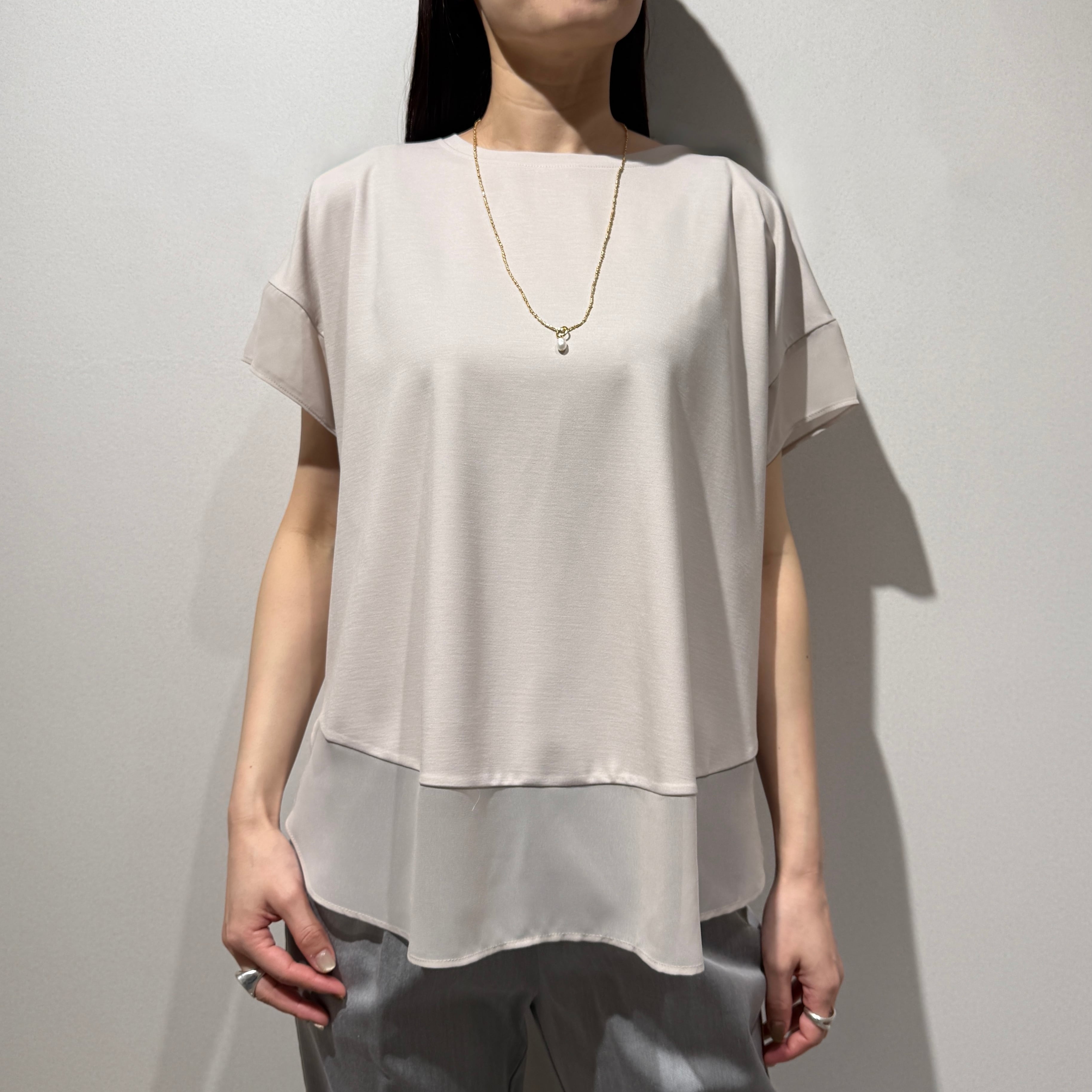 シアー感が上品な印象を演出するシフォンスウィッチングトップス。