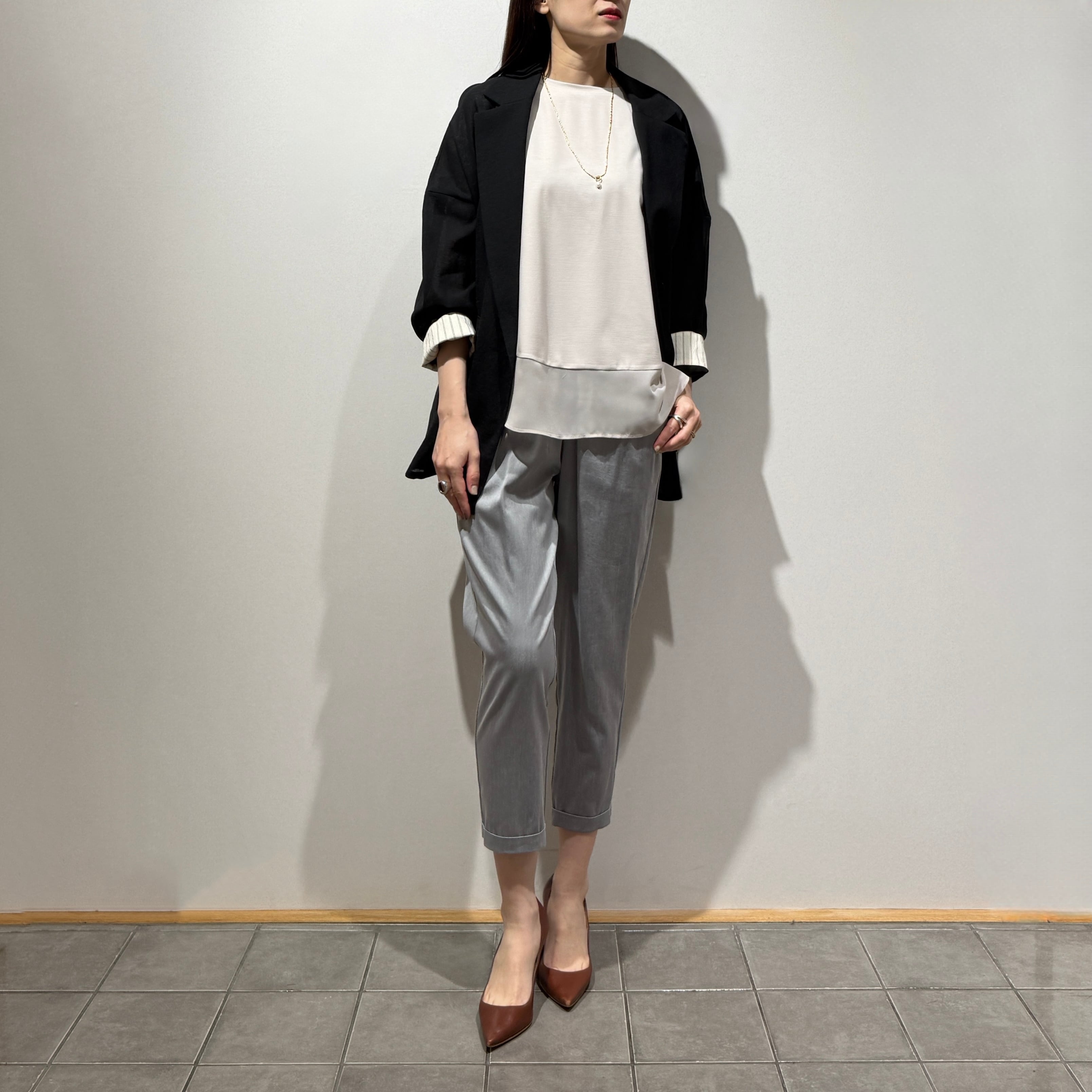 ワイドパンツやストレートパンツと合わせたリラックスコーデはもちろん、きれいめボトムと合わせたお仕事着としても最適です。