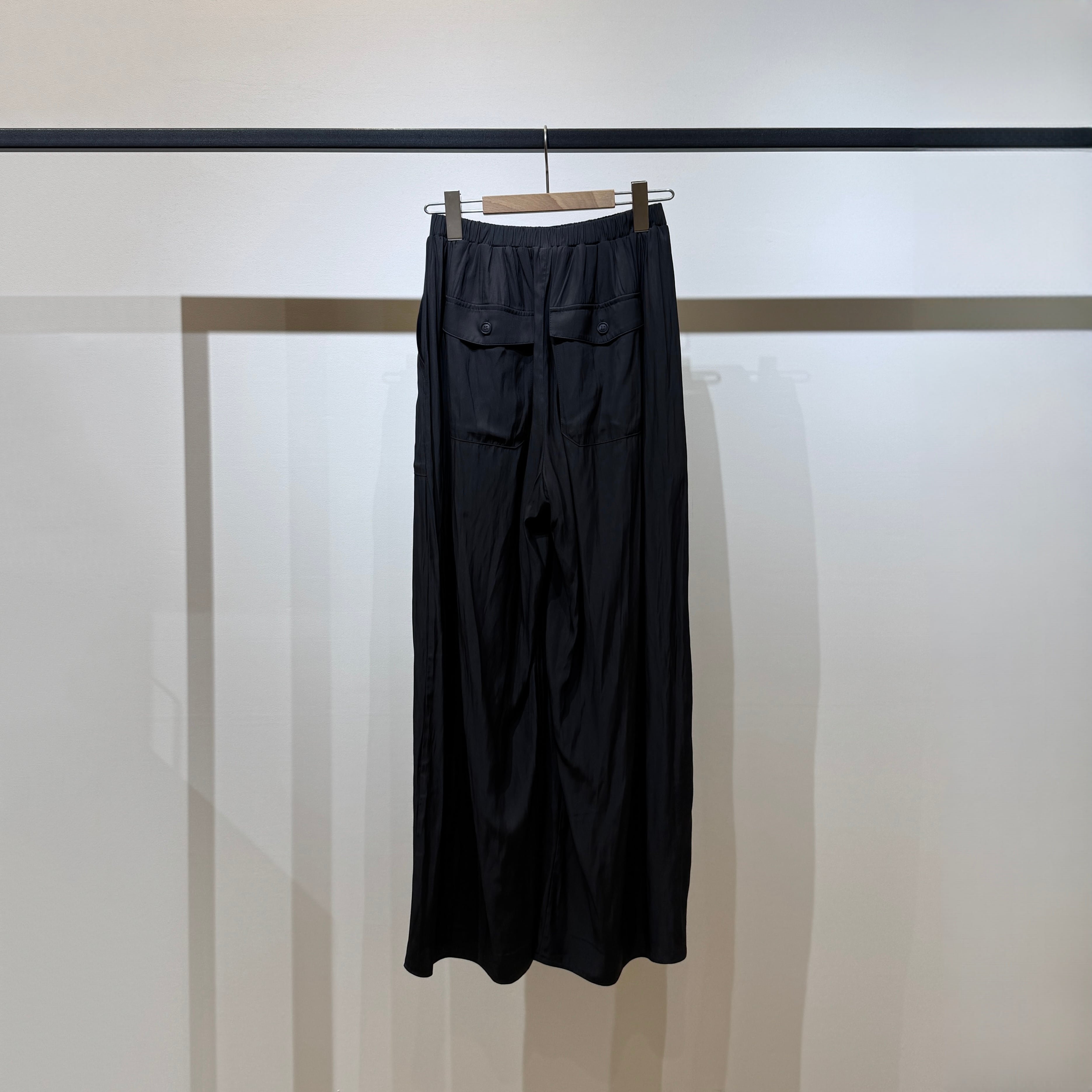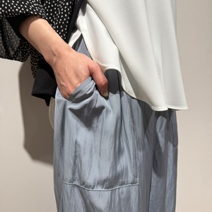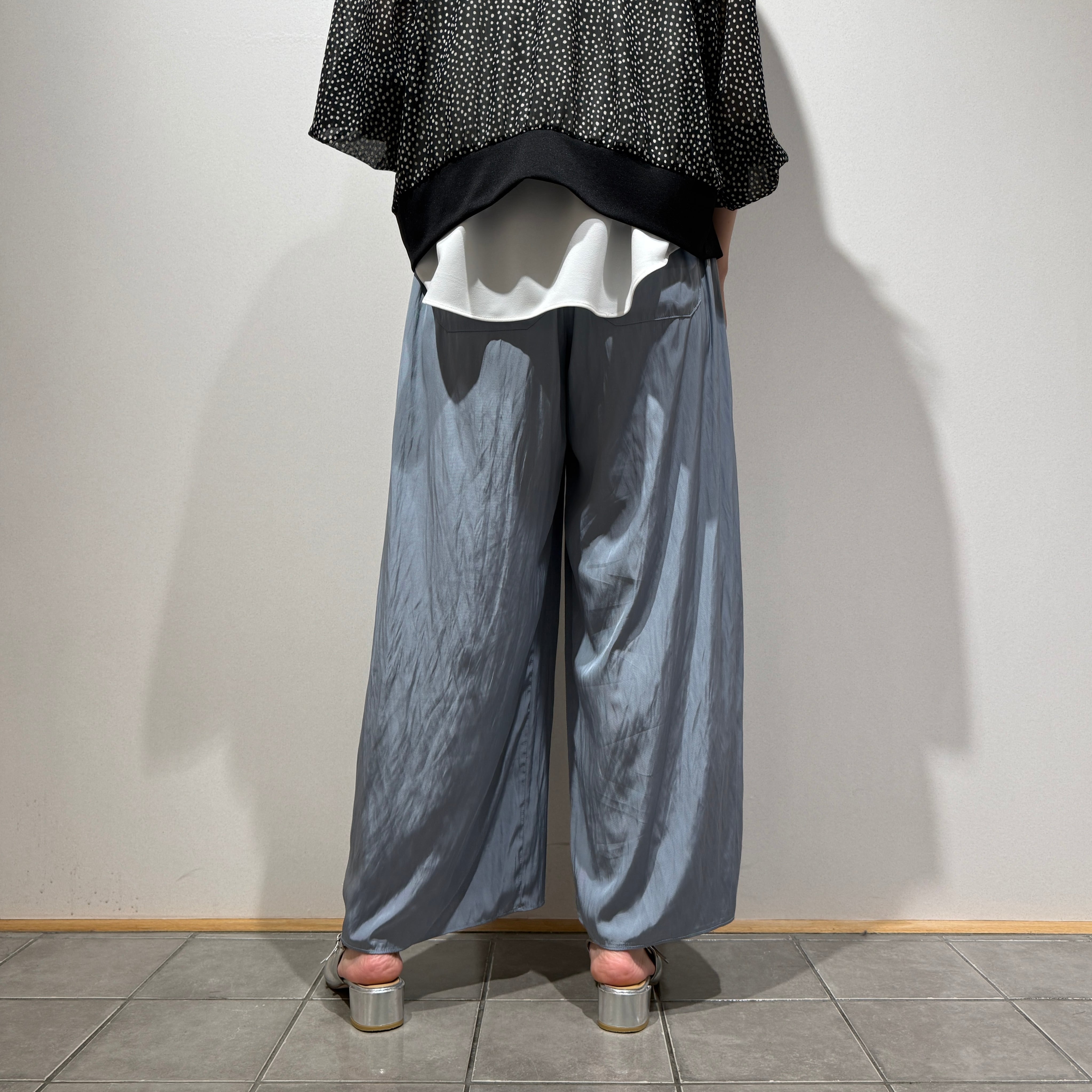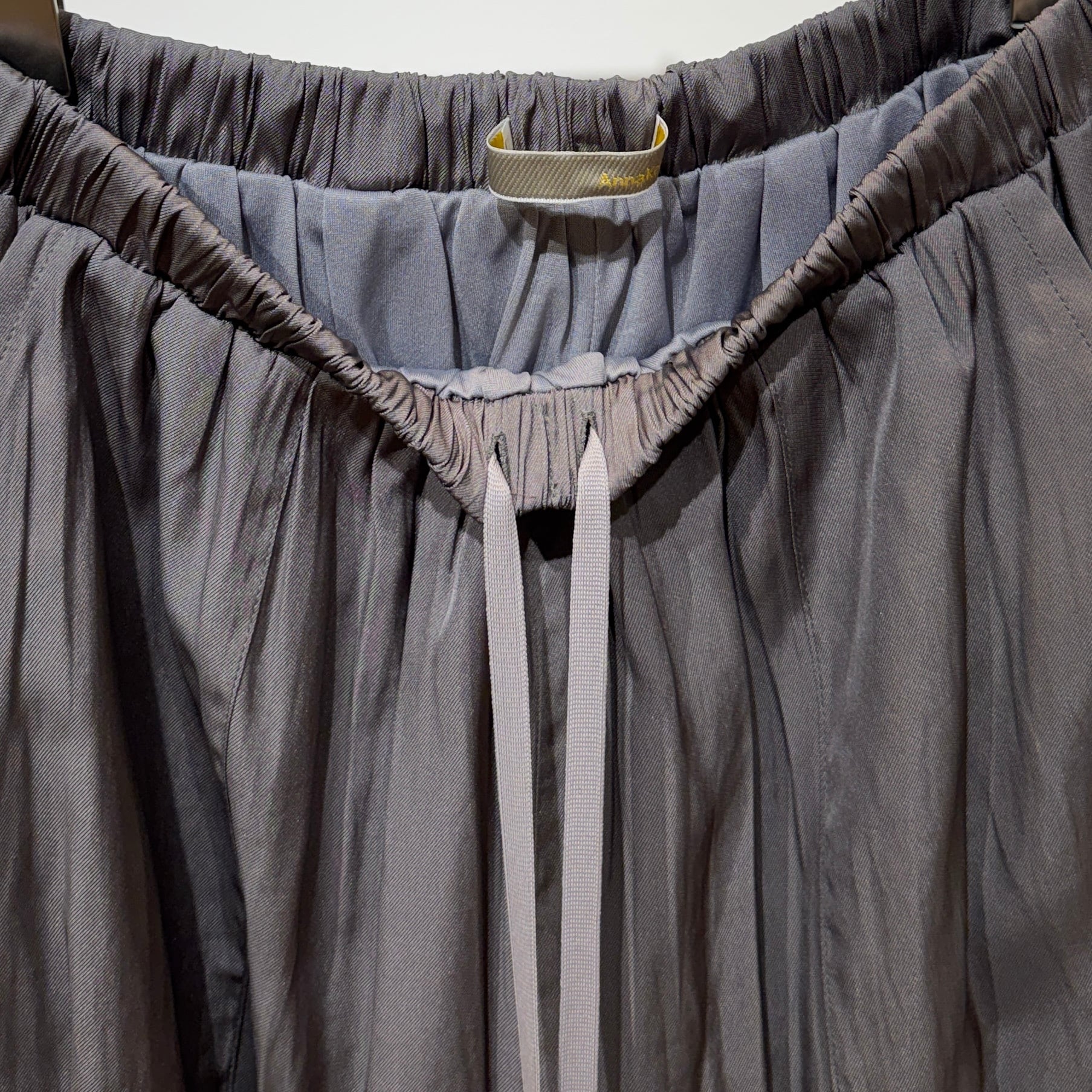 ウエストはオールゴム+内側の紐で調整可能、リラックス感のあるすっきりシルエットに仕上げています。