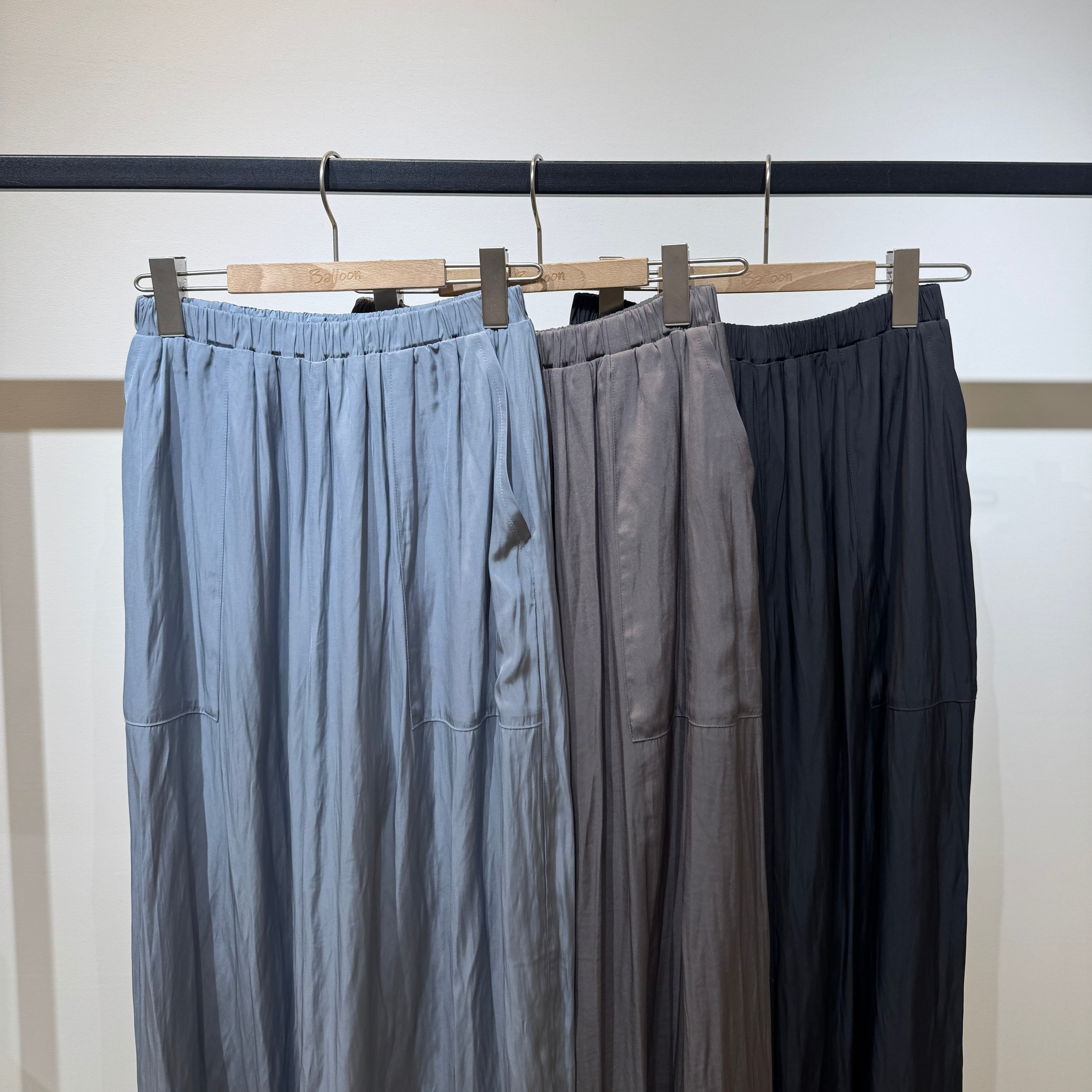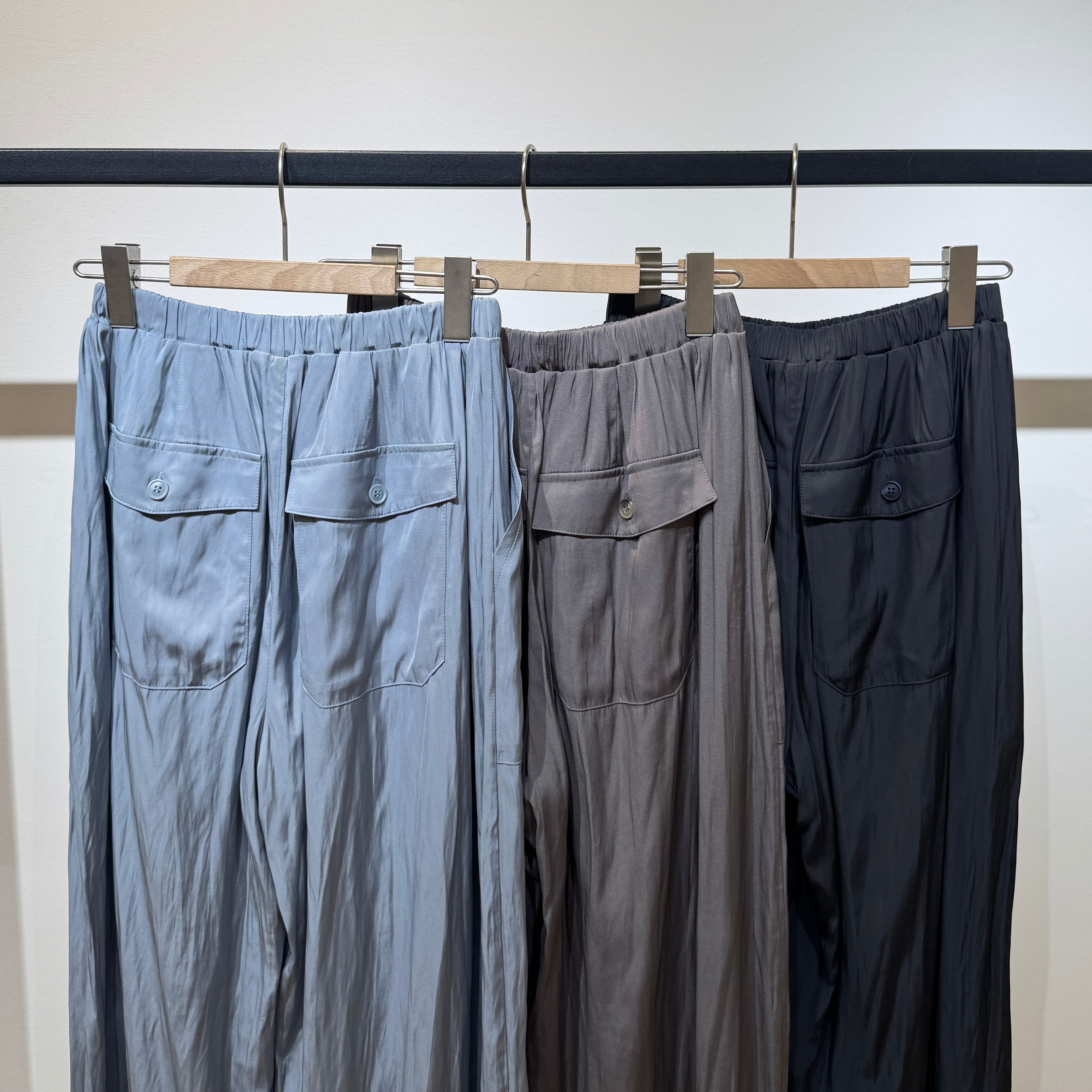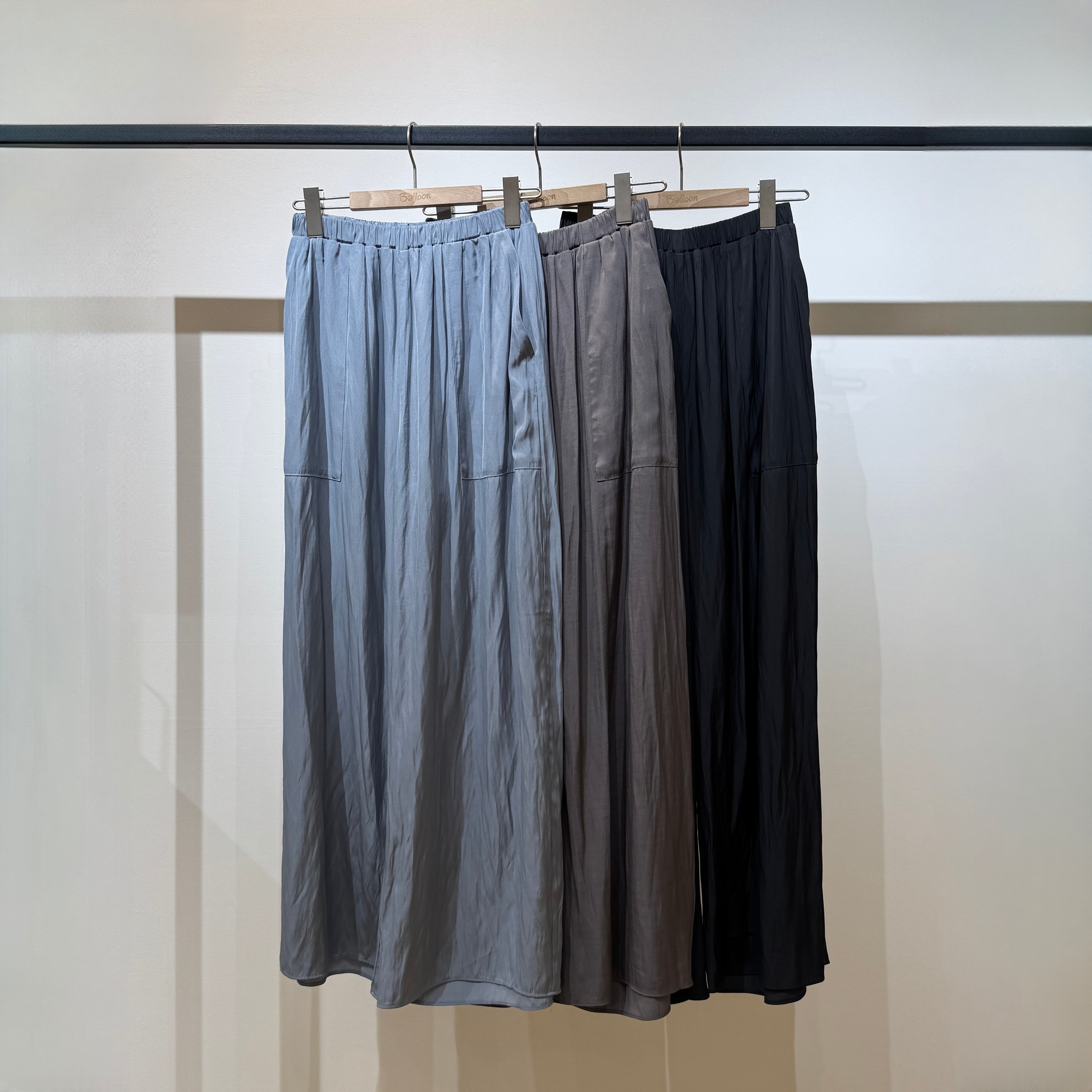 ウエストはオールゴム+内側の紐で調整可能、リラックス感のあるすっきりシルエットに仕上げています。