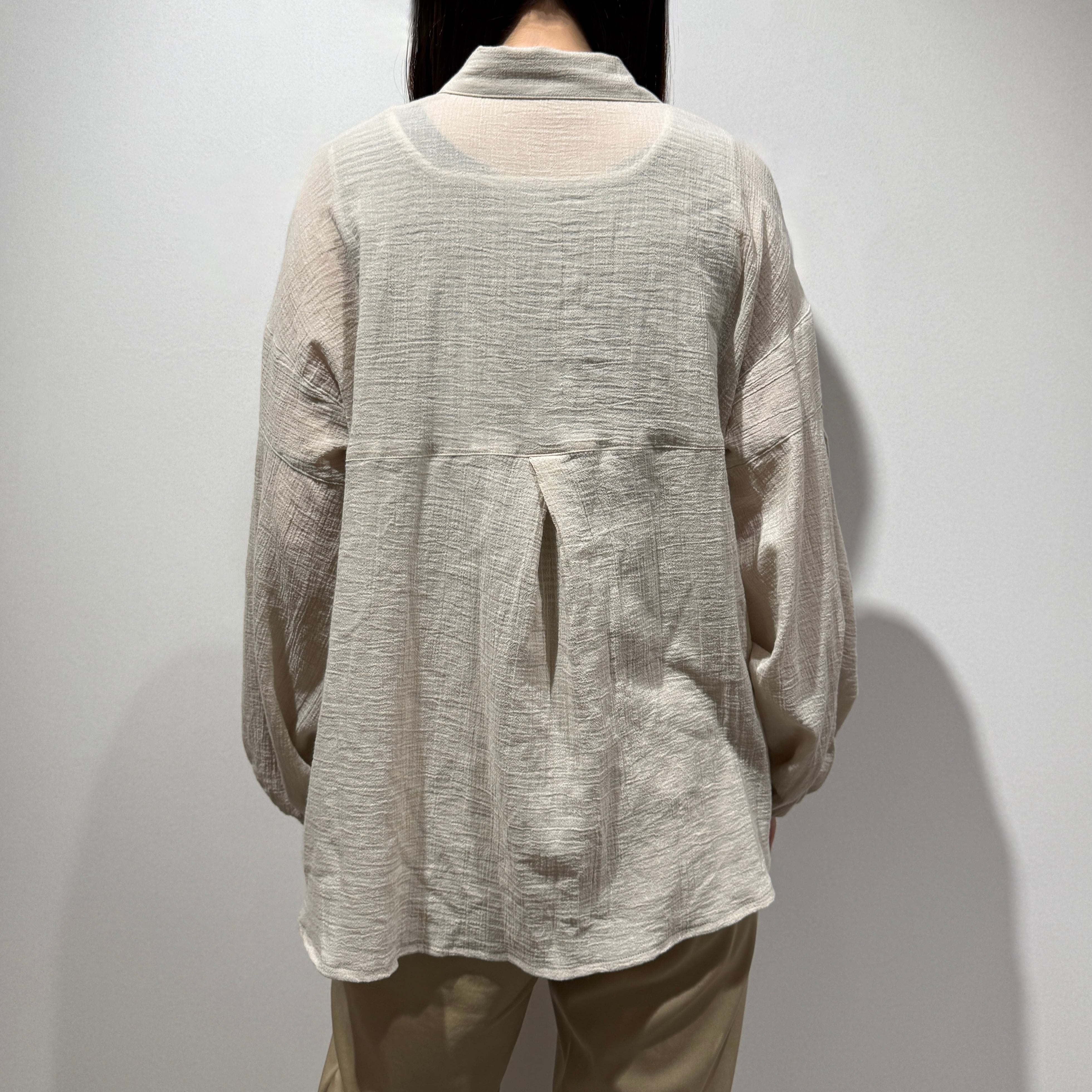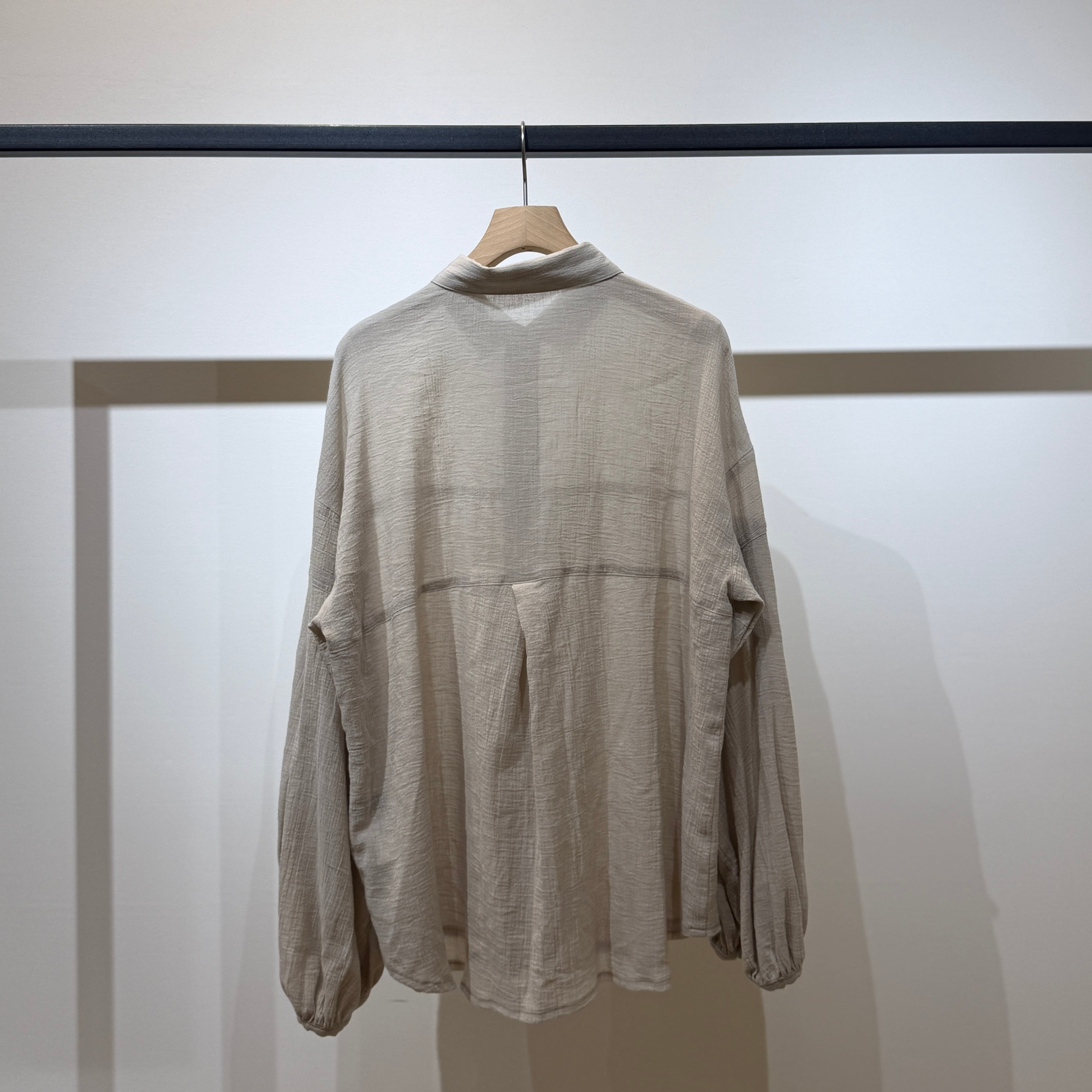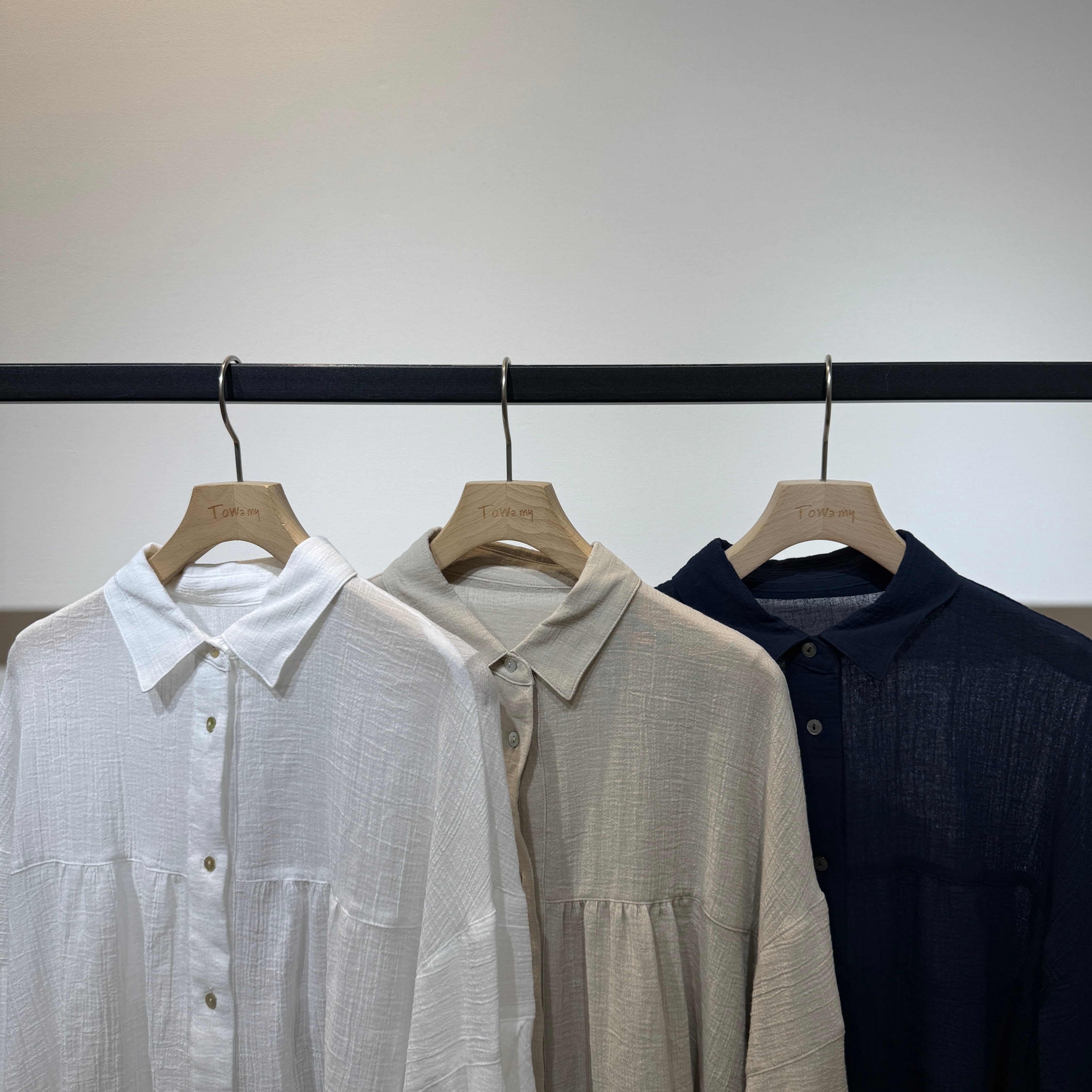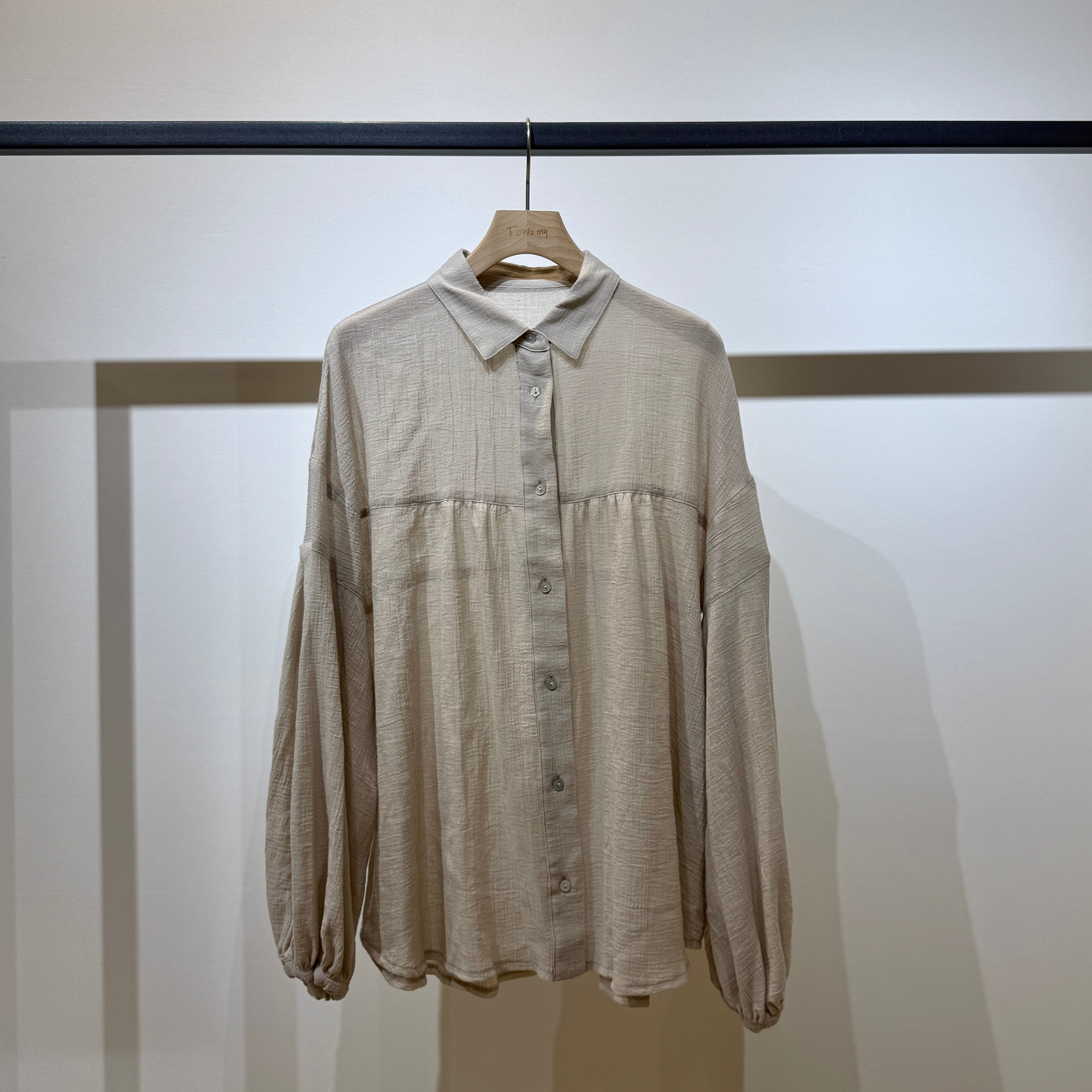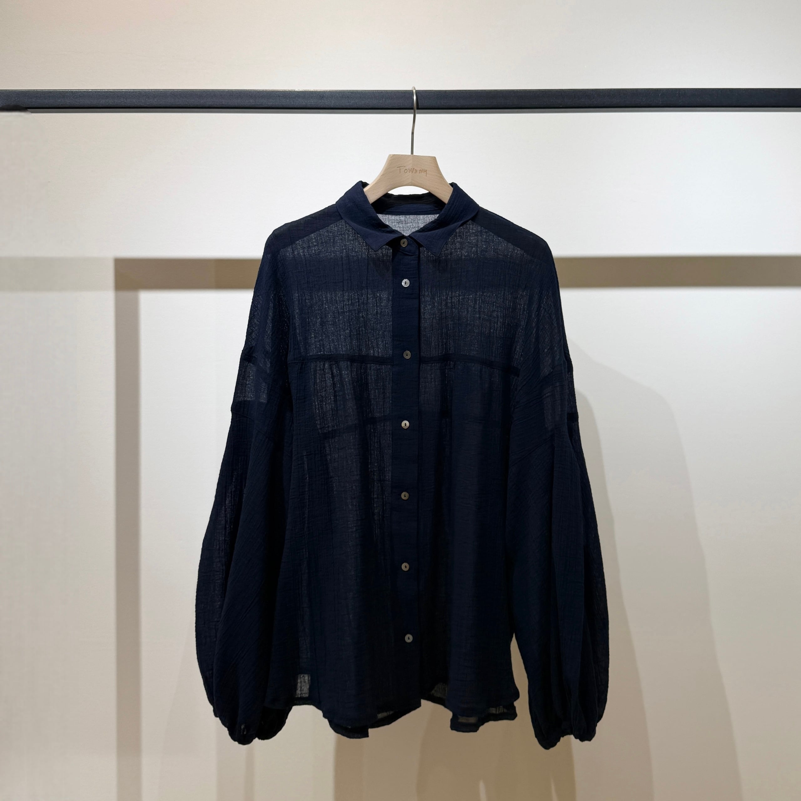 Towamy別注!程よい透け感のある軽やかで肌離れの良い風合いの、ヨーク切替デザインの衿付きシャツ。