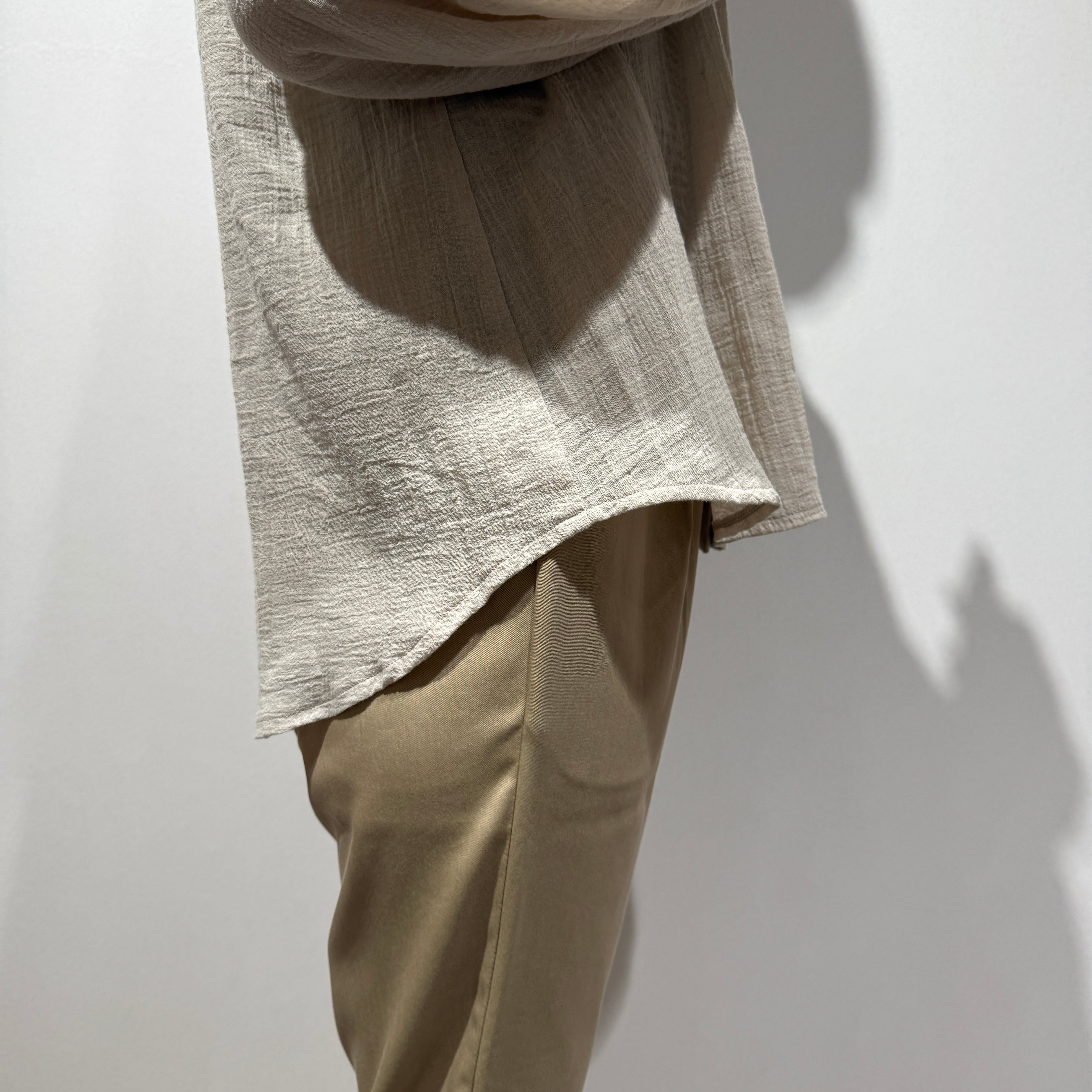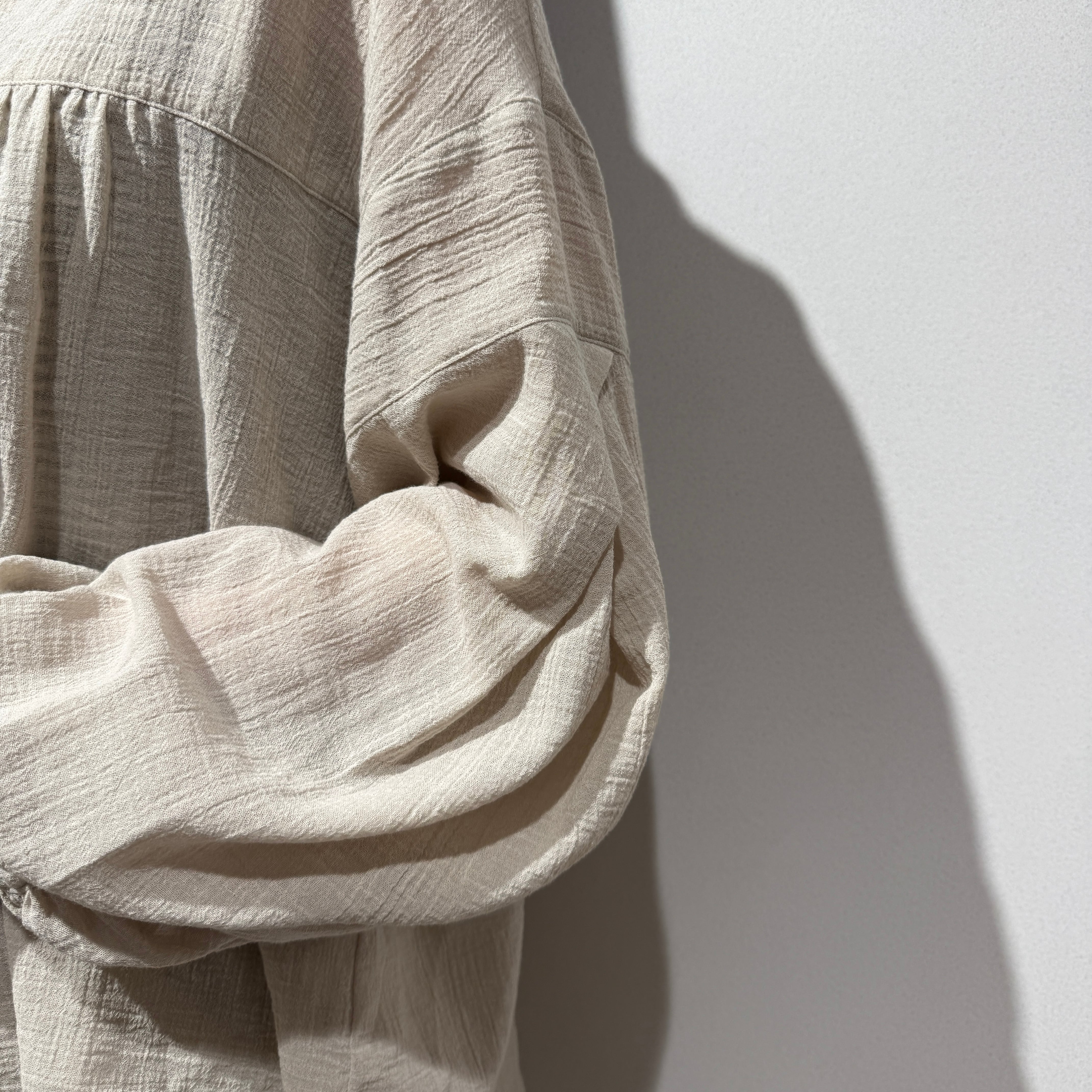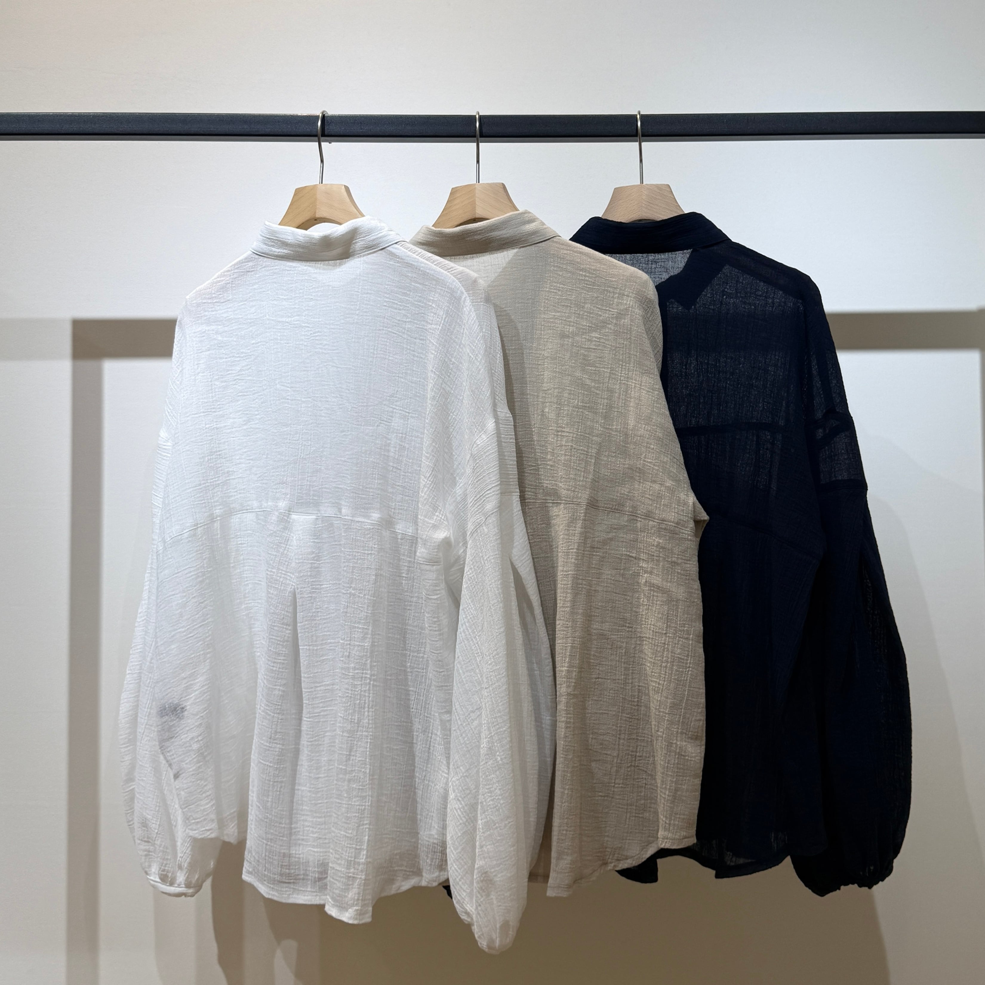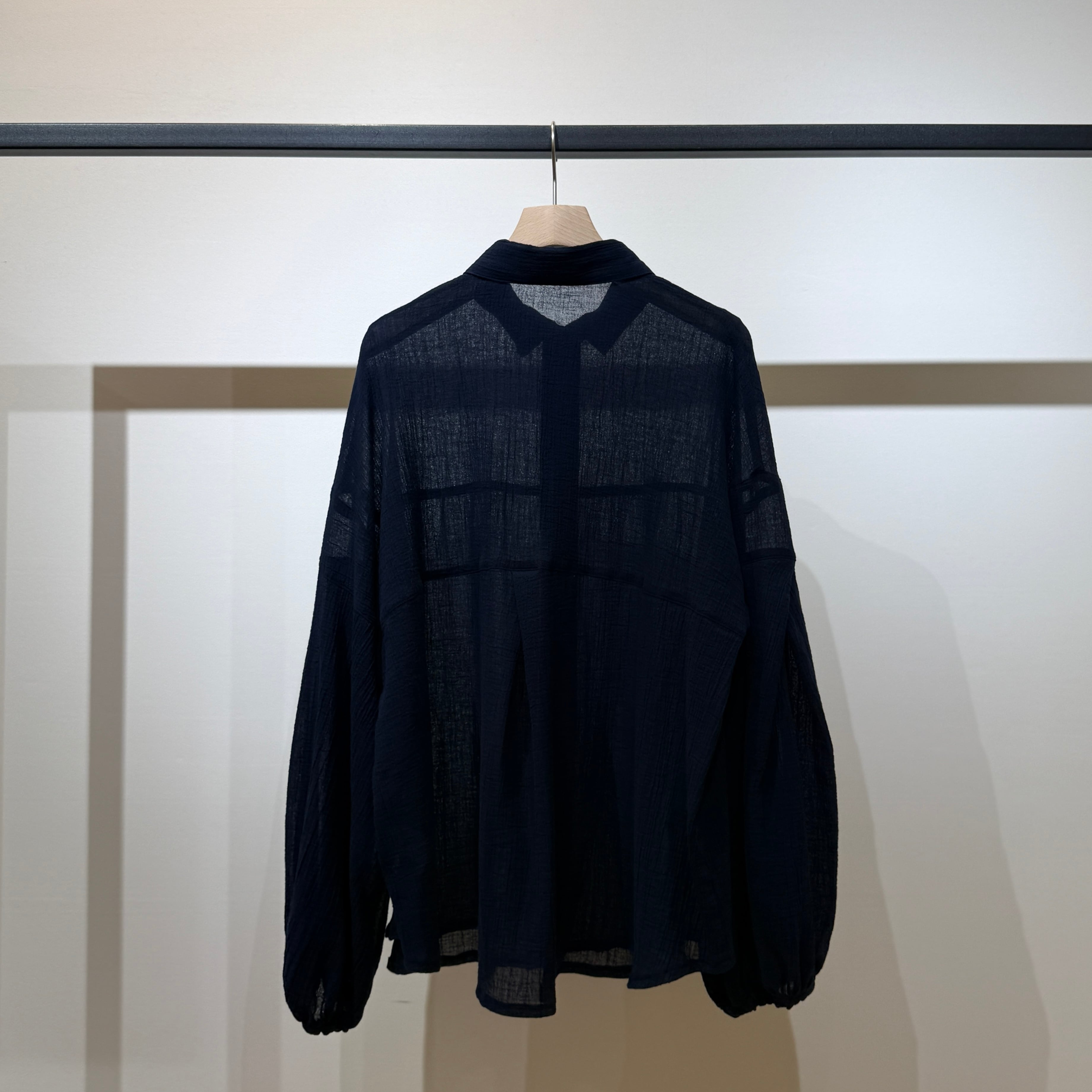 Towamy別注!程よい透け感のある軽やかで肌離れの良い風合いの、ヨーク切替デザインの衿付きシャツ。
