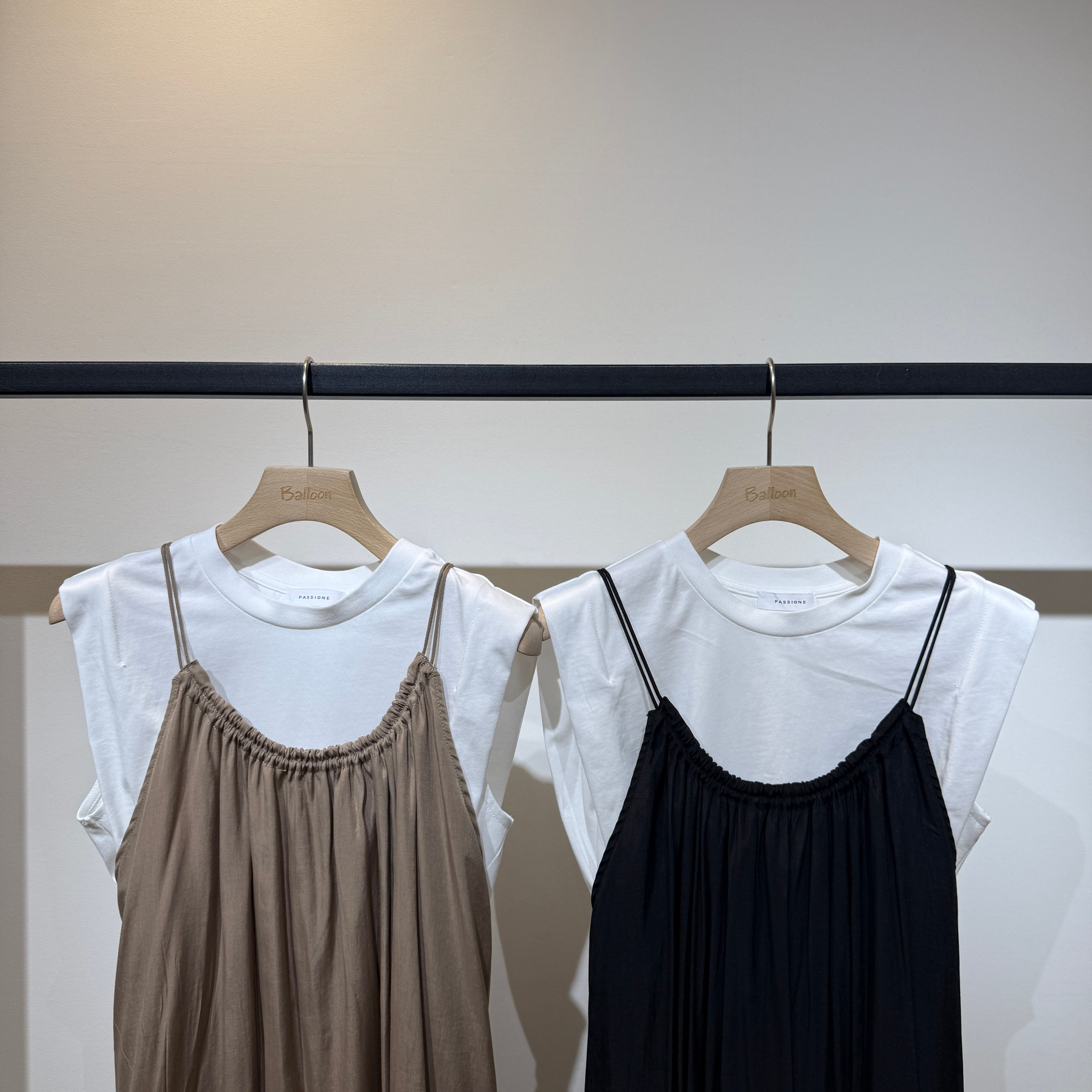 シンプルなカットソーとキャミソールのセット販売なので、インナー選びに迷うこともありません。