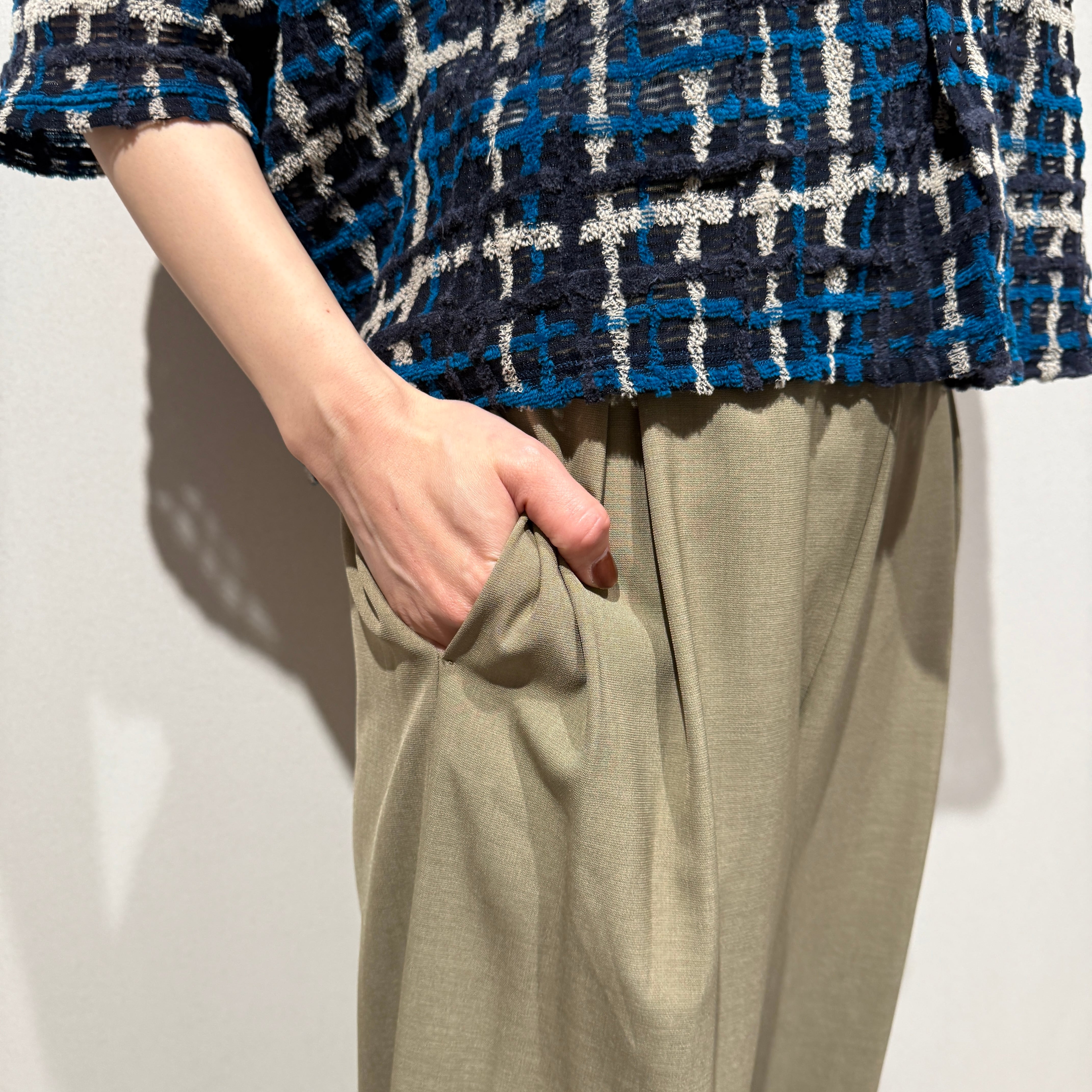 落ち感のあるさらっとした生地感が体のラインを自然にカバーしてくれるため細見え効果抜群です◎