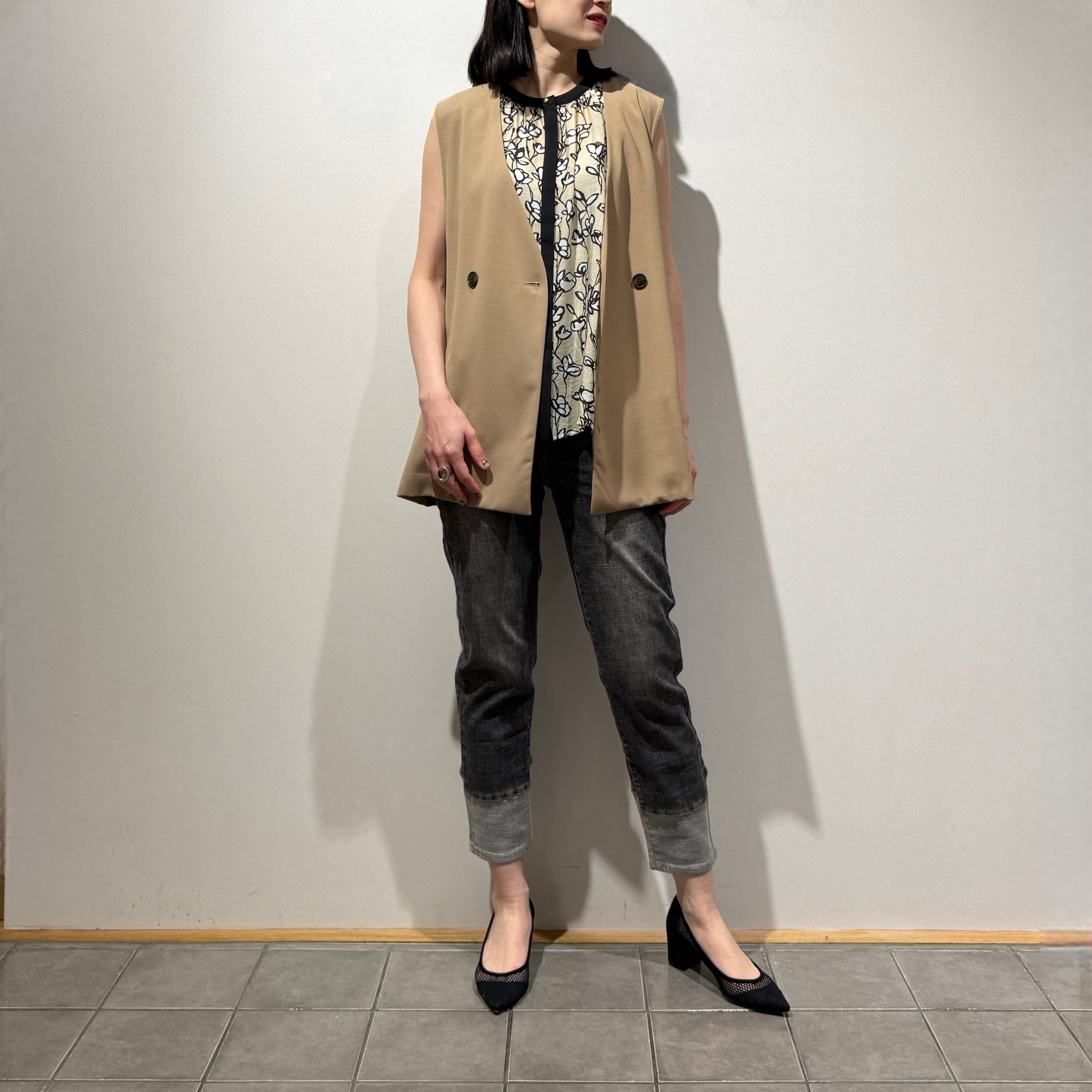 シーズンレスにさらりと羽織れるシンプルなジレ。