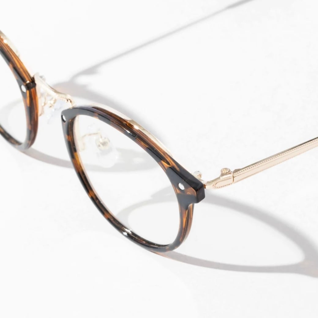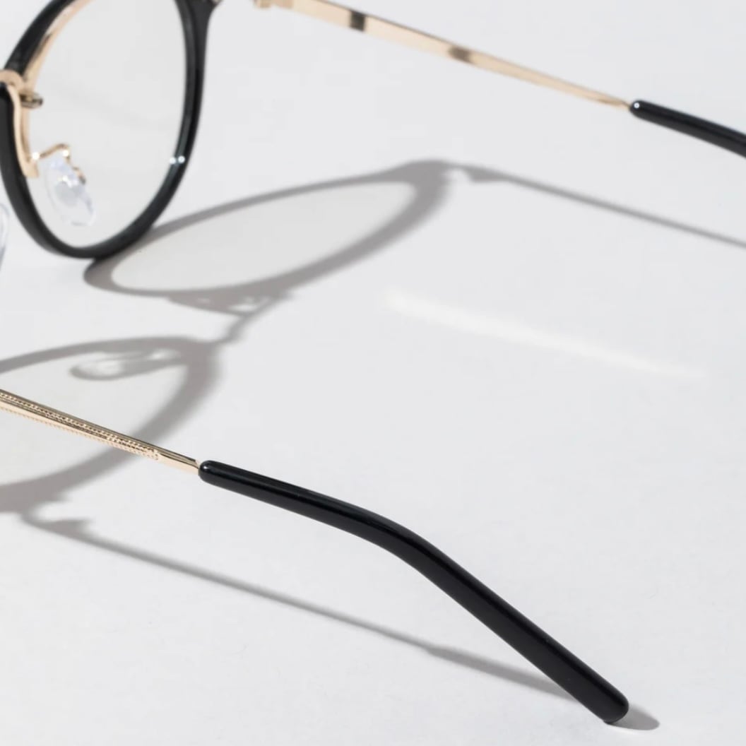 きらっと光るメタルとのコンビネーションで、ブリッジとテンプルに彫金模様が施されクラシカルな印象に。